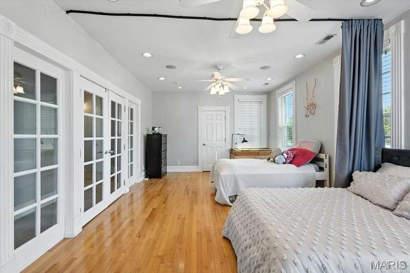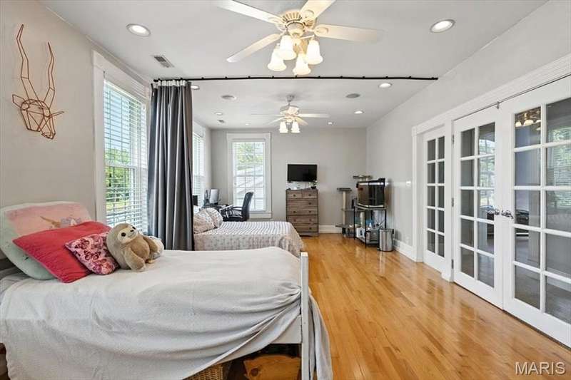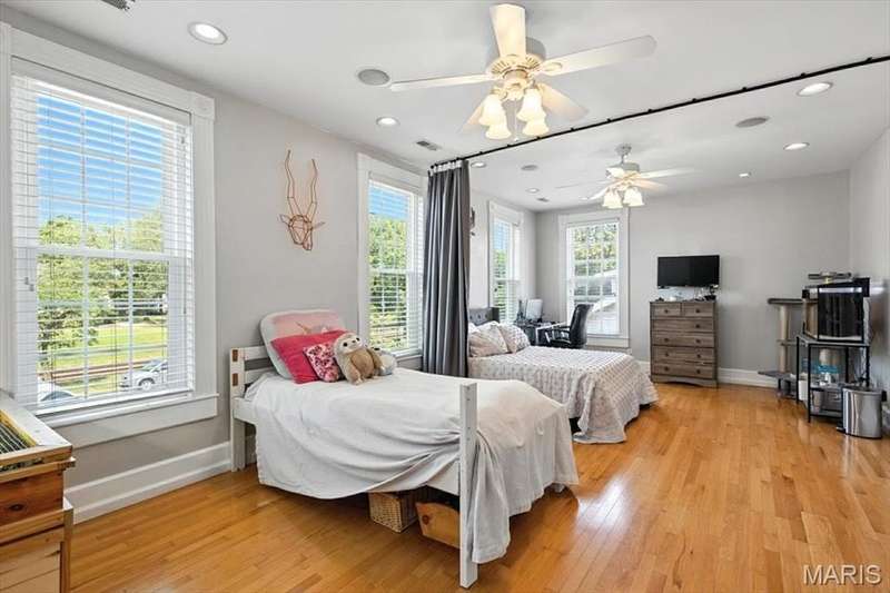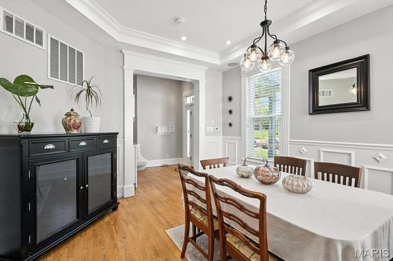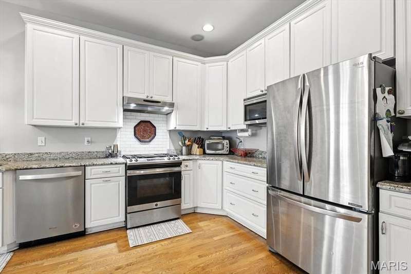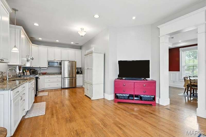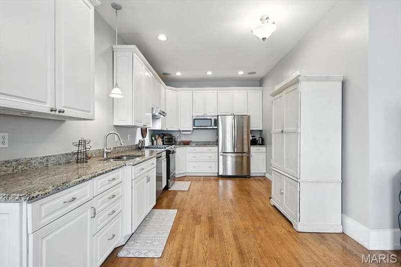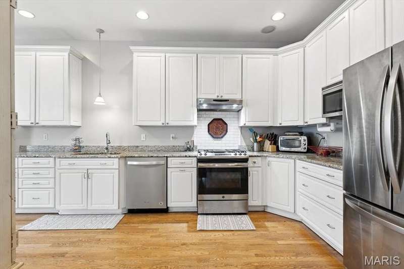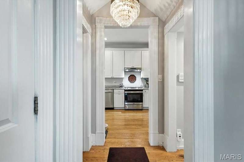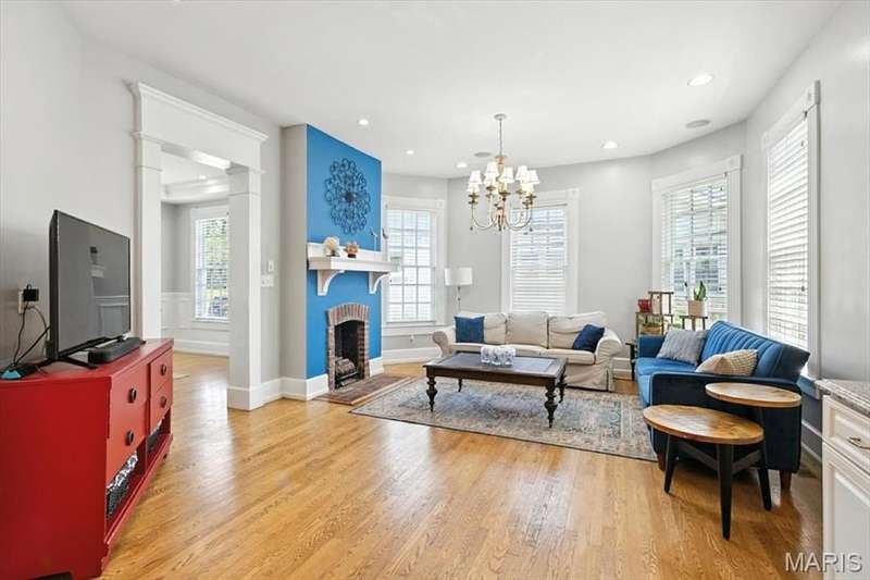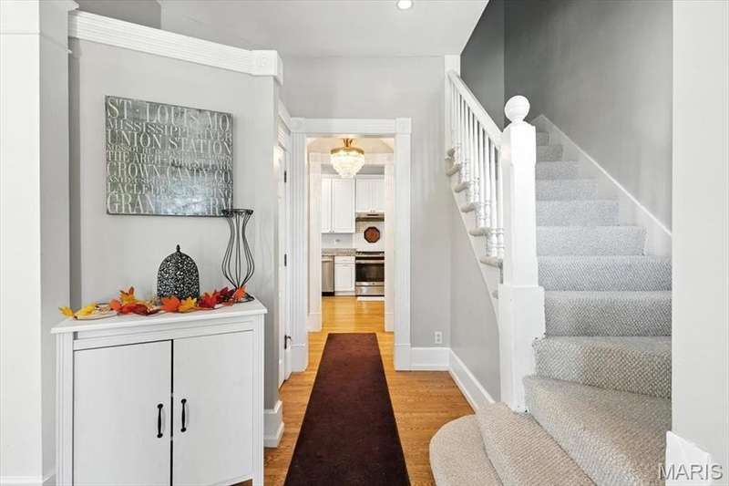 All aboard! Have front row seats to the past and the future with this Cape Cod charmer. This 1895 gem, wrapped in classic wood shake siding, sits across the street from the tracks in a no-horn zone — where neighbors love the quiet, rhythmic rumble of trains rolling past. This was a train town long before it became part of Route 66, and this home proudly carries that legacy forward. The original Maplewood train depot was just a block to the east, and the city's historic district is a block to the west. This property is the oldest on its block by five years and has witnessed tremendous change over the decades. The upcoming Great Rivers Greenway will be the next transformation, turning the front door into a gateway to an outdoor lifestyle. Imagine having a boundless connection to the metro area via trails — plus living mere blocks from Maplewood restaurants, parks, shops and activities! This home connects history, community and convenience all in one spot. Inside, timeless character meets modern comfort. The spacious, light-filled entry showcases period woodwork and fresh, neutral paint. Ten-foot ceilings and an abundance of windows fill the home with natural light, highlighting the hardwood floors found throughout most areas. Recessed lighting and ceiling speakers throughout elevate the living experience. The spacious kitchen features granite counters, stainless appliances and a large gas range, opening seamlessly to the family room and dining area. Gas fireplaces in the family and dining rooms offer glimpses into the home's 130-year history. Up the freshly carpeted staircase are two bedrooms and full bath; the larger room could easily be divided to create a fourth bedroom. From the landing, retreat up the winding wood stairs to the private primary suite on the third floor, where sunlight dances across the hardwood floors and the cross gable roof creates cozy, inviting spaces. Back on the main floor, exit out the side door to one of the larger lots in the city — fully fenced for privacy and perfect for pets or play. Enjoy the huge shade tree, large concrete patio, wood play set and storage shed, with plenty of grassy space left to garden or relax. The clean, bright lower level includes a laundry area, full bath, storage galore and walk-up access to the back yard. The zoned HVAC keeps every floor comfortable year round. With its large lot, open layout, and unbeatable blend of history and lifestyle, this Maplewood treasure isn’t just a house — it’s a home with personality, community, and a front row seat to the best of the past and the future. Updates: Downspouts, carpet and paint 2025; water heater 2024; roof 2019. Municipal inspection has been passed.