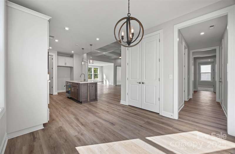 Welcome to the Hickory floorplan, a beautifully designed home offering 3 bedrooms, 2 1/2 baths, a dedicated study, and a spacious 2-car garage with a 4ft extension. The inviting great room features coffered ceilings, a cozy gas fireplace, and is seamlessly connecting to the sunroom, where natural light pours in with wooded backyard views. The gourmet kitchen includes 42-inch cabinets, under-cabinet lighting, wall ovens, a second pantry, and decorative island doors. 55+ Community, HOA fees include landscaping.