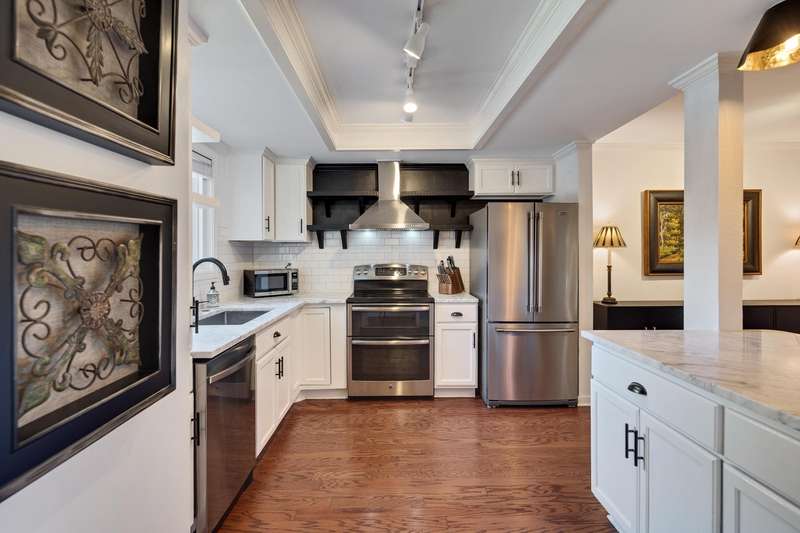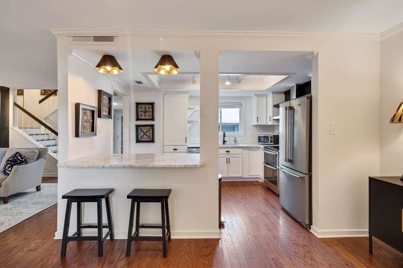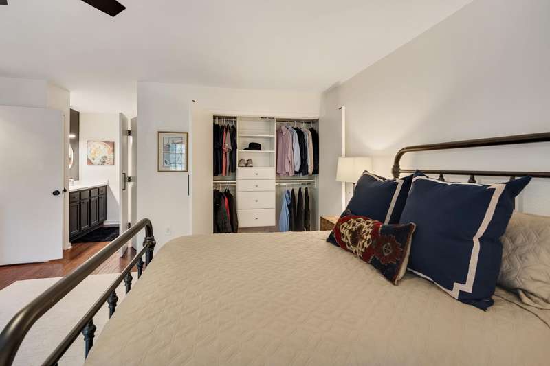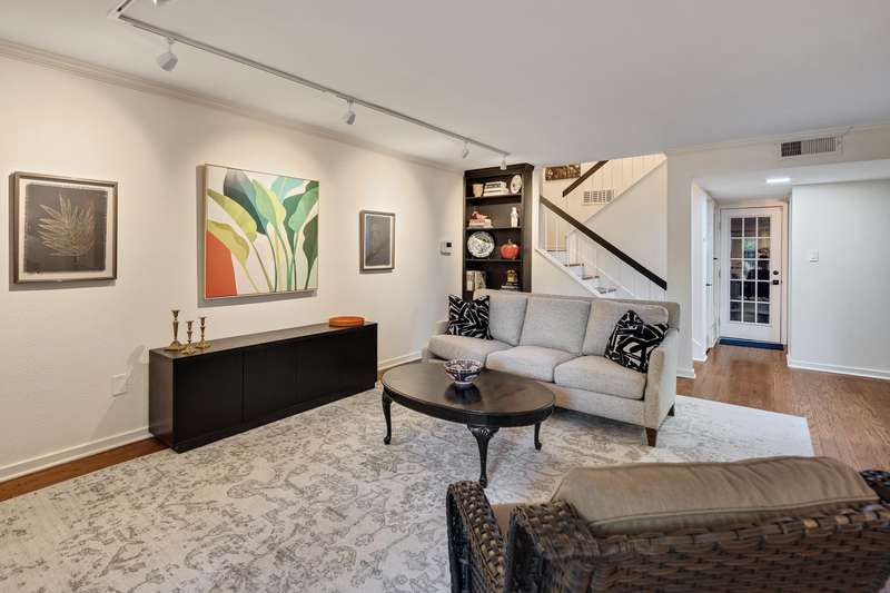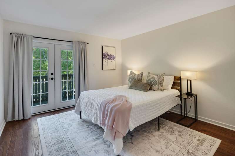 Don't miss this one; and prepare to be impressed! The previous two owners and the current owners have all made substantial updates and improvements so it is better than new. Crisp, clean, bright and light! An end unit with attached garage and extra parking space, so it feels like a single-family home! Spacious ground floor opens to brick paved patio, perfect for morning coffee and afternoon beverages. Recent improvements include smoothing the ceilings and installing new wood floors and new lighting. Plus, new kitchen cabinets, dishwasher, and countertops. All new, French doors both downstairs and upstairs; and all windows have been replaced. In all bedrooms, new closet doors, shelving, drawers, and rods. The bathrooms have also been stylishly renovated. And it has a new garage door and a squeaky clean 'eat off the floor' garage. Absolutely nothing needs to be done here! And, this one is ready for the most discerning buyer! Quick possession is possible.