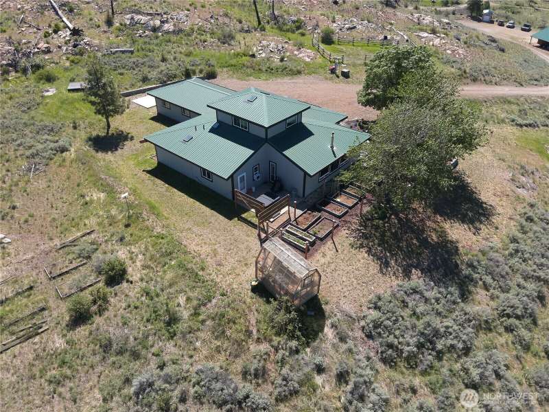 Ranch living at its finest— work remotely in this custom-built 3-bed, 1.75-bath on 20 acres offers wide-open panoramic views and energy-efficient SIP construction. Vaulted ceilings, multiple skylights, and an open floor plan fill the house with natural light, while radiant heated tile floors add comfort throughout. Features include a formal dining room, a hidden stairway to the “Eagle’s Nest” office, and a fully furnished interior! Outside, enjoy a 2-car garage, a shop/stable with power and water, multiple outbuildings, a greenhouse, and fully fenced, livestock-ready grounds with an electrified garden. Drilled well, two buried 1,500-gal holding tanks, Starlink internet, hot tub, InstaHot, extra fridge, house safe—too many extras to list.