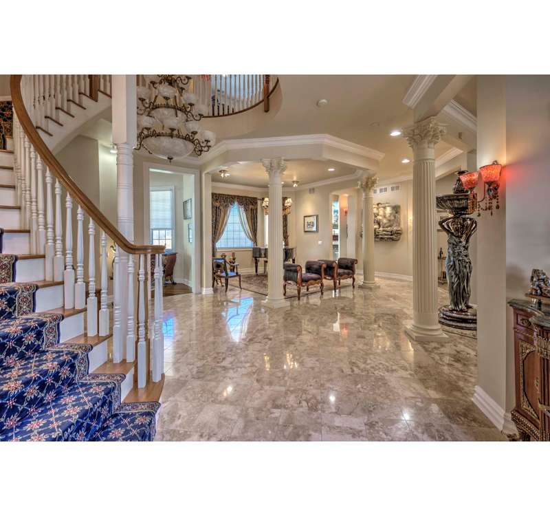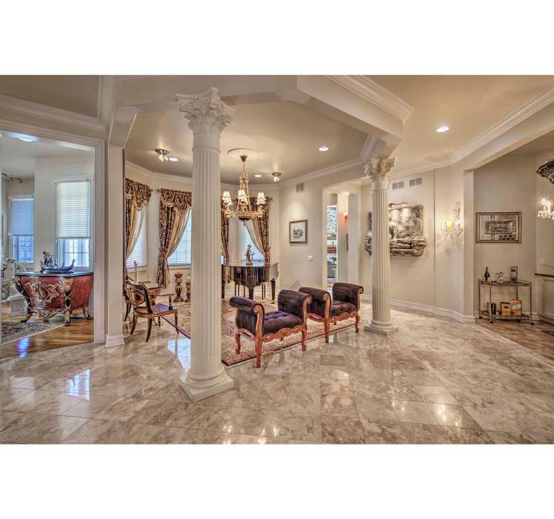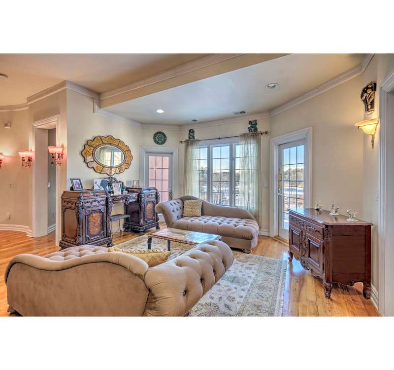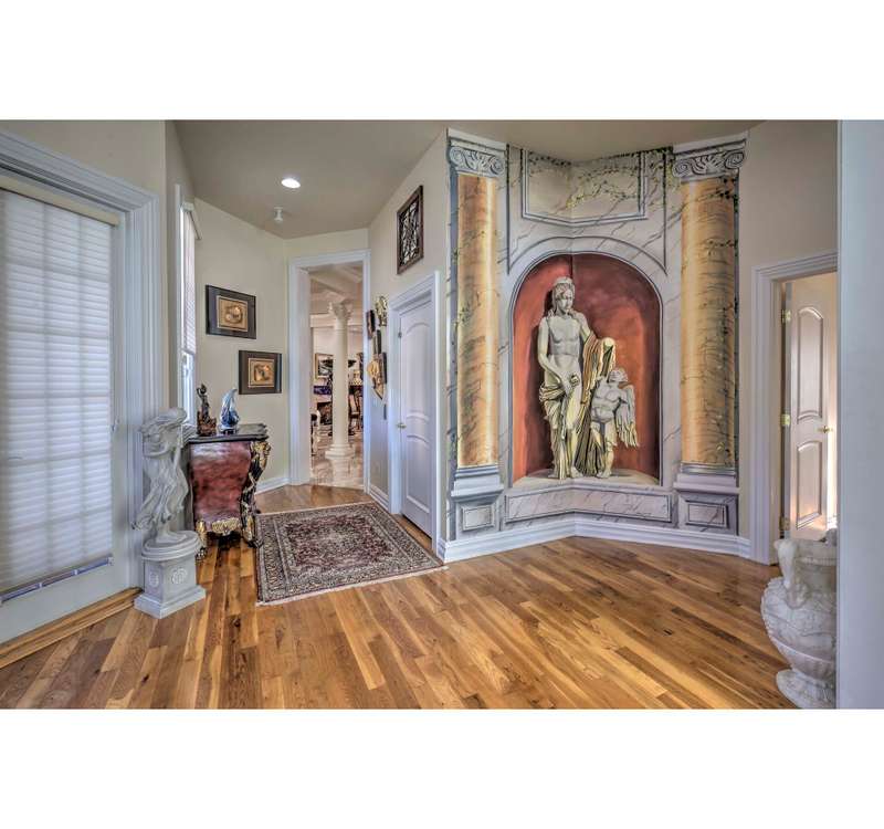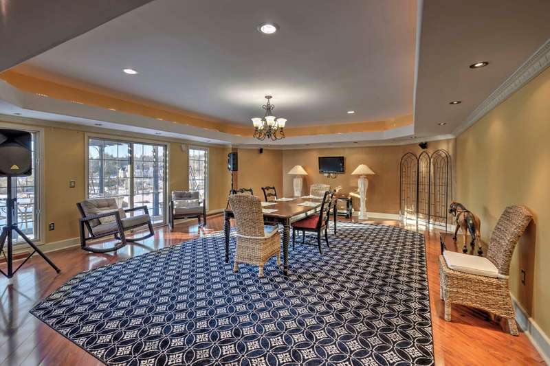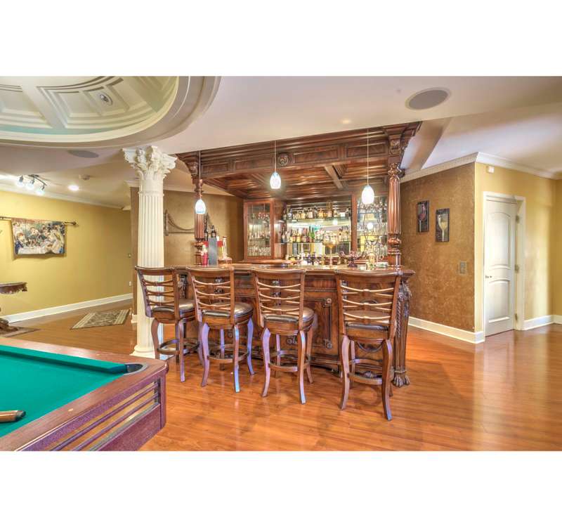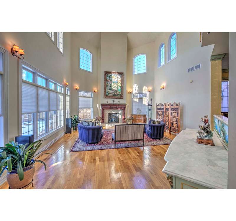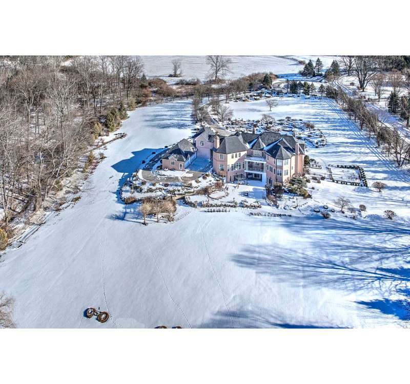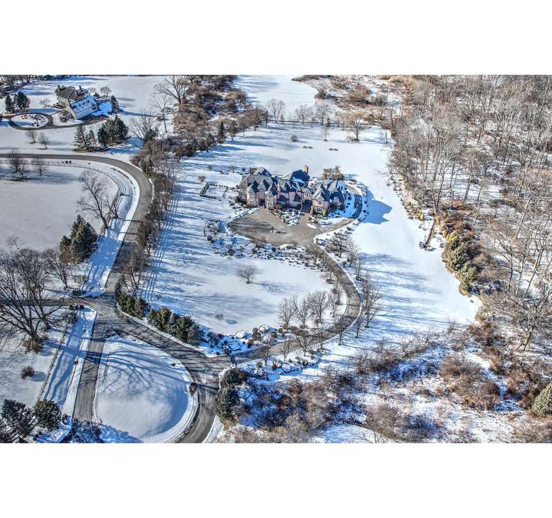 A grandly-designed architectural masterpiece offered by the original owners is surrounded by nearly 17 acres of natural beauty in Mendham Borough. This magical estate home offers a sophisticated 23-room floor plan filled with custom design elements such as artisanal millwork, hand painted murals, four gas fireplaces edged by distinctive mantles, flooring of honed marble and hardwood, stately columns, towering ceilings and an elevator serving all three levels. Stone-accented gates unfold to a long, tree-lined drive revealing this impressive mansion. The graceful layout provides seven bedrooms, two kitchens designed by Clive Christian, seven full baths, two powder rooms, an impeccably finished daylight lower level and an attached four-car garage with EV charging port. European design influences are seen in the stone and stucco exterior, porte-cochere side entry, turreted façade and slate roof of this epic 2005-built estate. Towering window walls and glass doors capture views of colorful gardens, stone patios, a lily pond with waterfall, vine-wrapped shade pergola, open lawns and a paver block front parking court centered by a bubbling water fountain. Situated on a private cul de sac, the scenic location provides ultimate tranquility. Introducing the home is a dramatic two-story foyer which adjoins several main gathering areas. A columned living room, fireside dining room, two-story great room and bright, airy conservatory are ideal for entertaining. In the Clive Christian kitchen, custom cabinetry, upper-end appliances, a center island, windowed dining area and adjacent butler's pantry are notable features. Upstairs, a sun-splashed loft area is perfect for relaxing and taking in the countryside vistas. A magnificent primary suite is arranged with a generous bedroom set under an elevated tray ceiling, a sitting room with a fireplace, dressing room and enormous spa-like bath containing a columned soaking tub, two oversized vanities and a separate shower. Additional bedrooms and baths on this level easily accommodate guests and family members. Graciously appointed rooms on the walkout lower level include an extra-large Clive Christian center island kitchen characterized by the designer's signature detailing, a banquet-sized dining room, entertaining area with a media space, ornately carved wood bar area and billiards space. Glass doors open to a stone patio overlooking bucolic property views. Located in Morris County's charming Mendham Borough, this custom estate is convenient to local shops, restaurants, highly-rated public and private schools, highways and Midtown Direct train service in neighboring Morristown.