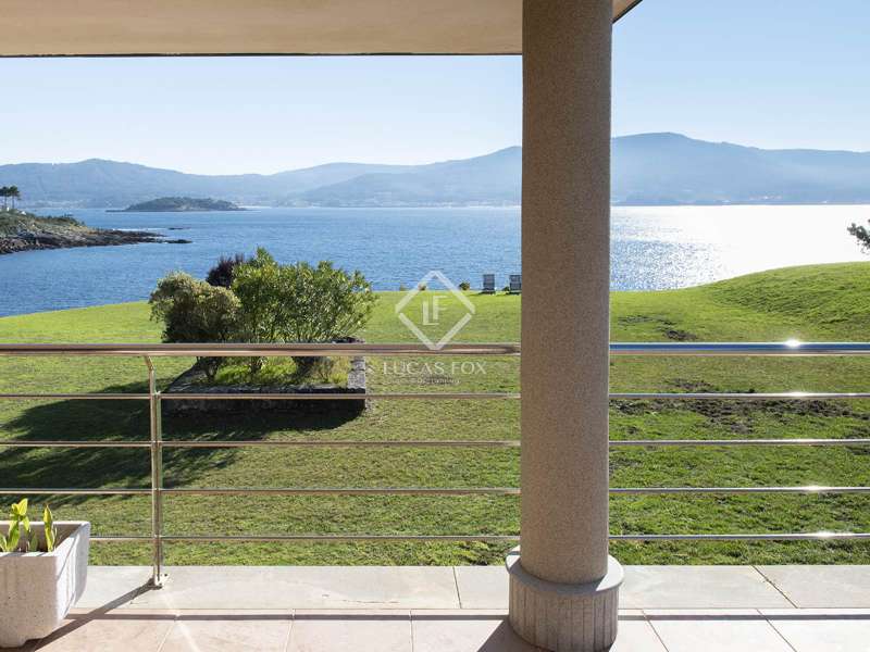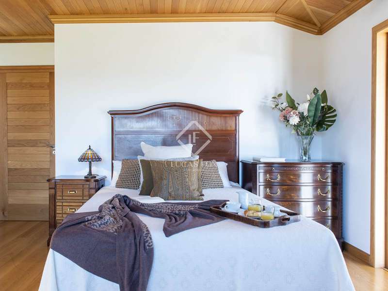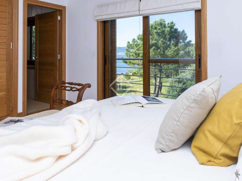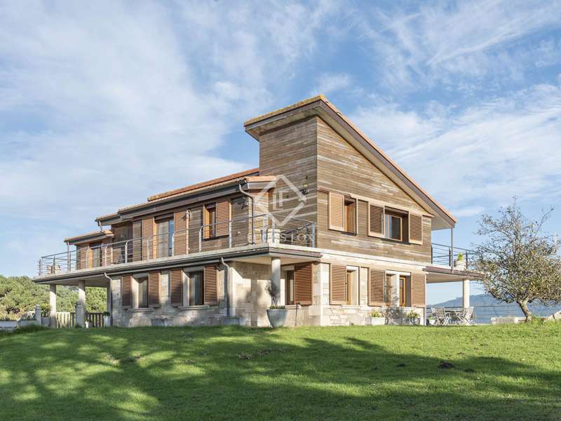 This outstanding villa is built with top quality materials throughout and boasts an excellent layout overlooking the estuary of Muros and the Atlantic Ocean in the Rias Baixas area of Galicia, Spain. It offers a total built size of 500 m² on ten hectares of private land. The villa offers a nice layout, with a sleeping area for 4 en-suite bedrooms, a large living and dining room, a private library/office area, and terraces and balconies with fantastic sunny views on all levels. The large terrace that borders almost the entire house on the top floor offers stunning, unobstructed sea views. In the grounds, we find open spaces, a lovely garden section, access to beautiful beach coves, a small forest area, with all areas offering gorgeous views. The exterior section of the villa is finished with natural Galician type stone and teak wood. Inside, we find all oak finished wood flooring and aluminium and wood joinery, double-glazed windows and shutters, all of good quality throughout. We are welcomed by a reception area that distributes the villa over three levels. We find the large open living and dining room, a library/study, the eat-in kitchen, and one bedroom on the main level. On the first floor, we find the sleeping area with 4 en-suite bedrooms, and we will find the rustic-style kitchen with access to the garden area, machine room, laundry room, and parking for 3 cars on the ground floor, with plenty of space for storage. The private estate is closed around its perimeter and fully landscaped, it enjoys good internet service, municipal water and private water wells. Information on the property will be provided to potential candidates on the condition of signing a non-disclosure agreement. Do not hesitate to get in touch with Lucas Fox for further details.