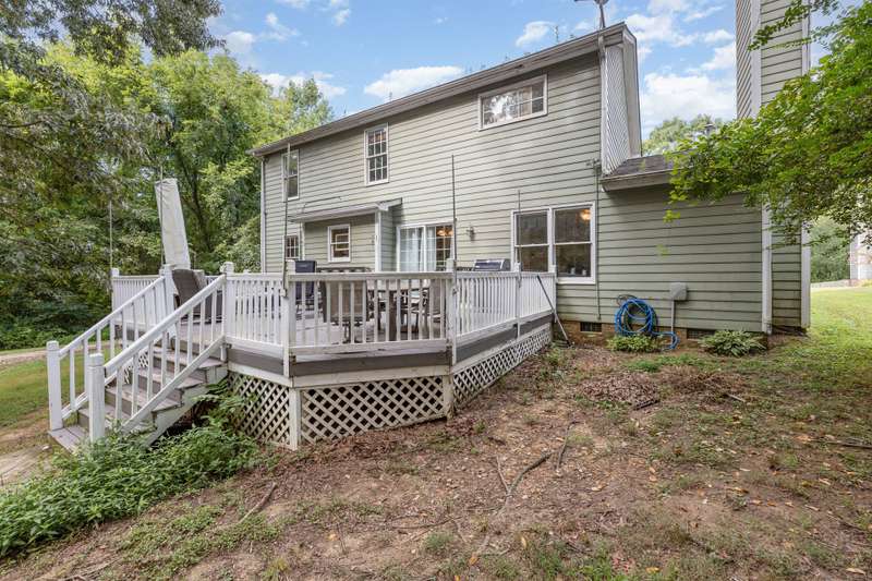 Welcome! This cozy home is located in the popular Kildare Woods Sub. located near Adams Farm. Walking through the front door you are invited into the living room for additional seating, an office, reading room, etc. The formal dining has a bay window to enjoy while having family dinners. The kitchen offers corian countertops, pantry, great cabinet space and an additional closet in the hall for additional storage. The breakfast area sits between the kitchen and den. Sliding doors heading out to a 22' 11" x 18' 7" deck for entertaining. The 4 BR and 2.5 BA home has lots to offer. The primary bedroom has vaulted ceilings, a large walk-in closet and a gorgeous primary bath with soaking tub, separate shower and double vanities. Three additional spacious bedrooms with ample closet storage. The 2 car garage offers additional storage space. Lots of trees and a quiet neighborhood. Agents, please see agents only remarks.