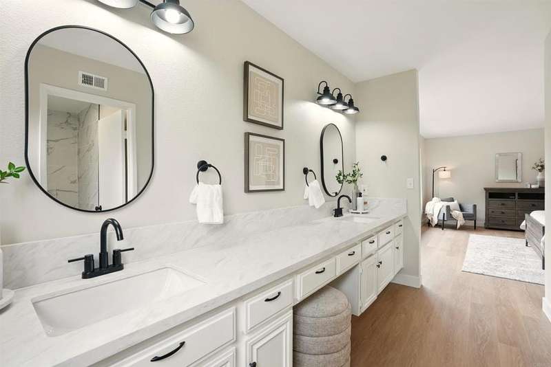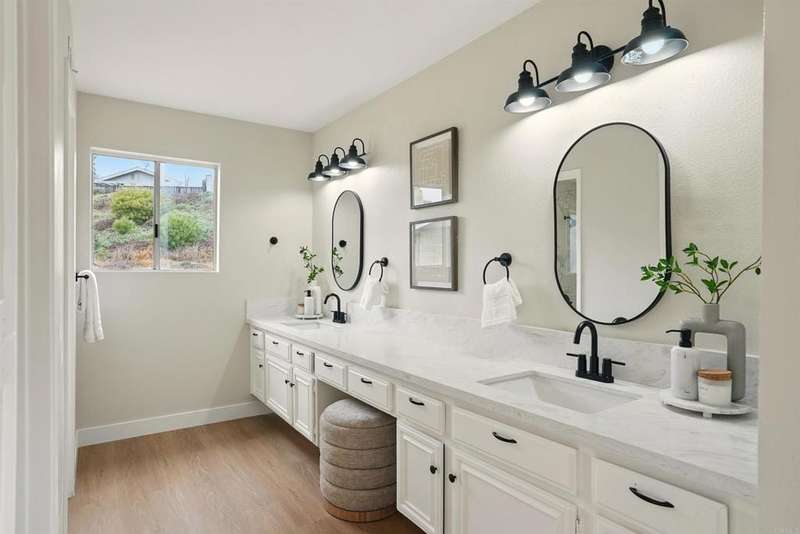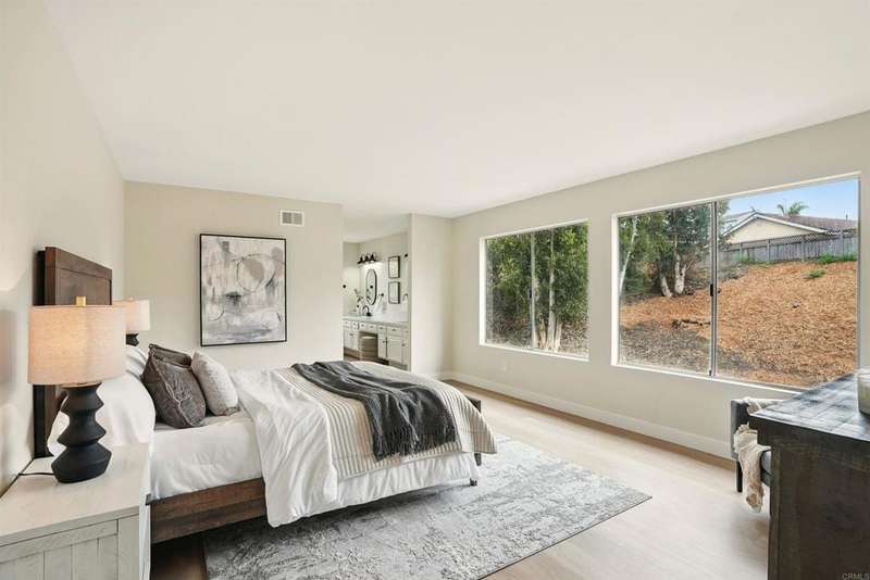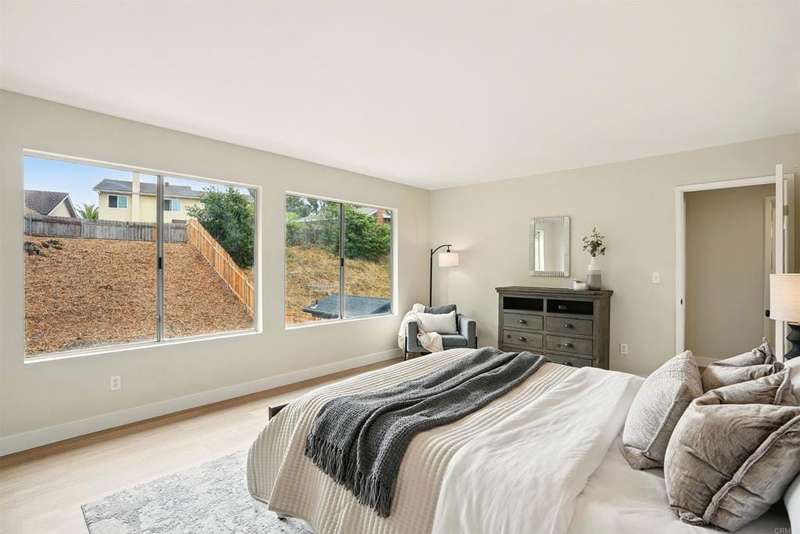 This bright, elegantly updated Rancho Del Rey home offers the space and style for the way you live today. With 5 bedrooms and 3 baths, including a convenient main-level bedroom and full bath, theres room for everyone! The modern kitchen and den with wet bar make entertaining effortless, while large windows fill the home with natural light. When Californias perfect weather calls, open the doors and let gatherings spill into the sprawling backyard- a true blank canvas with room for a pool, ADU, deck, or your own backyard getaway. The private, oversized primary suite upstairs overlooks the huge yard and has an ensuite bath. Tons of room in the spacious secondary bedrooms, an optional office area, and an immaculately updated hall bath. Tucked on a quiet cul-de-sac just minutes from parks, shopping, and the freeway, this home offers both privacy and convenienceperfect for busy days and relaxed evenings. Tax records list this property as a 4-bedroom home.