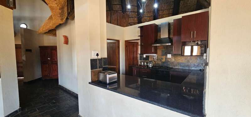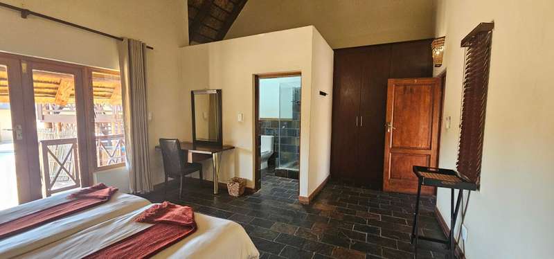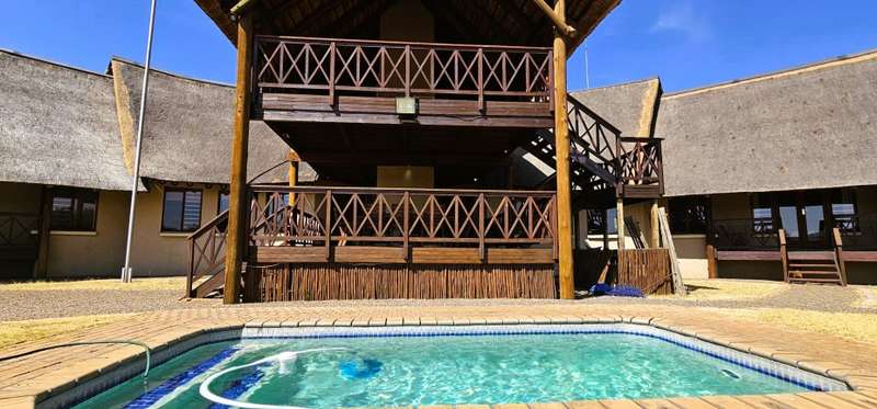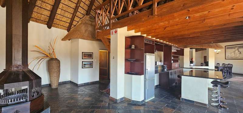 This property at the reduced price of R4 489 999 (VAT incl) with the added bonus of saving R270 706 on transfer fees!!– makes buying this property a very good investment!! An iconic lodge in Zebula Golf Estate & Spa, where luxury meets breathtaking natural beauty. Situated amidst the majestic Waterberg Mountains, this expansive lodge offers a lifestyle of unparalleled splendor. This lodge offers the perfect blend of a cozy permanent residence or a charming holiday home, with the added benefit of generating excellent rental income. Your retreat, your revenue—it's all here! At the heart of the residence lies a spacious open-plan living area, seamlessly integrating the kitchen, bar, and dining room. Enhancing convenience, a separate scullery and additional guest toilet provide practicality without compromising on style. Flowing effortlessly from the interior is an inviting covered deck area, perfect for alfresco dining or simply basking in the serene surroundings. Designed for comfort and privacy, the lodge features two distinct wings housing four en-suite bedrooms. Each bedroom offers panoramic views and sliding doors that open onto the outdoors, allowing guests to immerse themselves in the tranquility of nature. A fifth outside room offers versatile space, ideal for domestic accommodation or comfortably housing two additional guests. Ascend to the loft area, where an additional lounge awaits, offering a cozy retreat or entertainment space. Step out onto the upstairs deck and behold the panoramic vistas, providing an idyllic setting for relaxation and reflection. Indulge in outdoor living at its finest with a stunning boma for unforgettable braais under the starlit sky. A sparkling swimming pool invites you to refresh and rejuvenate, completing the perfect picture of luxury living. Experience the epitome of elegance and natural beauty at Icon Zebula Lodge—a sanctuary where every moment is infused with timeless charm and serenity. NOTE: No Transfer duty payable on sale. Zebula Golf Estate is a one-of-a-kind Golf and Safari Resort, favored by Gauteng’s elite. The estate features a world-class 18-hole golf course, a clubhouse, restaurants, an activities center, and a spa, ensuring every need is met with precision. Enjoy a range of activities from game drives to quad biking, clay pigeon shooting, mountain biking, trail running, squash, tennis, and more. For those who prefer to arrive in style, a fully operational tarred runway is also available for aviators. Don’t just dream it—live it at the African Dream House in Zebula Golf Estate.