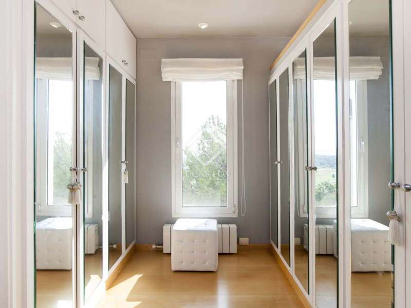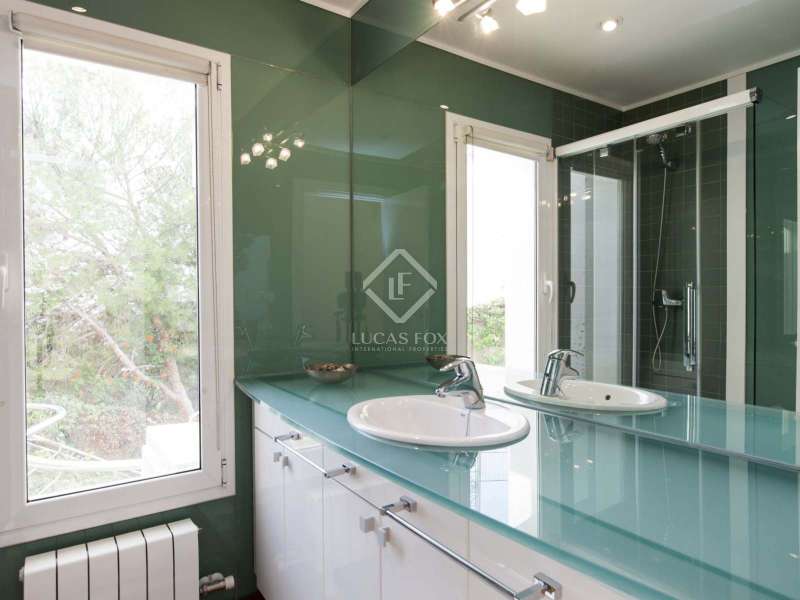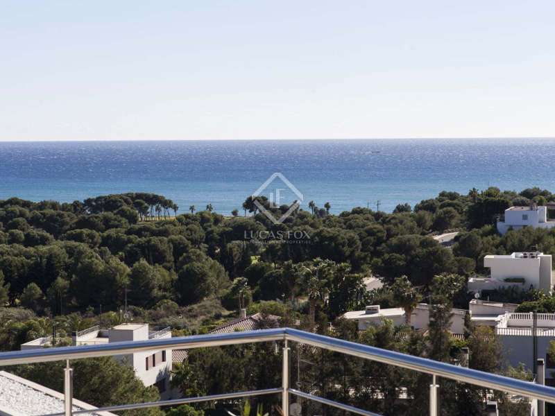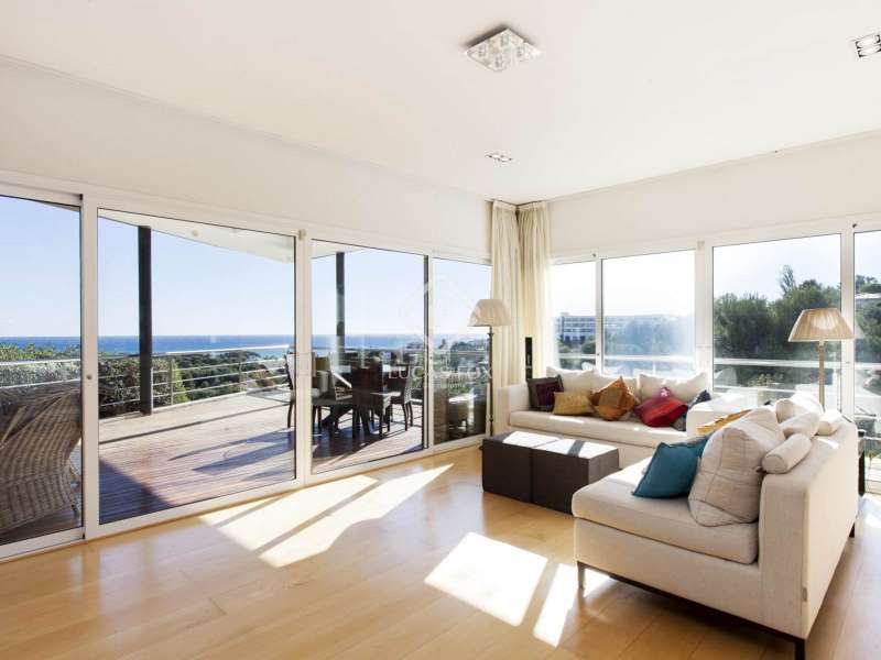 Built in 2004, offering 5 bedrooms and panoramic sea views from the incredible infinity pool, this spacious, modern villa in a quiet, gated community in Sitges would make a great home for a family, golfers or as a luxury holiday home by the coast. The villa is set over many levels, making for a very interesting property. The ground floor has a generous split level living and dining area opening up onto the terrace overlooking the pool and garden with incredible sea views. There is a good sized kitchen with utility room. Up one level we find 2 bedrooms sharing a bathroom followed by a suite a little further up and then on to the master floor with interconnected bathroom, walk-in wardrobe, bedroom and balcony. From there we go up again to an office/multipurpose space. These spaces are connected with a beautifully crafted staircase. Downstairs, below the living room we have a double garage, several storage areas, staff living quarters, a wine cellar and a sauna. The garden features a lawn as well as extensive decking around the pool. A rare opportunity to purchase a glamorous and spacious home in the best part of Sitges with ever-increasing demand and enviable sea views.