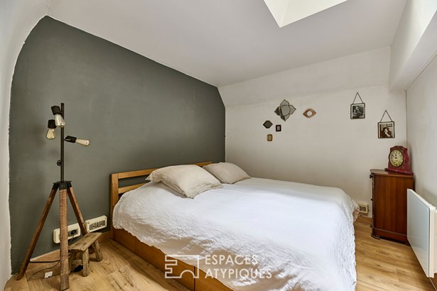 The flexible part, accessible by a staircase, consists of a large room of 17.45 m2, a bedroom with a skylight as well as a bathroom and a separate toilet.