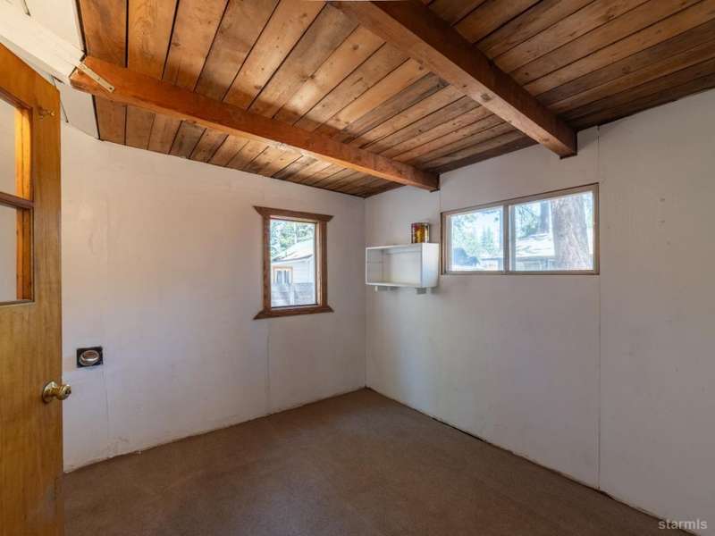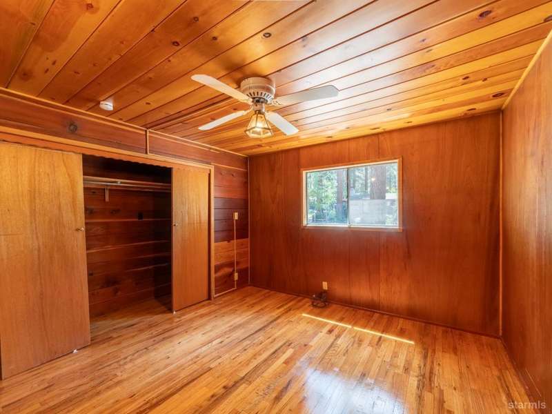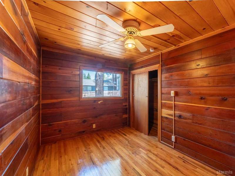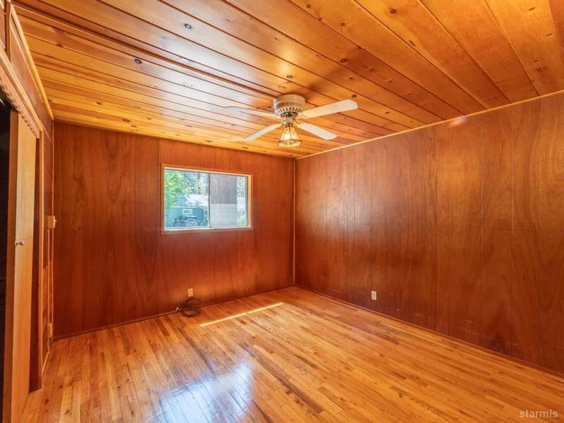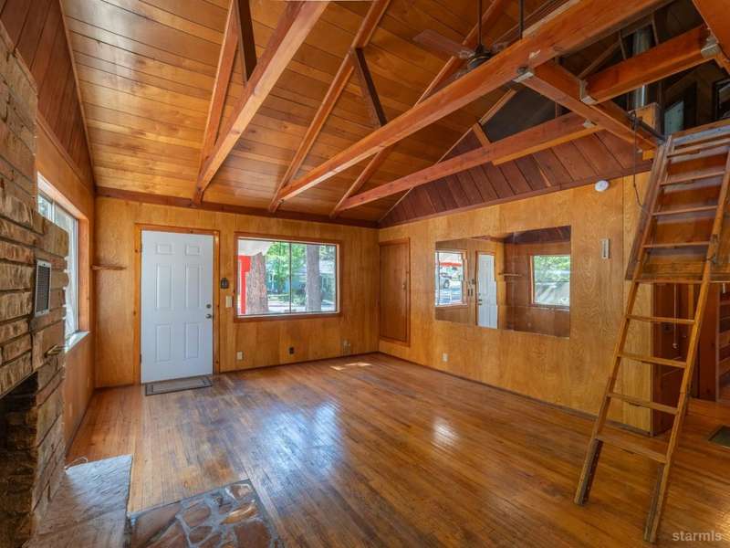 Major Price Improvement! Experience the South Lake Tahoe lifestyle in this refreshed knotty pine cabin with open-beam, vaulted ceilings, now offered under $450,000. Perfect as a mountain retreat or full-time home, this 930 sq. ft. cabin blends Tahoe charm with modern updates, featuring newly refinished wood floors, soaring ceilings, two spacious bedrooms, and an upstairs sleeping loft for guests or a cozy nook.Recent upgrades include fresh paint inside and out, a brand-new oven and range, a fully fenced backyard, and a new 18,000 BTU heat pump with heating and A/C (installed 9/26/25). The large laundry room doubles as a pantry and storage space, with flexibility for a gas dryer hookup (electric dryer plug is disconnected). A paved two-car parking pad adds extra convenience.Located just blocks from Hwy. 50, shops, dining, and year-round outdoor recreation, the home has over $30,000 in recent improvements and is move-in ready. Pest and home inspections with clearance are on file.With the City's revised Vacation Home Rental (VHR) ordinance now accepting new applications, this property also offers income potential when not in use.Whether you're seeking a primary home, weekend getaway, or investment, this centrally located Tahoe cabin is ready to welcome you.Note: Furnished living room photo has been virtually staged. The home is vacant.