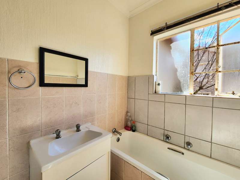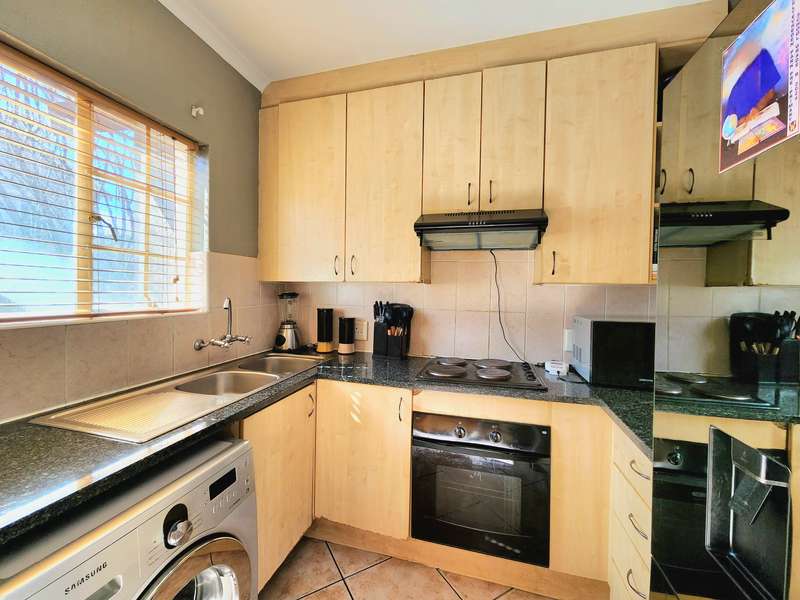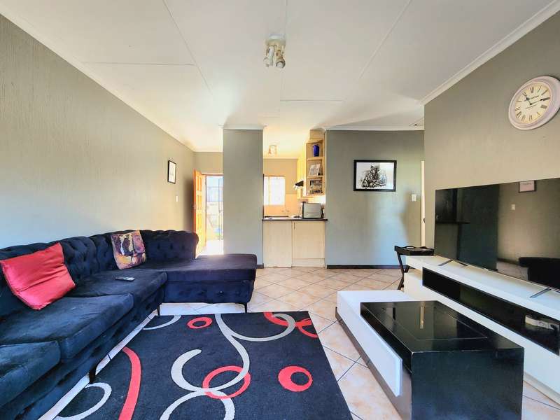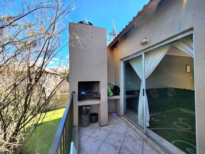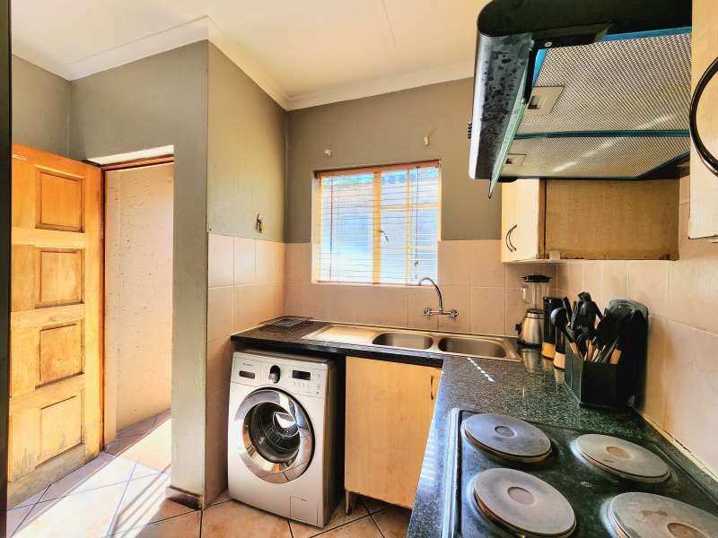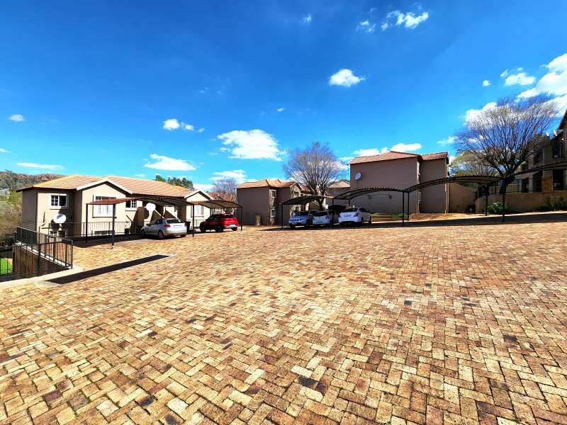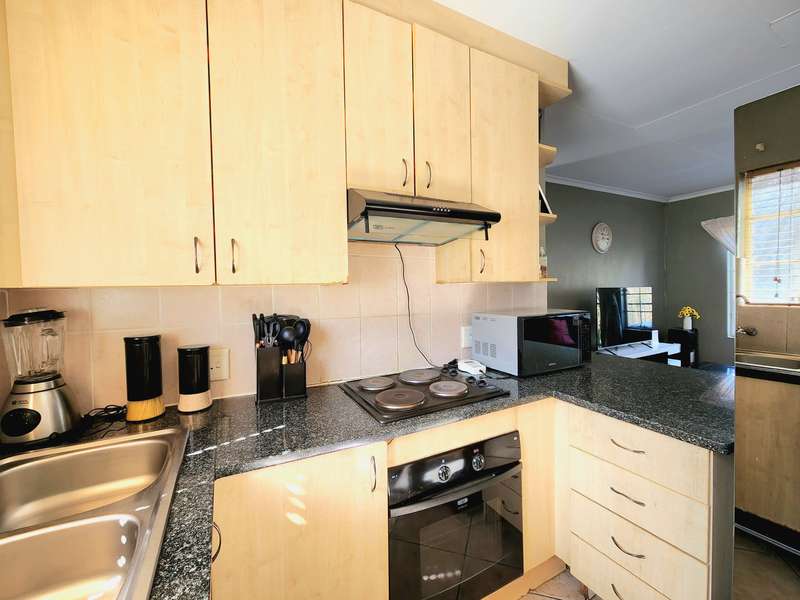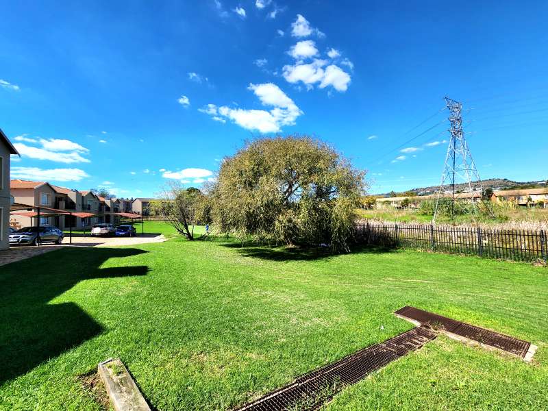 Nestled in a secure complex with 24-hour security and access control, this first-floor apartment offers a private, well-lit living space, perfect for comfort and convenience. Upon entry, the melamine-top kitchen is well-equipped with a 4-plate electric hob, extractor fan, and undercounter oven. The space accommodates a single-door fridge and one large appliance, ensuring practicality. The spacious lounge can easily fit a sizeable suite and opens onto a sunlit balcony, complete with a built-in braai—ideal for relaxed outdoor living. The primary bedroom is well-lit and accommodates a queen-size bed, offering ample cupboard space. The second bedroom comfortably fits a double bed, making this a great home for small families or professionals. A neatly tiled shared bathroom features a shower, bathtub, single basin, and toilet. For parking, the unit includes one covered bay, with plenty of open spaces for a second vehicle and visitors. Designed for families, the complex offers plenty of open grass and play areas, creating a peaceful and enjoyable atmosphere. Conveniently located near Curro Wilgeheuwel, shopping centres, and main routes, this home is perfectly positioned for easy access to amenities. Plus, the unit is fibre-ready, ensuring seamless connectivity.