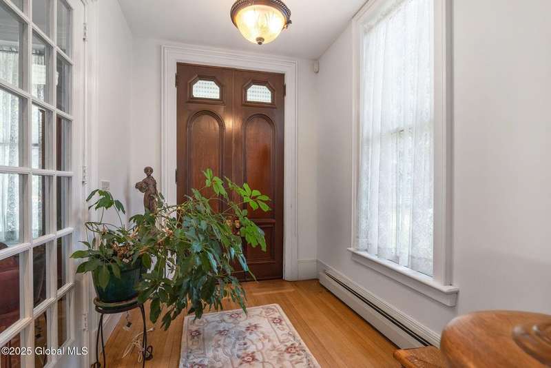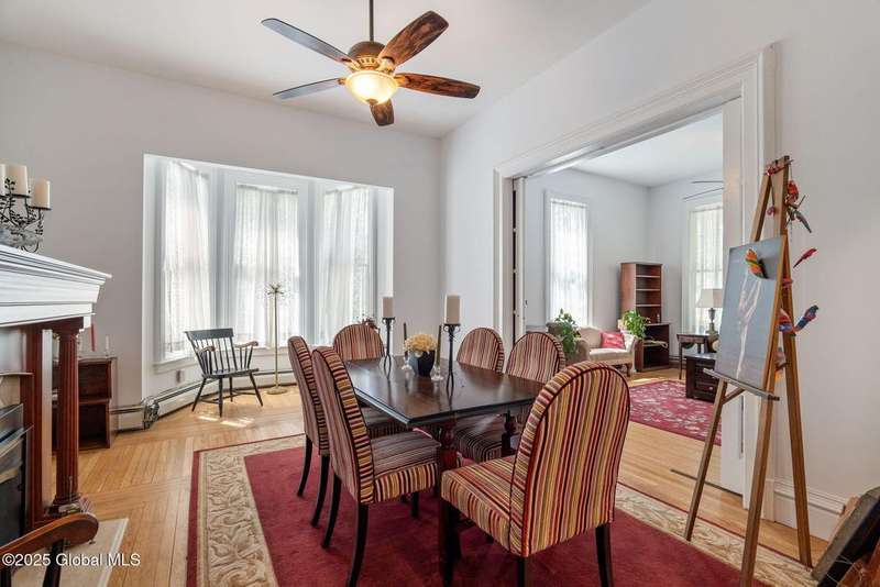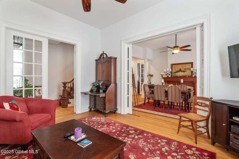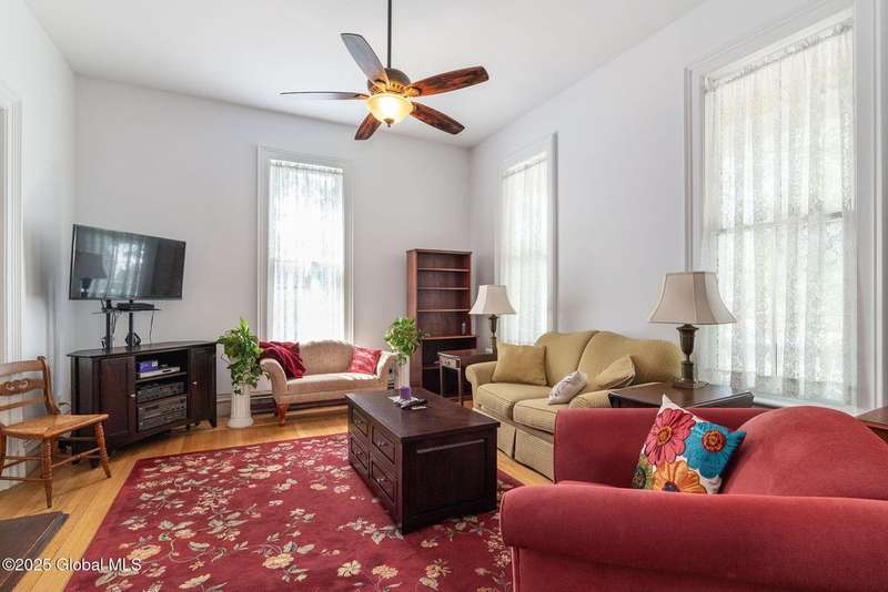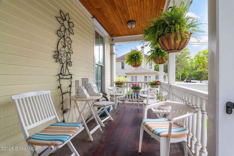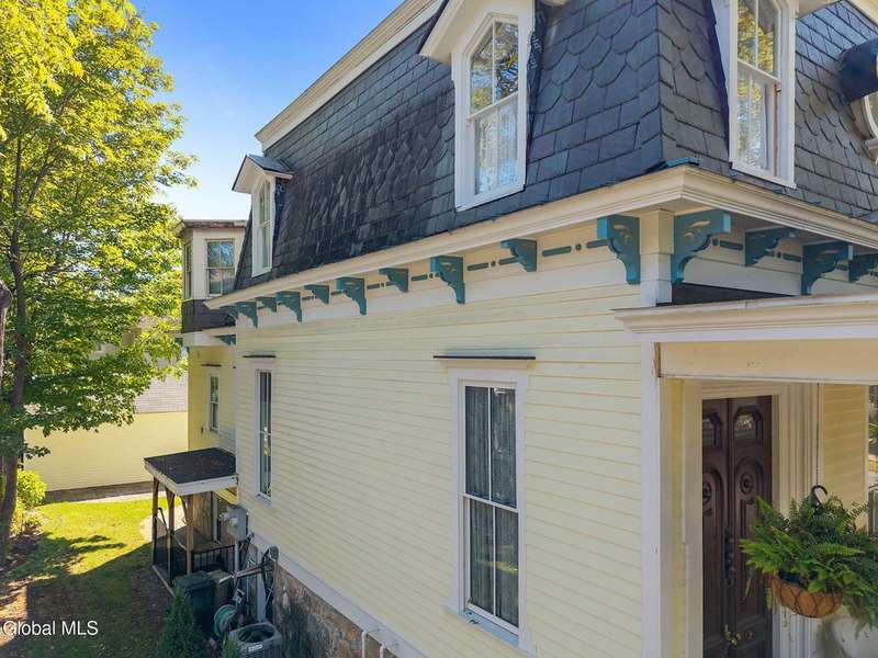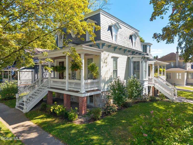 Beautifully restored 1873 Second Empire home is a rare offering in the coveted Historic East Side, just steps from the Saratoga Race Course, Fasig-Tipton Auction House, and Oklahoma Training Track.The residence showcases timeless elegance with 3 bedrooms, 2.5 baths, and stunning period details. 11ft ceilings grace the formal living and dining rooms, enhanced by a gas fireplace, pocket and French doors, and 2 spacious sitting porches perfect for relaxing or entertaining. Lower level offers a charming 2 bedroom garden apartment, ideal for guests, rental income, or multigenerational living. Outside, enjoy landscaped grounds featuring a quaint garden and patio. 1 car garage, and private driveway for up to 4 vehicles. A rare chance to own a piece of Saratoga history with modern comforts!