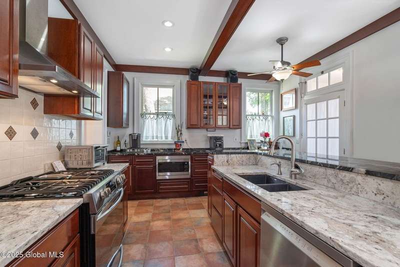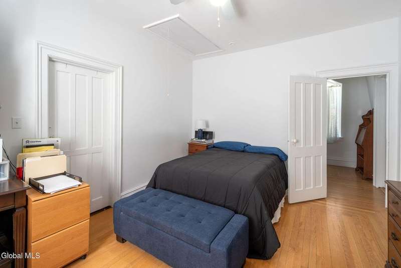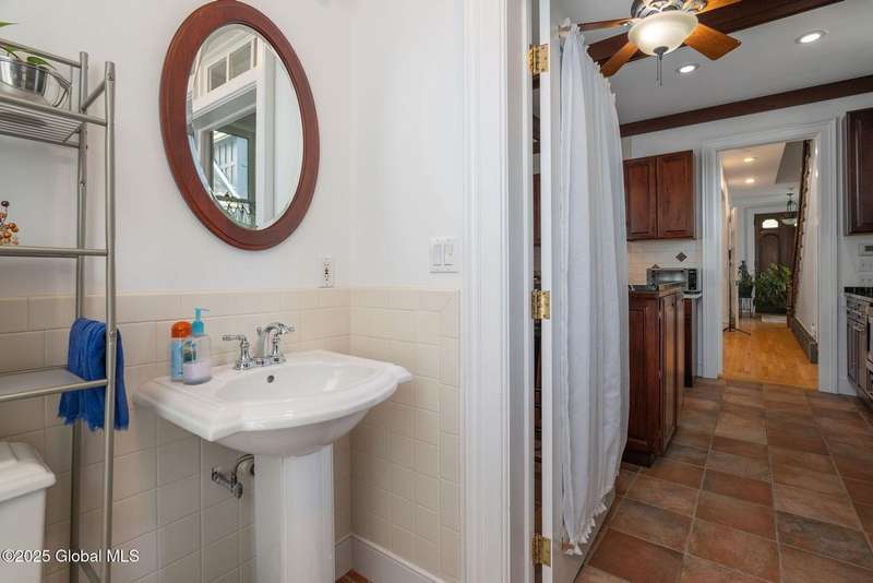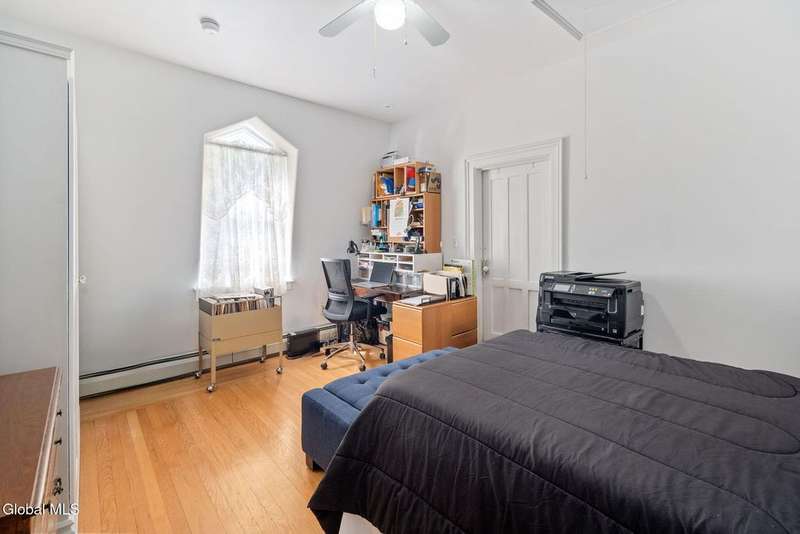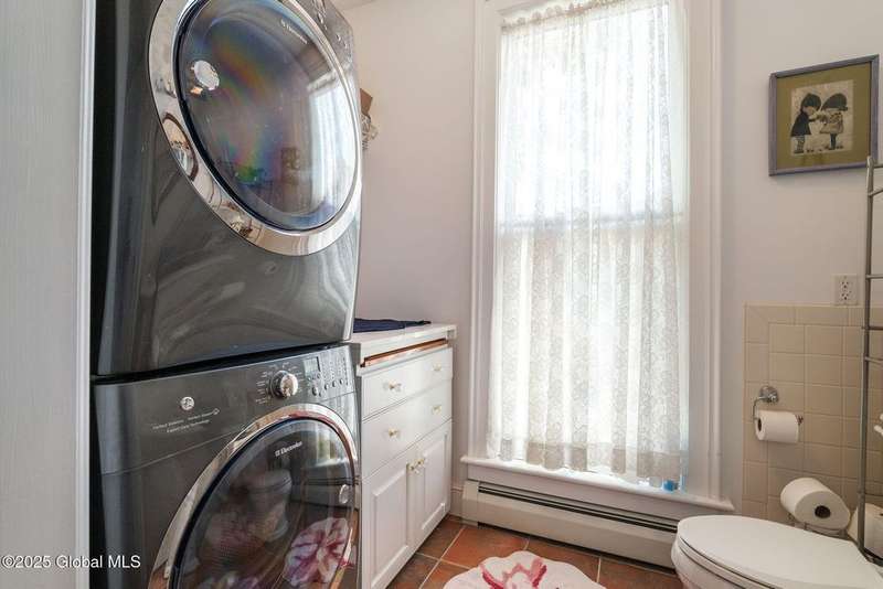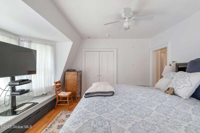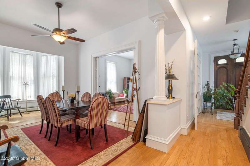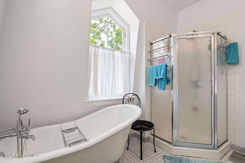 Beautifully restored 1873 Second Empire home is a rare offering in the coveted Historic East Side, just steps from the Saratoga Race Course, Fasig-Tipton Auction House, and Oklahoma Training Track.The residence showcases timeless elegance with 3 bedrooms, 2.5 baths, and stunning period details. 11ft ceilings grace the formal living and dining rooms, enhanced by a gas fireplace, pocket and French doors, and 2 spacious sitting porches perfect for relaxing or entertaining. Lower level offers a charming 2 bedroom garden apartment, ideal for guests, rental income, or multigenerational living. Outside, enjoy landscaped grounds featuring a quaint garden and patio. 1 car garage, and private driveway for up to 4 vehicles. A rare chance to own a piece of Saratoga history with modern comforts!