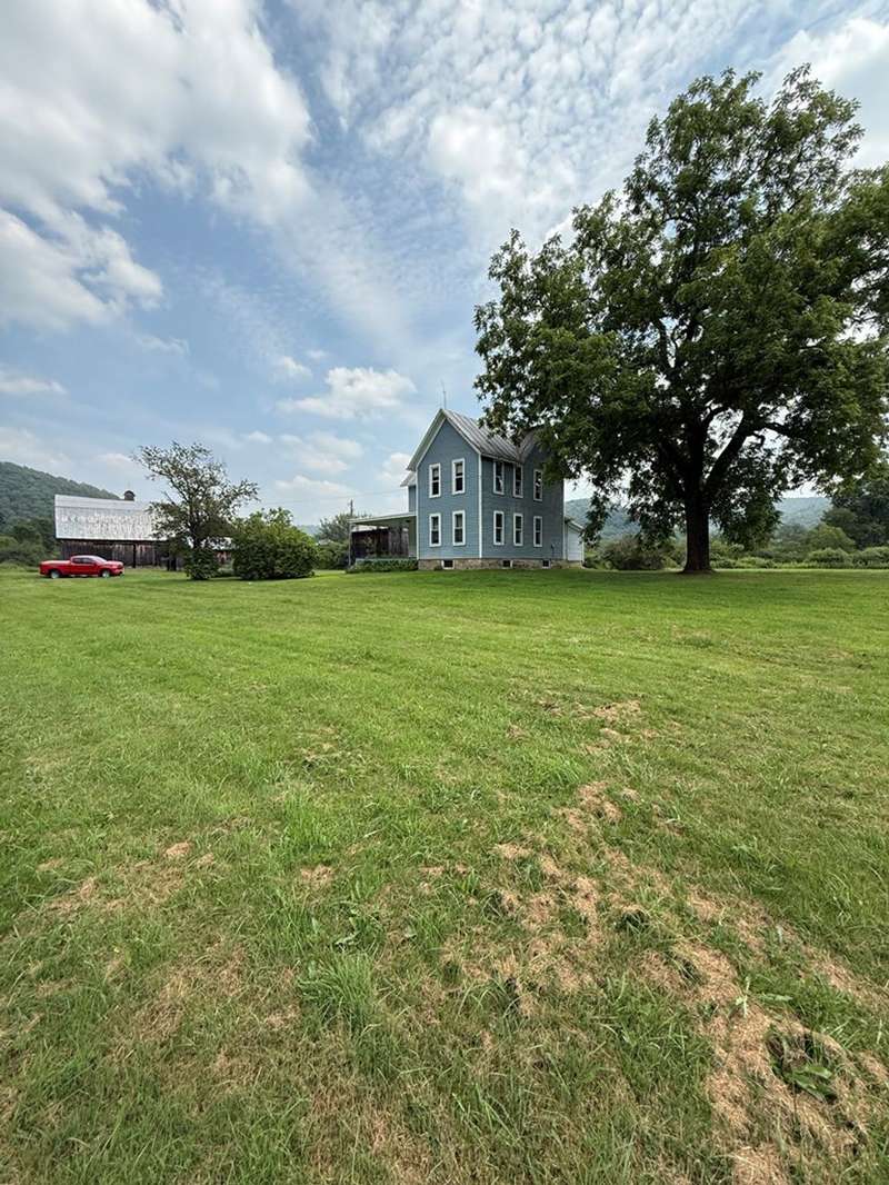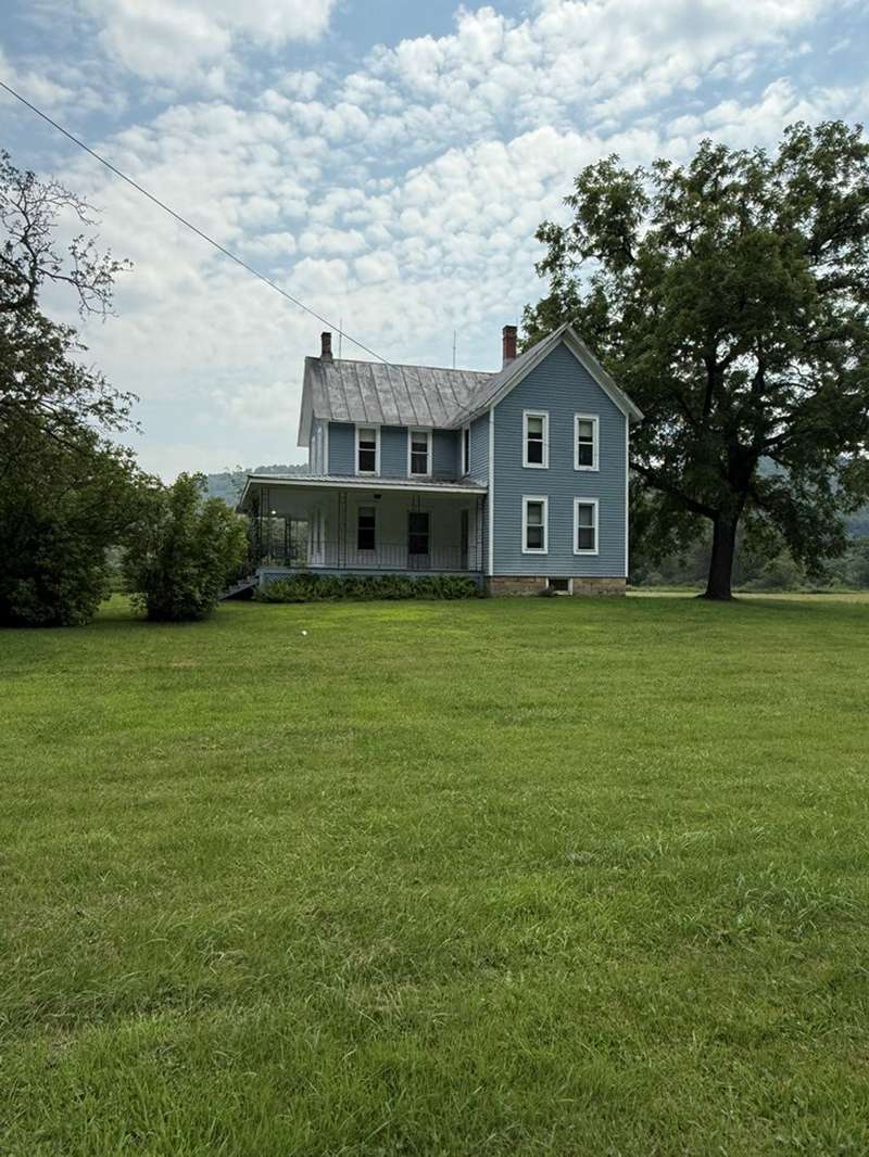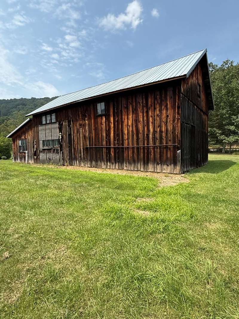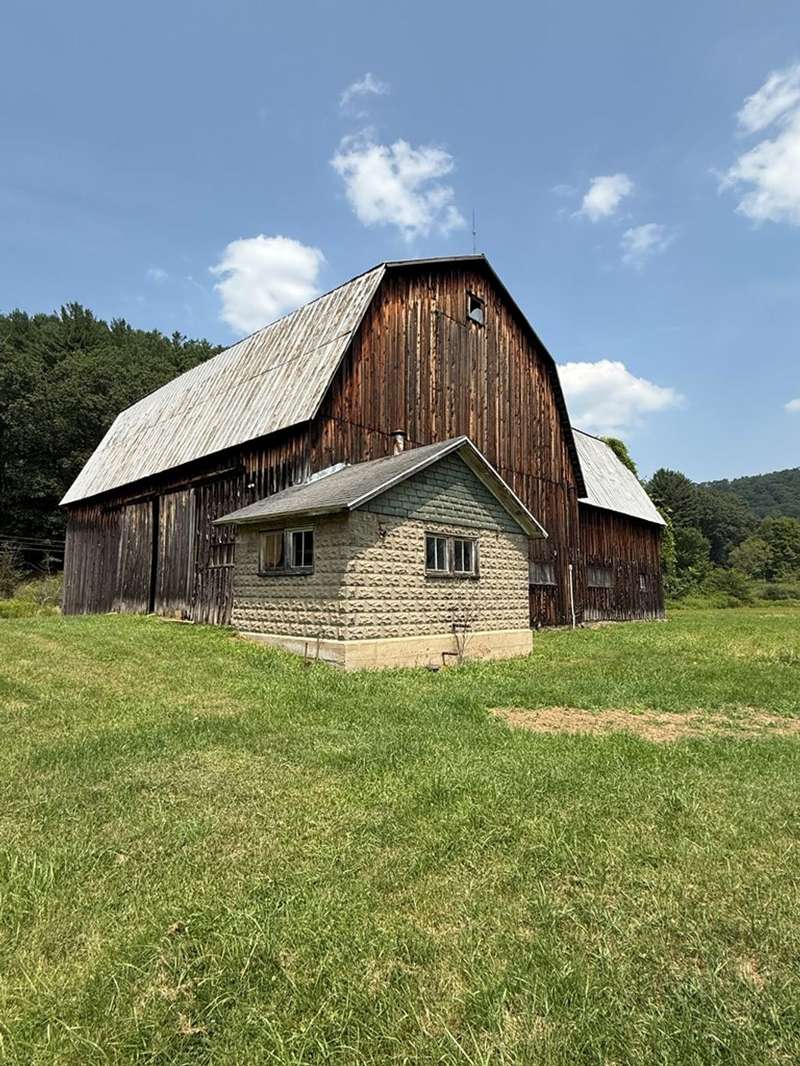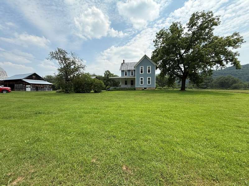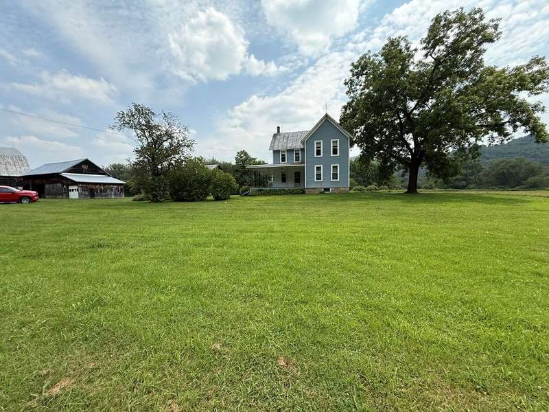 This beautiful farm was once operational and could be again. The farm house is in livable condition but with some upgrades would be stunning. There are three huge out barn/bldgs which need some attention. But all buildings on the property have metal roofs .The south boarder of the property is the Alleghany river, which adds to the beautiful setting. Mature trees and shrubbery add to the beauty of the farm. The one upstairs bedroom has wall paper (ceiling & Wall) damage from a leak many years ago before the metal roof was installed. There are no longer any leaks observed.