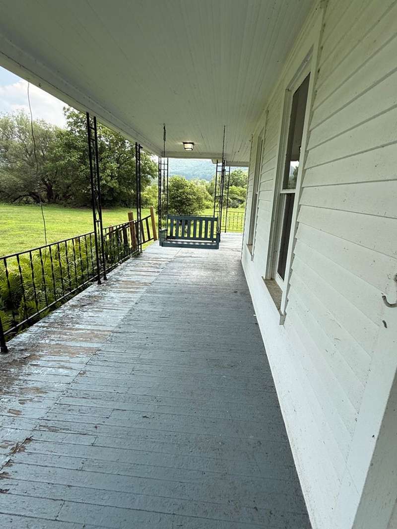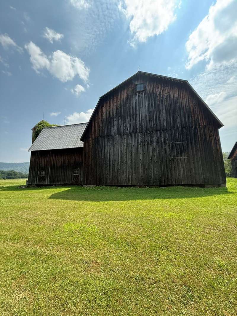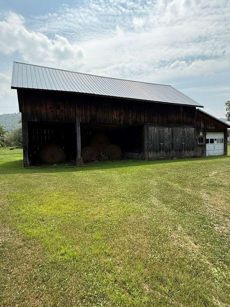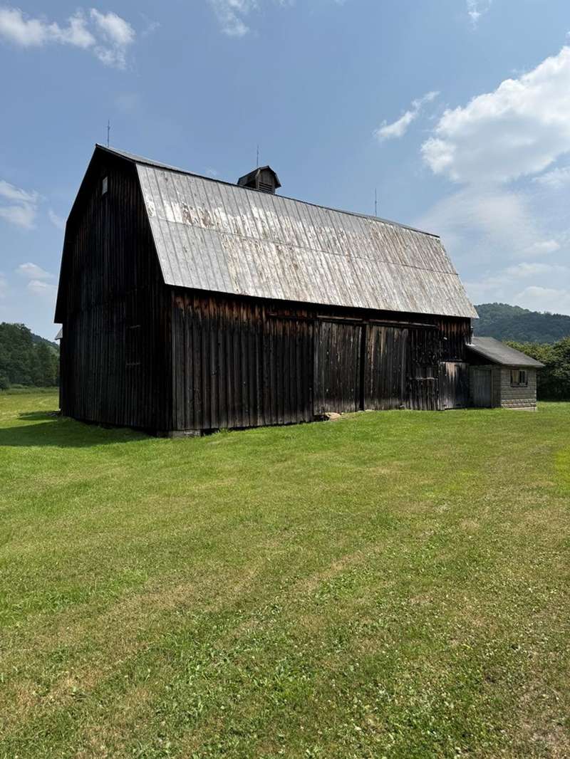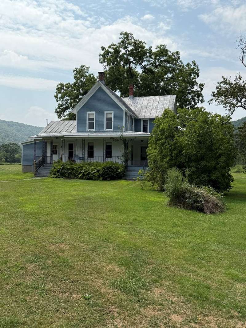 This beautiful farm was once operational and could be again. The farm house is in livable condition but with some upgrades would be stunning. There are three huge out barn/bldgs which need some attention. But all buildings on the property have metal roofs .The south boarder of the property is the Alleghany river, which adds to the beautiful setting. Mature trees and shrubbery add to the beauty of the farm. The one upstairs bedroom has wall paper (ceiling & Wall) damage from a leak many years ago before the metal roof was installed. There are no longer any leaks observed.