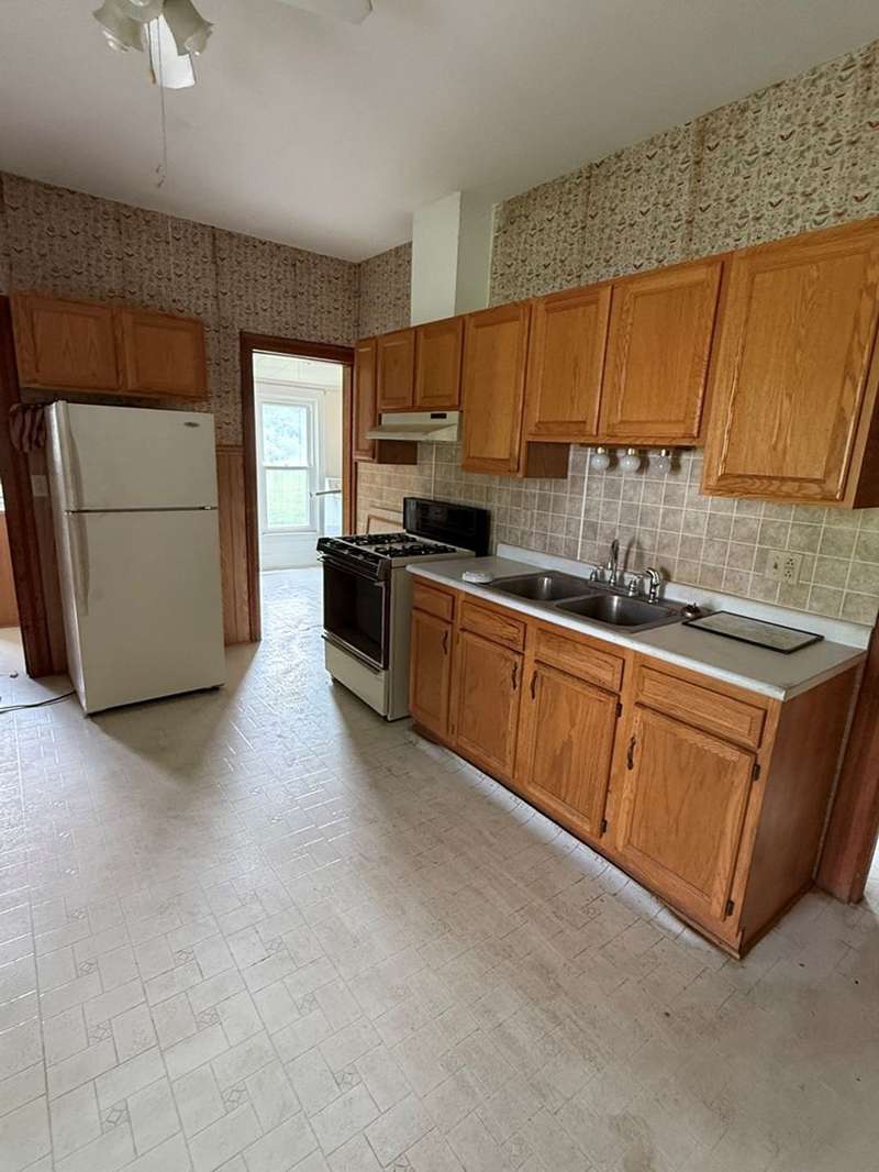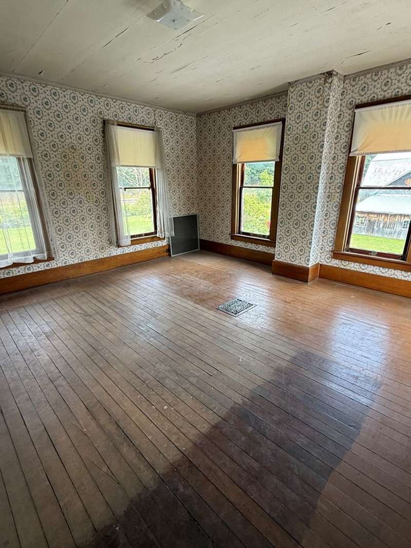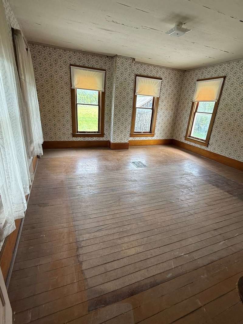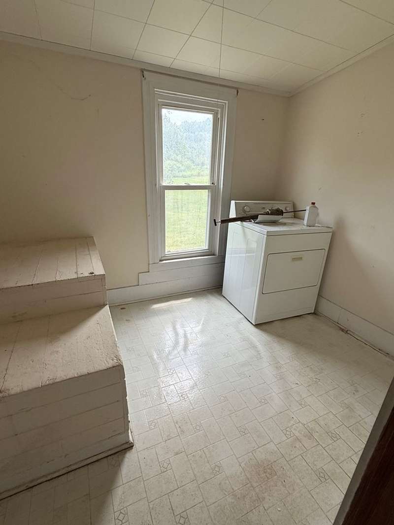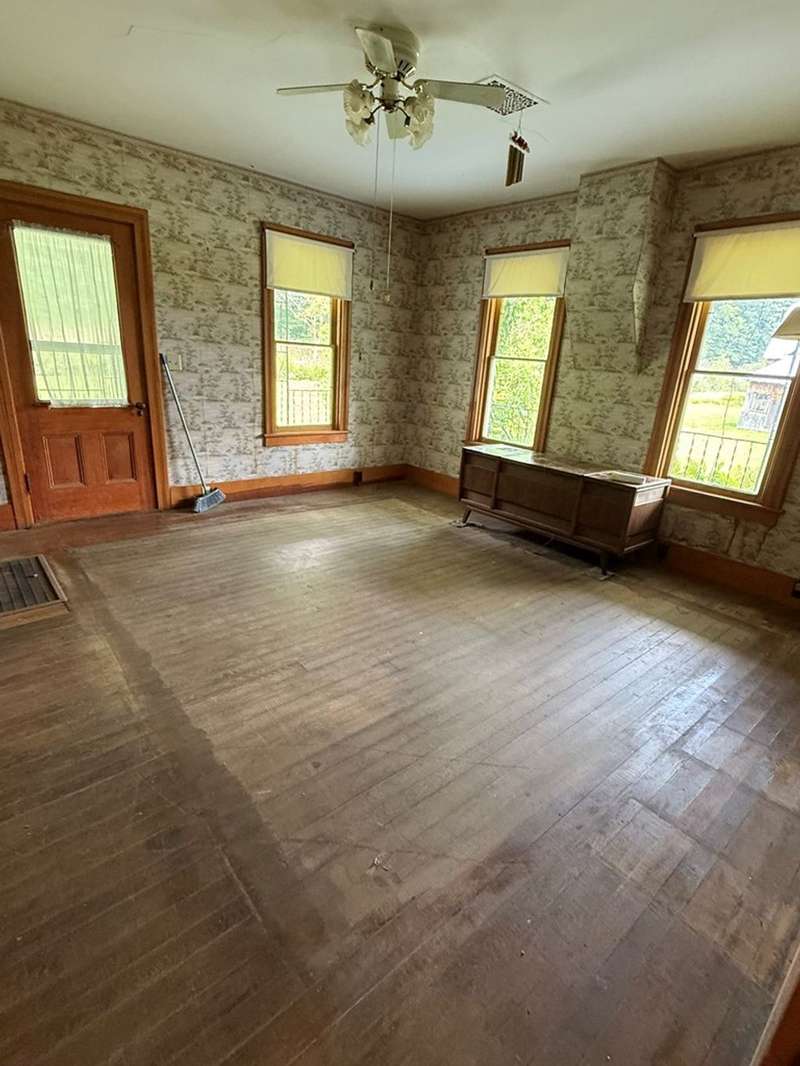 This beautiful farm was once operational and could be again. The farm house is in livable condition but with some upgrades would be stunning. There are three huge out barn/bldgs which need some attention. But all buildings on the property have metal roofs .The south boarder of the property is the Alleghany river, which adds to the beautiful setting. Mature trees and shrubbery add to the beauty of the farm. The one upstairs bedroom has wall paper (ceiling & Wall) damage from a leak many years ago before the metal roof was installed. There are no longer any leaks observed.