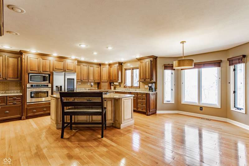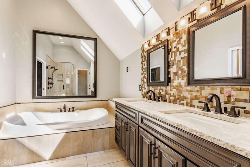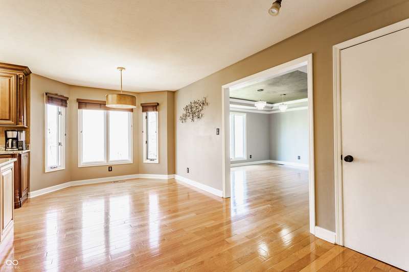 Water access to Eagle Creek Reservoir! Nestled in Bay Colony, a gated community located just steps from Eagle Creek Reservoir, your dream retreat awaits. Opportunities to purchase in this neighborhood do not come about often. This exceptional home offers over 5,000 square feet of beautiful and functional space, vaulted ceilings, natural light throughout, and 3 fireplaces. Two decks off the main level and your walkout basement patio face a private and secluded backyard with no neighbors in view. Neighborhood access to the water means you can enjoy kayaking daily! Highlights include your primary suite, a true sanctuary with a spacious walk-in closet, and spa-inspired bathroom. Gather friends and family to entertain in the hearth room, complete with full wet bar, pool table stays. The walkout basement features 3 more truly unique and expansive living areas. Enjoy sailing, kayaking, golfing, hiking, bird watching, and all that living on the reservoir has to offer.
