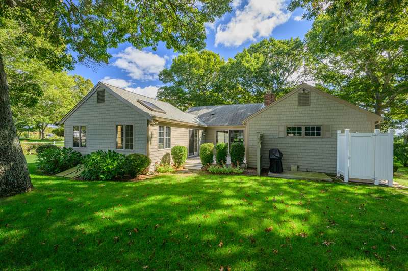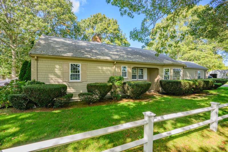 Set on a picturesque corner lot overlooking the Bass River Golf Course, this very well cared for ranch in Country Club Estates offers a fantastic floor plan and thoughtful touches throughout. This home lives much larger than it looks! One of the standout features is the spacious, light-filled great room. Perfect for relaxing or entertaining, this inviting space adds an expansive feel to this home. In addition, a cozy living room with fireplace features French doors, providing easy access to the backyard deck. The home also includes a formal dining area with a bow-bay window and two spacious bedrooms, one featuring direct bathroom access. A first-floor laundry and powder room provide convenience. Mature plantings and landscaping enhance the home's curb appeal, creating a peaceful & private outdoor setting. Enjoy proximity to top golf courses, marinas, beautiful parks and beaches, local restaurants, the Bass River Cultural Center, and more everything you need for a Cape Cod lifestyle!
