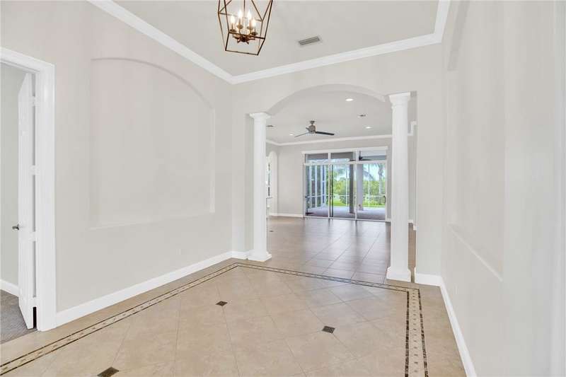 Beautifully updated estate home situated alongside Pointe West's golf course. This home features a large covered/screened paver lanai perfect for enjoying coffee in the morning & watching the golfers cruise by. The roomy home has high volume ceilings, dramatic archways, pillars & tray ceilings. Eat-in island kitchen w/granite countertops, backsplash, Sub-Zero Fridge, stainless steel appliances & natural gas cooktop. Grand primary suite with siitting area, his & hers walk-in closets, dual vanities, relaxing tub. Home features natural gas washer & dryer. Rmszapprox. EASY TO SHOW!