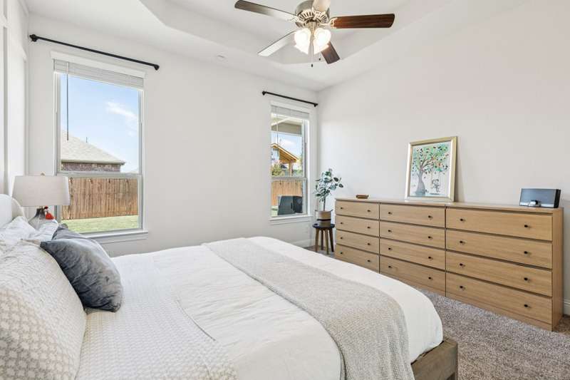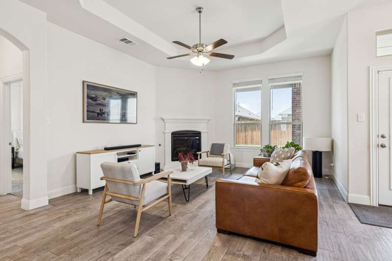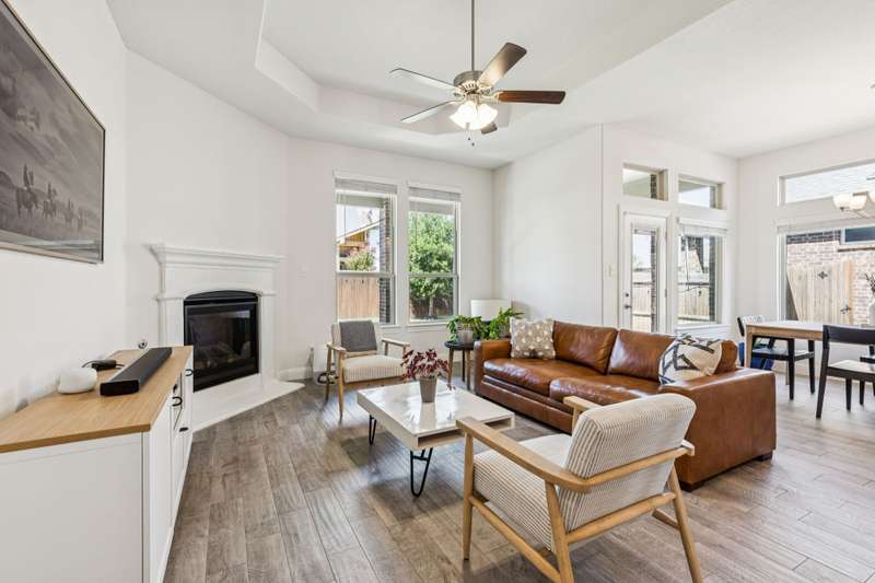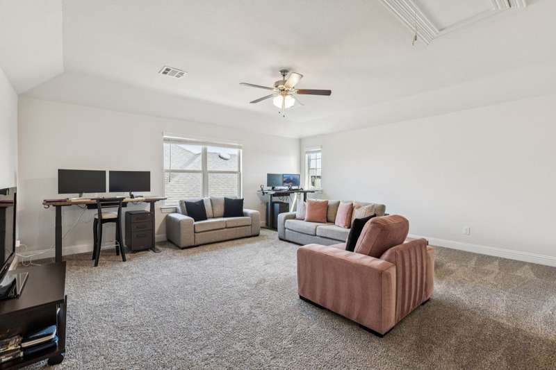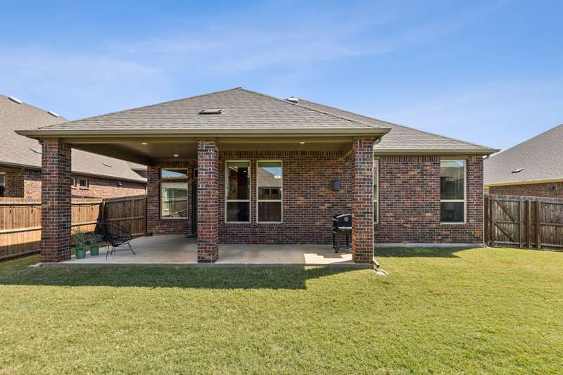 Welcome to 2817 Faro, a beautifully appointed home in the desirable Silverado community of Aubrey. Inside, the open layout boasts elegant tray ceilings, crown moldings, and graceful archways that add timeless character and a true touch of luxury. This thoughtfully designed residence features four spacious bedrooms and a warm family room anchored by a cozy fireplace, creating the perfect gathering space. The chefs kitchen is a true highlight with stainless steel appliances, a gas range, a large island, and abundant cabinet space - an ideal setup for both everyday living and entertaining. The private primary suite is a light-filled retreat with a wall of windows overlooking the backyard, a spa-inspired bath with a garden tub and separate shower, and a generous walk-in closet. Upstairs, a versatile bonus room offers endless possibilities as a game room, media space, second living area, or private suite and includes its own full bath for guests or family. A three-car garage ensures plenty of parking and storage, while an extended covered patio provides a comfortable setting for outdoor living and entertaining. Residents of Silverado enjoy a wealth of resort-style amenities, including a sparkling pool and splash area, a modern clubhouse, pickleball and basketball courts, a dog park, and scenic walking trails. The neighborhood also offers multiple parks, a playground with a picnic area, and a charming pergola with outdoor lighting, perfect for community gatherings. Conveniently located near Highway 380 and the Dallas North Tollway, Silverado provides the perfect balance of community living with quick access to shopping, dining, and major employment hubs across North Texas. This home offers the ideal combination of luxury, function, and location - ready for its new owners.
