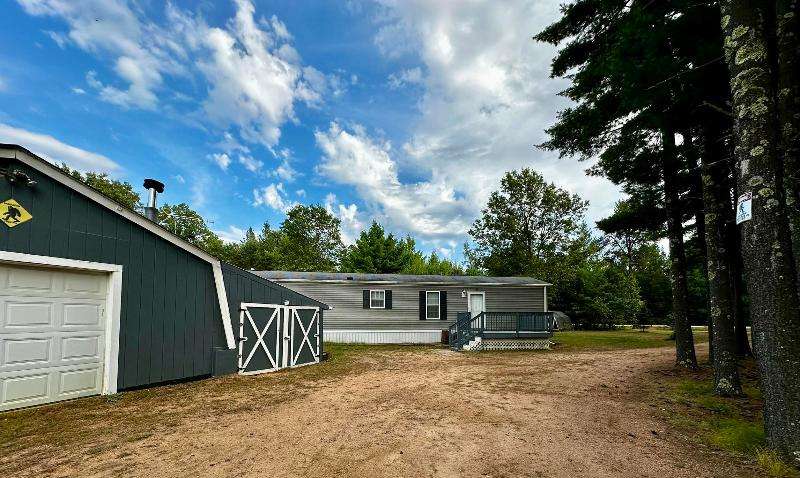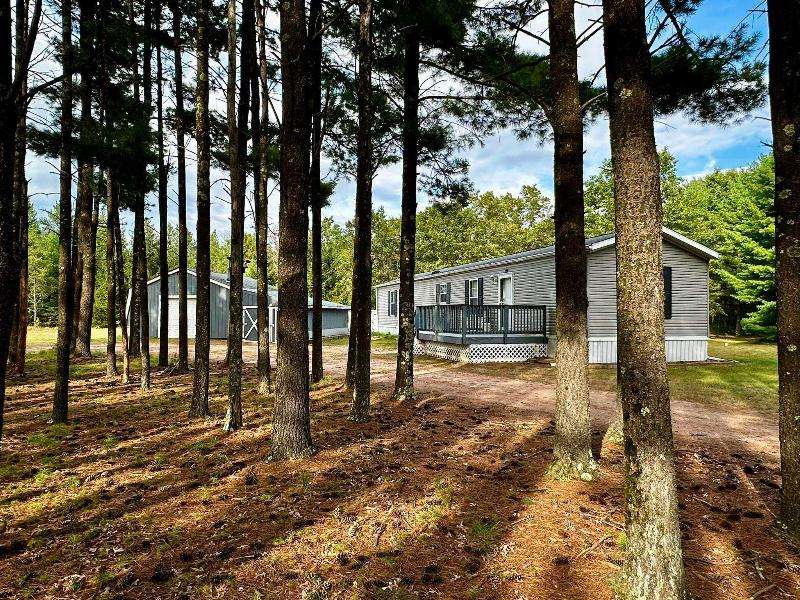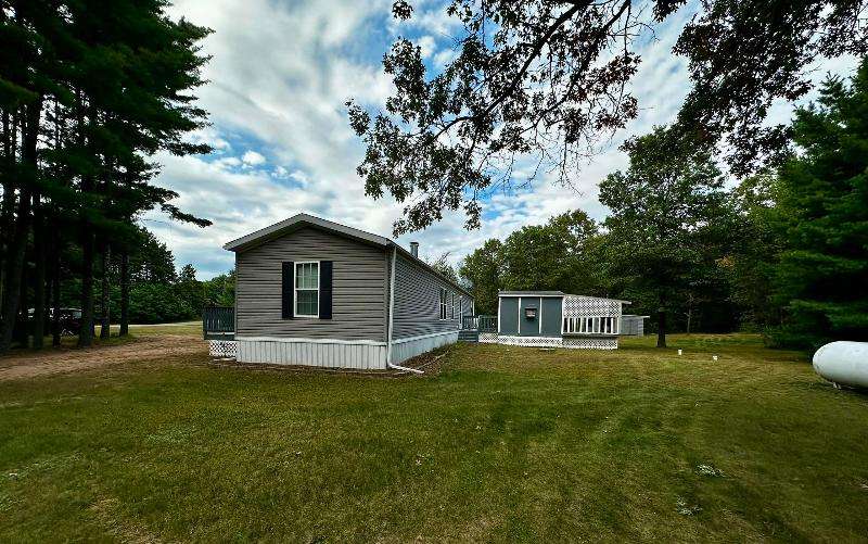 Cozy country retreat on 5 wooded acres! This single wide mobile features 2 bedrooms, 2 baths, large closets, a pantry, and a fireplace to enjoy on cool evenings. Property includes 2 garages, extra sheds, and a brand-new well. Inside is clean, move-in ready, and offers plenty of storage. Located just minutes from Rome, Sand Valley and Lake Arrowhead Golf Courses, plus only 15 minutes to Lake Petenwell for boating and fishing. ATV route nearby with endless outdoor recreation--hiking, snowmobiling, and more. Perfect for year-round living, a weekend getaway, or investment property!