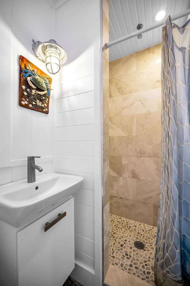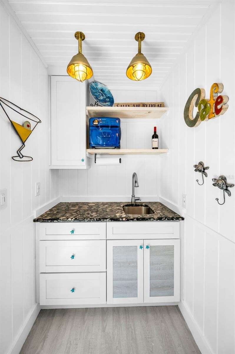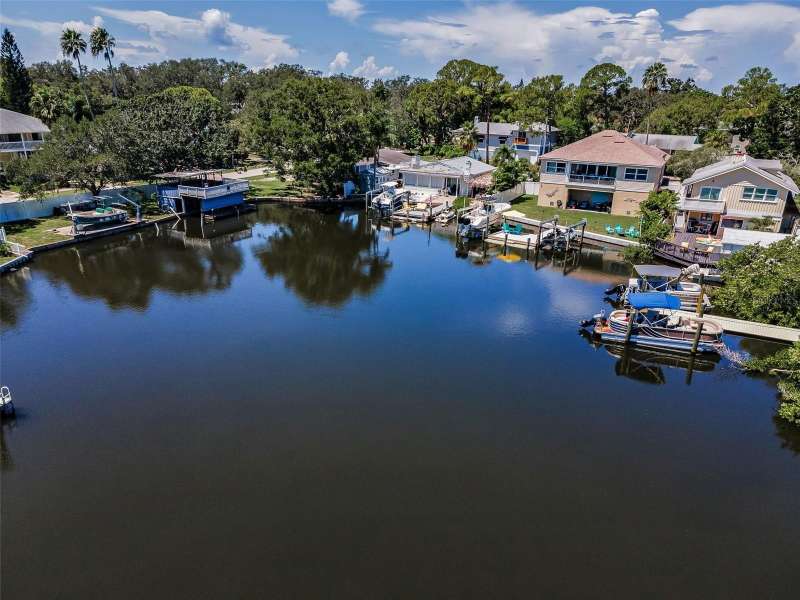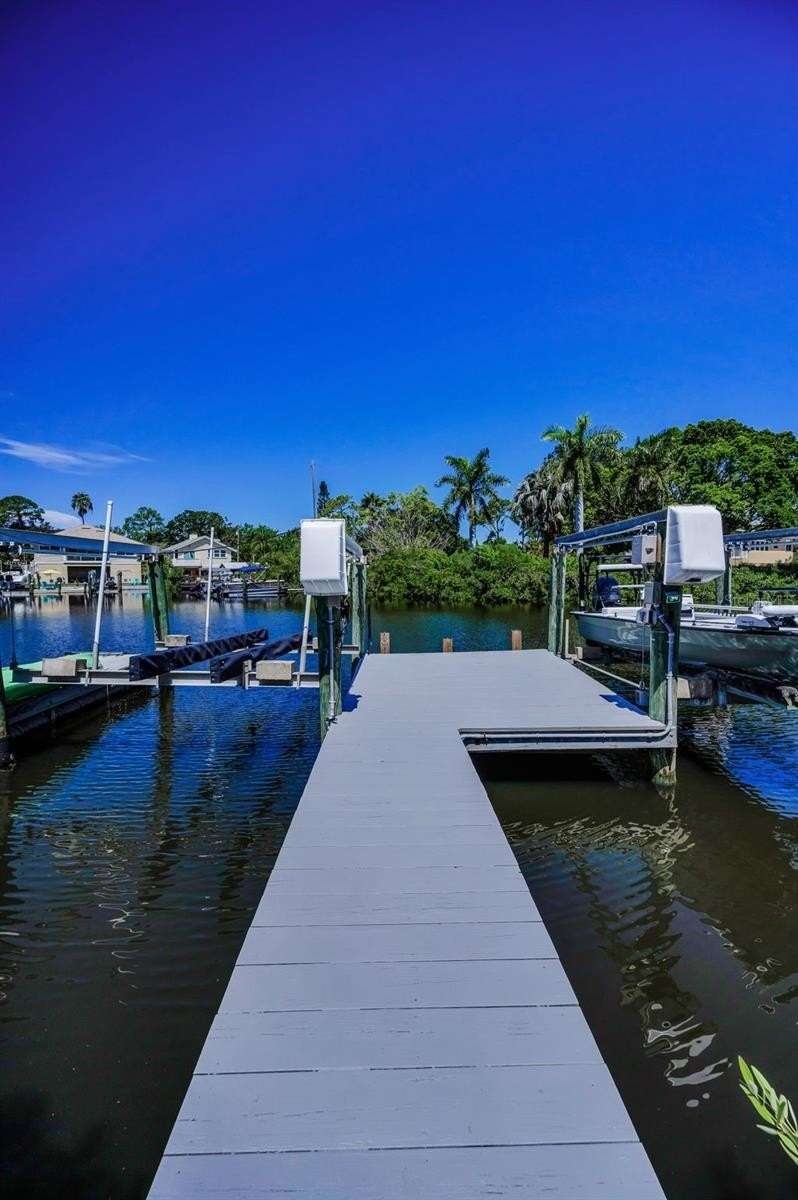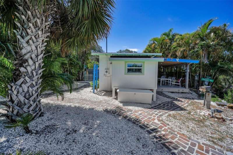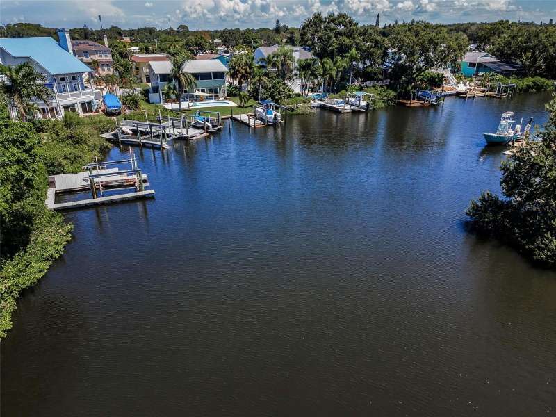 Your Opportunity Awaits! BOATER’S PARADISE in Crystal Beach! Nestled on a little private corner lot along a deep-water canal, this one-of-a-kind coastal retreat offers direct access to the Intracoastal Waterway in just minutes. Designed for boating enthusiasts, the property features a secluded cottage-style boathouse with three slips—including two lifts / Verified minimun of 10,000 LB LIFTS (with a GALVANIZED I BEAM) along with a commercial-grade aluminum floating dock. The charm begins outside with tropical xeriscape landscaping, vintage Augusta brick paver walkways, and a fenced yard accented by nautical details, boat lights, and decorations. Inside, the cheerful cottage showcases high ceilings, water-resistant luxury vinyl flooring, plantation shutters, ceiling fan, nautical lighting and double glass doors opening to the large covered patio and boat slips. A cozy kitchenette provides space for a refrigerator and includes a microwave, while the queen-size bed nook, marble shower, and tankless water heater add comfort and convenience. Outdoor living shines with a large covered porch, washer/dryer hookup, an outdoor shower with hot and cold water, and a custom chiminea fire pit with hammock for the ultimate laid-back lifestyle. Watch the dolphins & manatees come in to play! All kinds of native fish & birds, too! Additional highlights include impact windows and doors, foam-insulated roof, security system with 6 cameras, plus roof and A/C replaced about 8 years ago.This hidden gem is the perfect blend of old Florida charm and modern amenities—a rare affordable opportunity to truly live the beach and boating life and own this unique boat house!