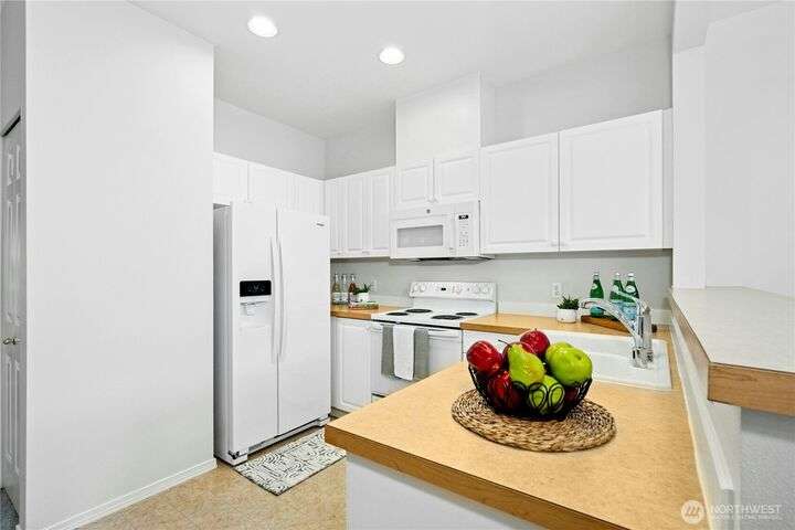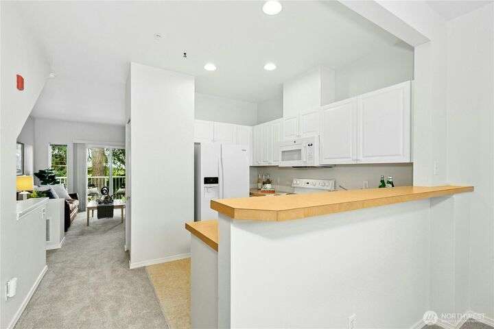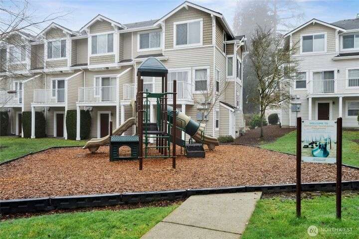 New Price! Seller is offering credits toward buyer’s closing costs—plus more available through preferred lender. Located near The Village at Totem Lake, with parks and trails nearby. Fresh paint and new carpet throughout. Main floor features a bright living room with gas fireplace, sunny deck, updated kitchen with new dishwasher and microwave, breakfast bar, and dining area. Upstairs: spacious primary suite, 2nd bedroom, full bath, and stackable washer/dryer. Tandem 2-car garage with extra storage and patio. Community amenities include clubhouse, gym, EV charging, and no rental cap!