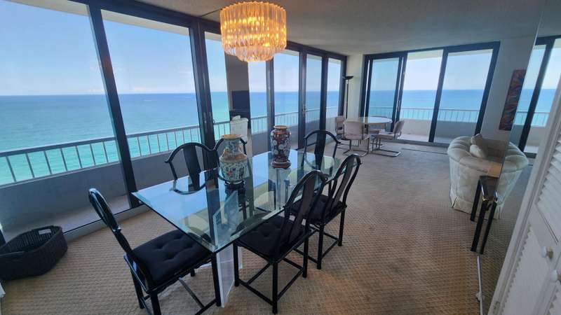 Immaculate 24th floor direct oceanfront 2 bedroom condo w/stunning views thur floor-to-ceiling sliders. Very quiet, only 4 units per floor. Large rooms, split floor plan, spacious living areas, abundant natural light. Guest room has 2 king beds. Nicely remodeled modern lobby. Community has 24 hr manned gate access, pool, tennis courts, fitness center, private beach access, shuffle board, putting green & on-site management. Desirable ocean to Intracoastal location close to PGA, Phil Foster Park, Gardens Mall, fine dining, & boutique shopping Embrace the vibrant culture & outdoor adventures making every day feel like a vacation. 1 assigned parking spot, no pets