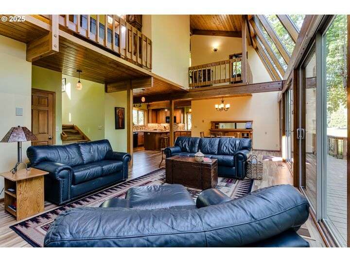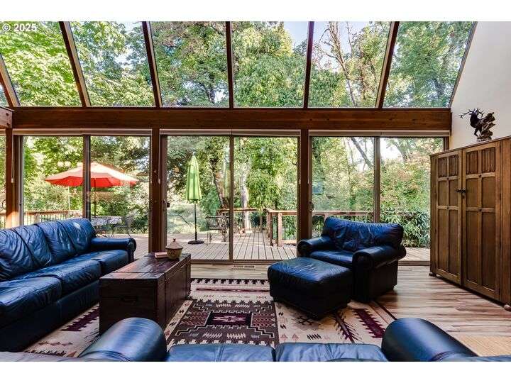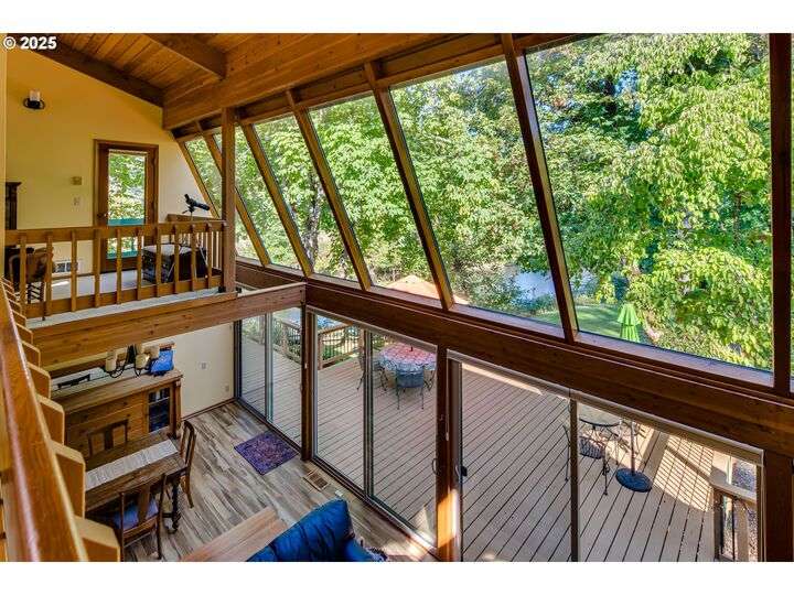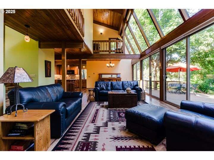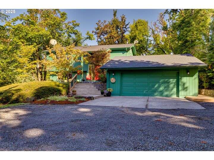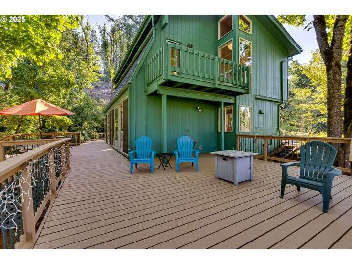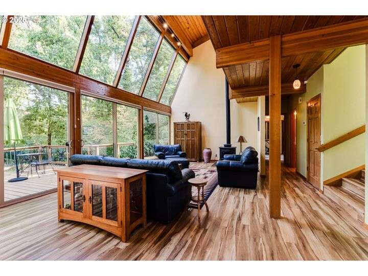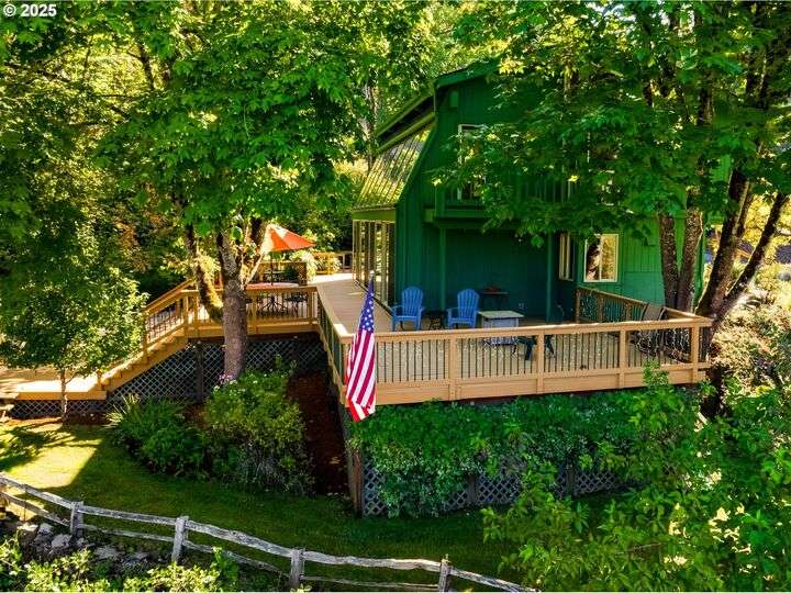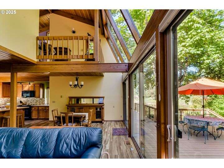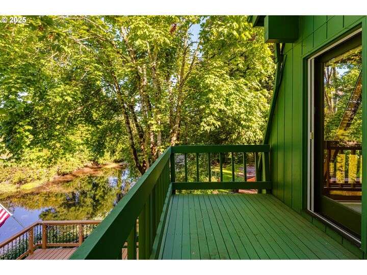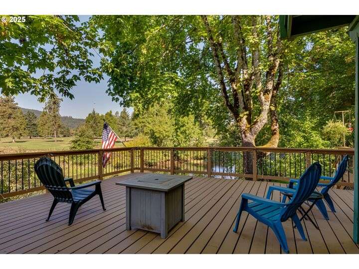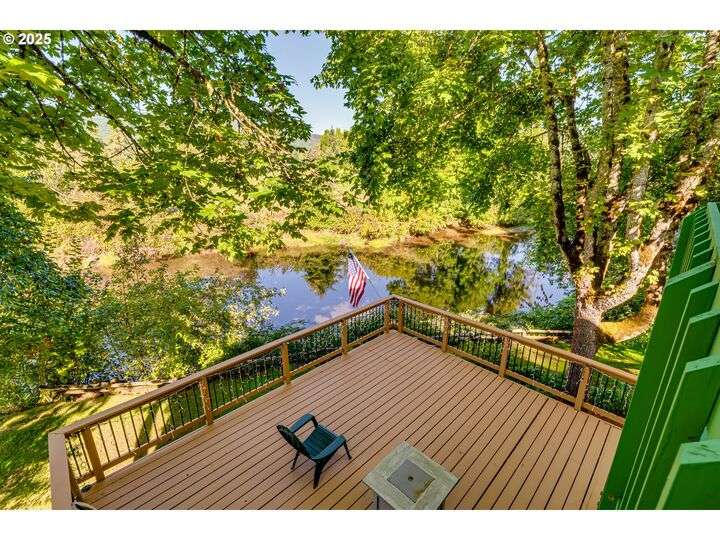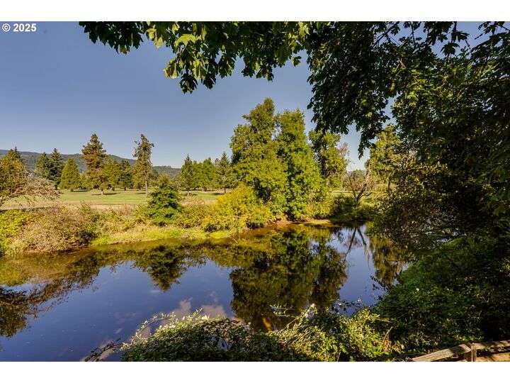 Welcome to your private riverfront retreat—quiet, serene, and beautifully remodeled. A dramatic wall of windows frames sweeping views of the river and golf course, while expansive decks and a balcony off the primary suite invite you to fully savor the outdoors. Picture quiet evenings overlooking the river and watching golfers in the distance. Inside, recent updates include a refreshed kitchen and spa-like primary bath with heated floors, newer roof, foundation stabilization, added insulation, and a new heat pump for year-round comfort. Set on 2.27 acres with raised beds and endless potential, this property offers room to garden, play, or simply breathe. Just 15 minutes from downtown Springfield and 20 from Eugene, it’s the perfect blend of peaceful seclusion and city convenience.