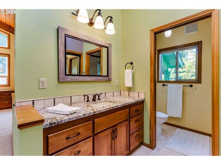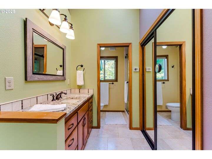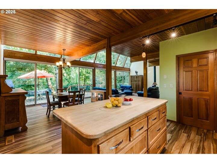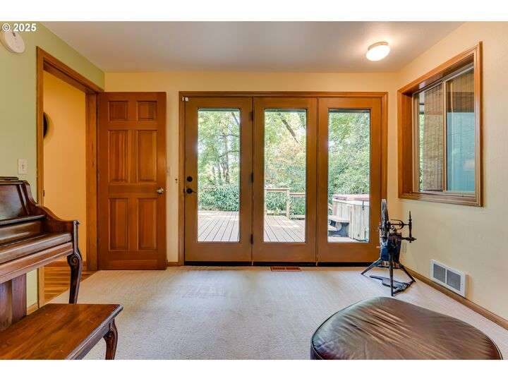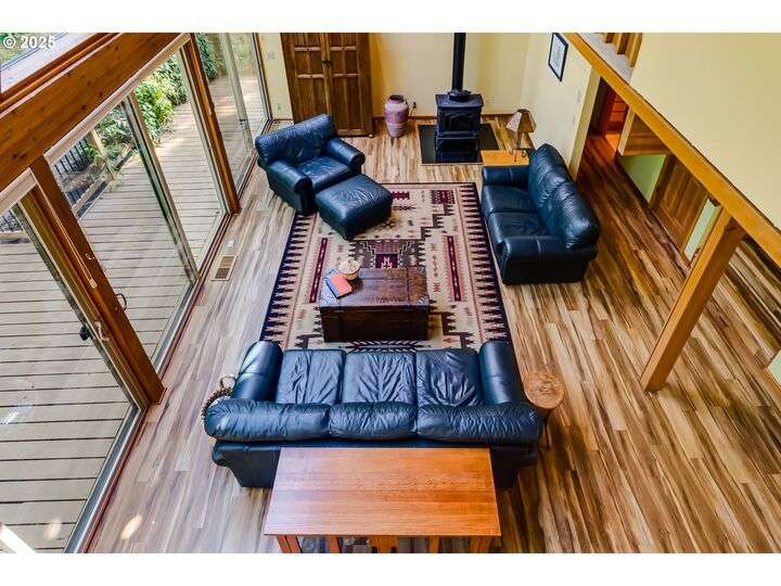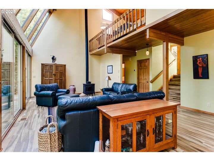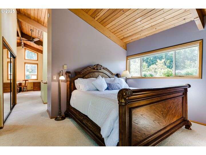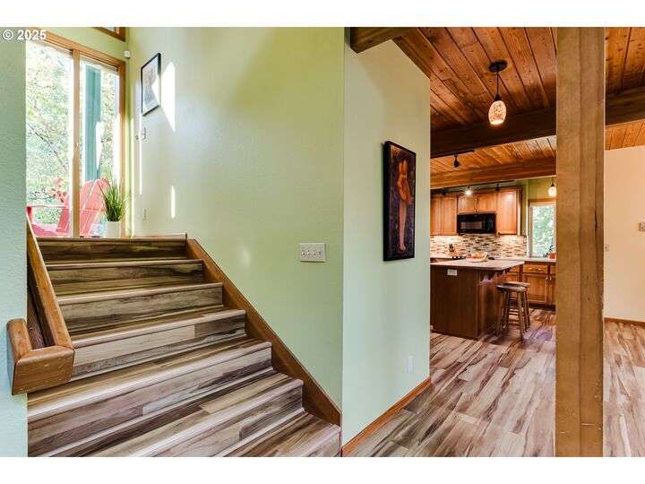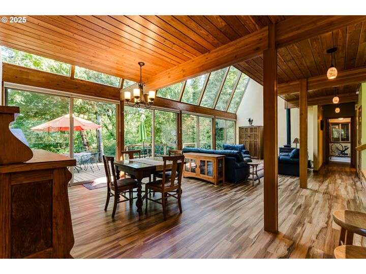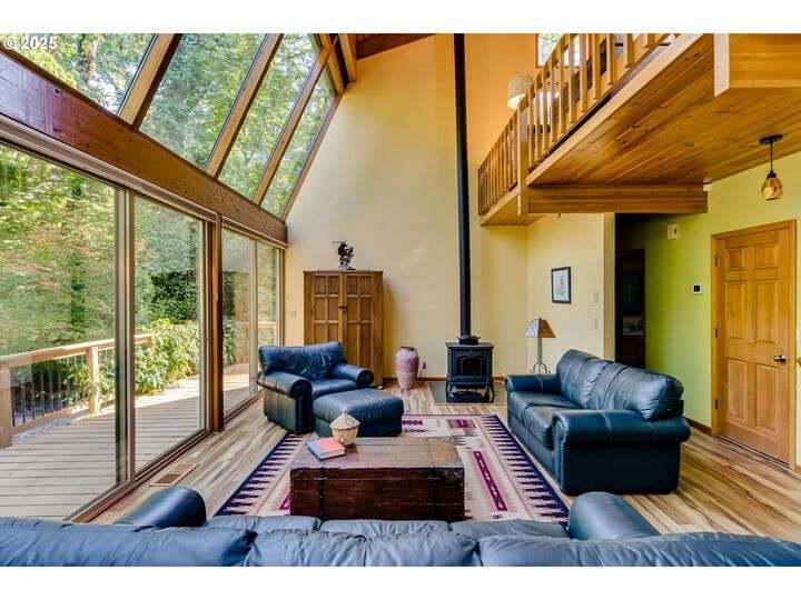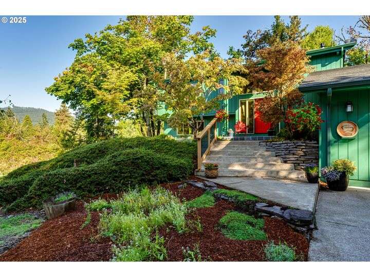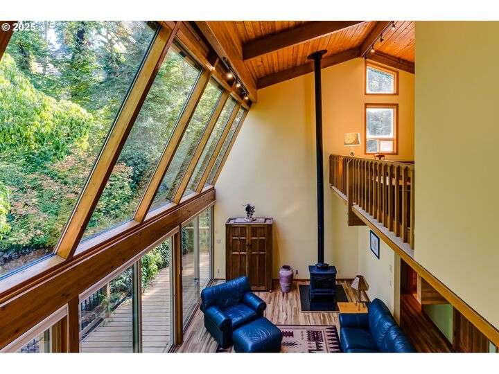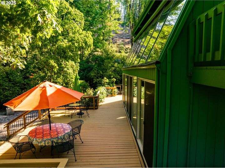 Welcome to your private riverfront retreat—quiet, serene, and beautifully remodeled. A dramatic wall of windows frames sweeping views of the river and golf course, while expansive decks and a balcony off the primary suite invite you to fully savor the outdoors. Picture quiet evenings overlooking the river and watching golfers in the distance. Inside, recent updates include a refreshed kitchen and spa-like primary bath with heated floors, newer roof, foundation stabilization, added insulation, and a new heat pump for year-round comfort. Set on 2.27 acres with raised beds and endless potential, this property offers room to garden, play, or simply breathe. Just 15 minutes from downtown Springfield and 20 from Eugene, it’s the perfect blend of peaceful seclusion and city convenience.