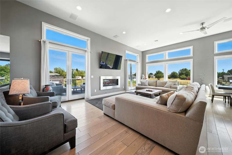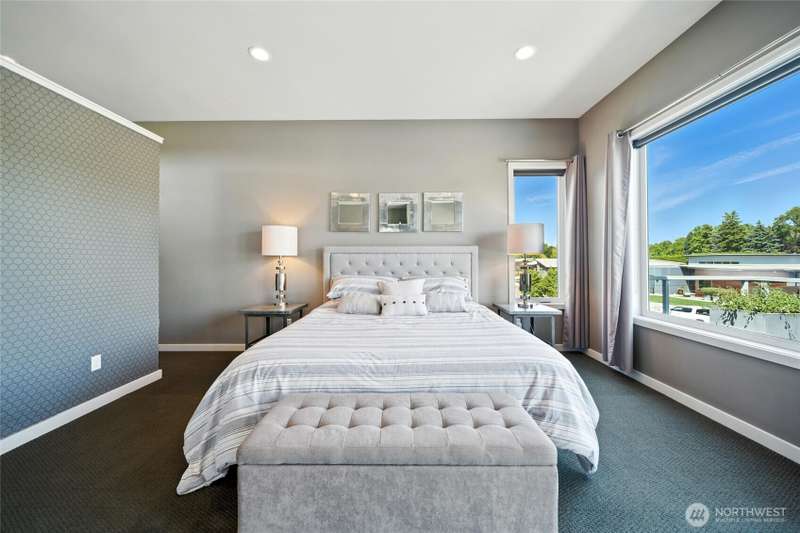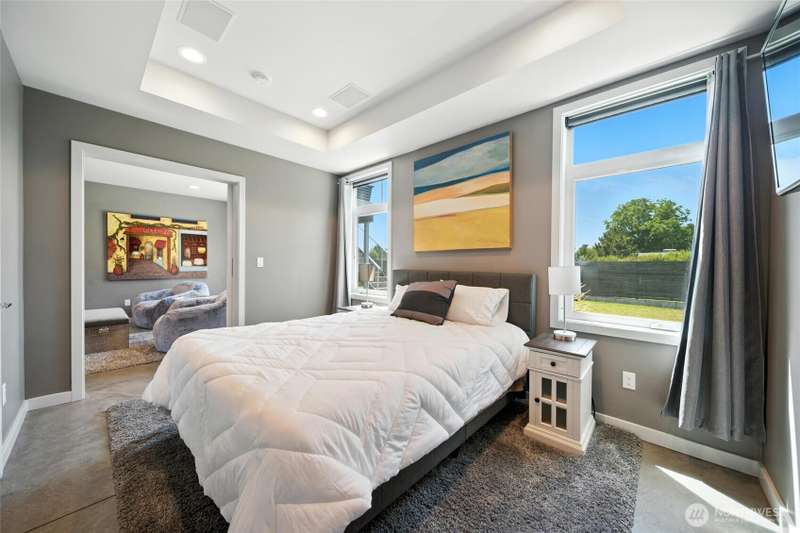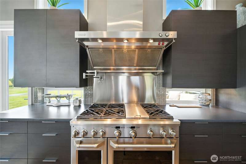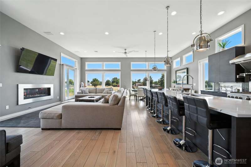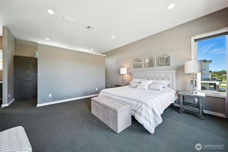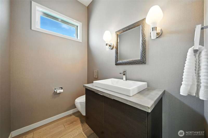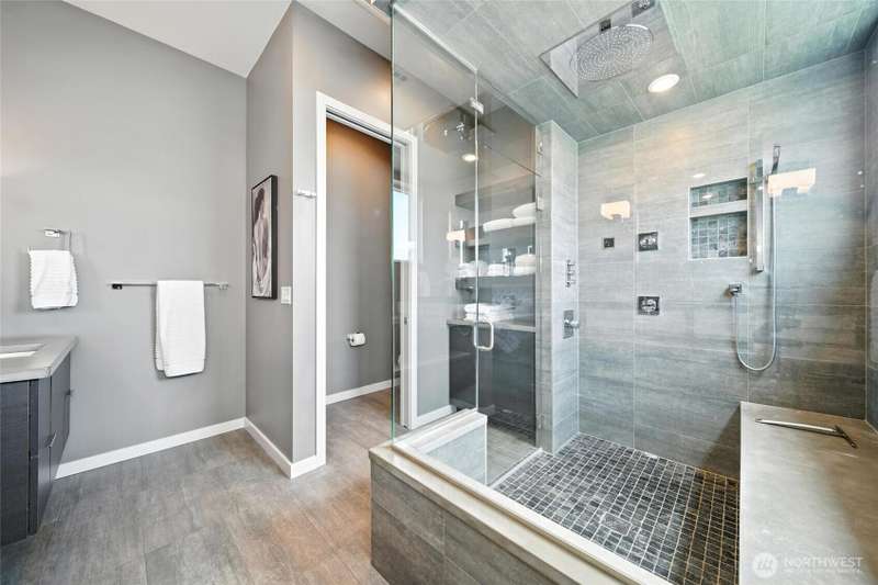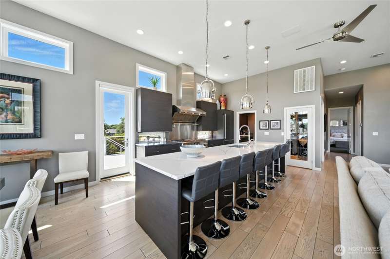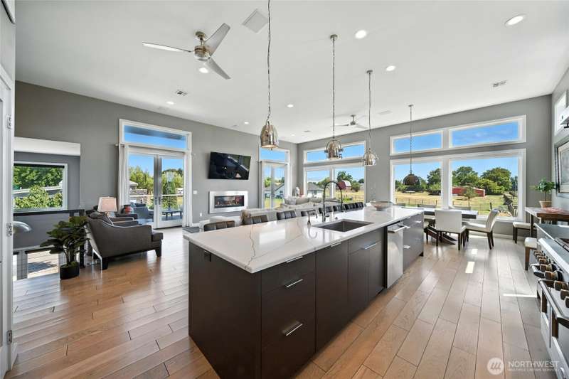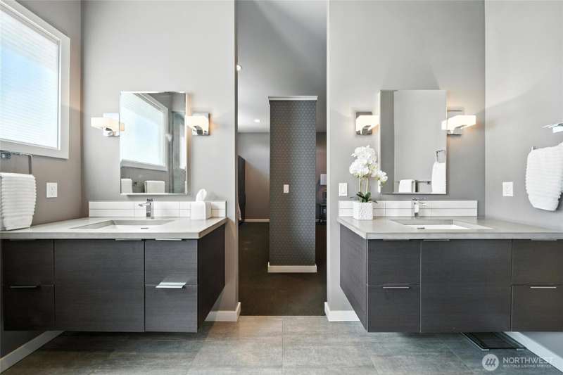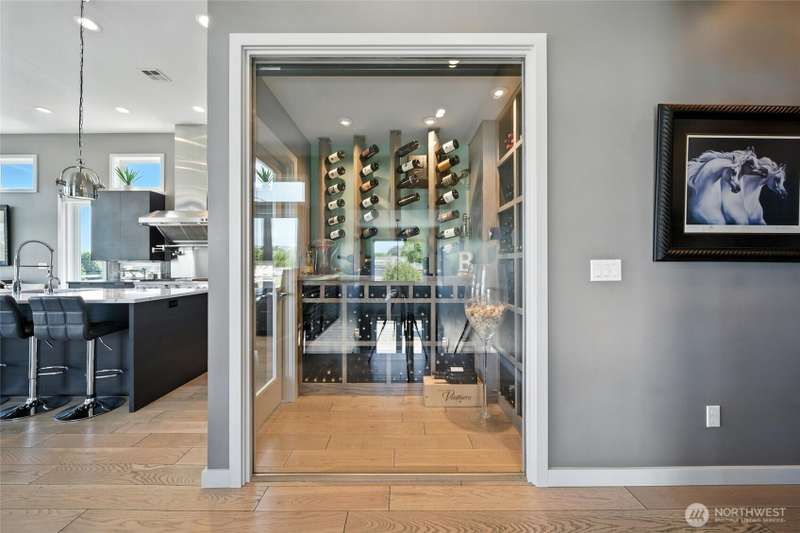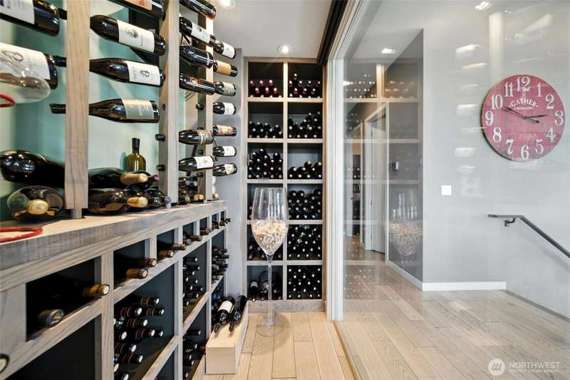 Sleek, modern design and sweeping Blue Mountain views define this stunning home. The open floor plan features a floating staircase and glass-enclosed wine room as a striking focal point. A chef’s kitchen impresses with an oversized island, premium appliances, and butler’s pantry with wet bar. The great room is filled with light and opens to expansive balconies perfect for entertaining. The luxurious primary suite offers a spa-like bath, walk-through closet, and private balcony. Downstairs, enjoy two ensuite bedrooms, office, den, and patios each floor has its own full laundry room. Set on a quiet street of distinctive contemporary homes.