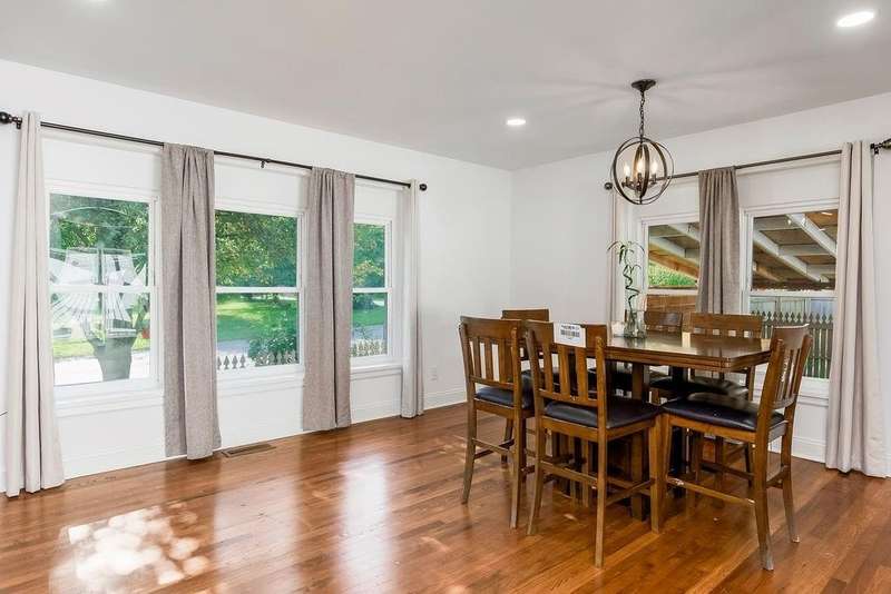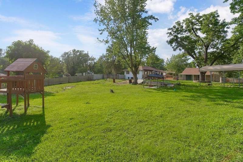 This beautifully updated ranch-style home sits on close to an acre and delivers a private outdoor retreat ideal for entertaining, hobbies, and everyday living. A set of double ranch-style doors opens directly to the backyard oasis, featuring a stamped-concrete patio with an outdoor cooking and seating area, plus a dedicated workshop space — all within a fully fenced yard. Inside, the home features a modern gourmet kitchen, seamlessly connected to the dining and living areas for an inviting open-concept layout—perfect for everyday living and entertaining. The main level includes two bedrooms, including a primary suite with an impressive 10×10 walk-in closet. The finished lower level adds two more bedrooms and a huge entertainment area for versatile use. Thoughtfully updated with quality and care throughout, this home offers space, style, and a rare outdoor setting you won’t want to miss.