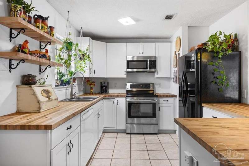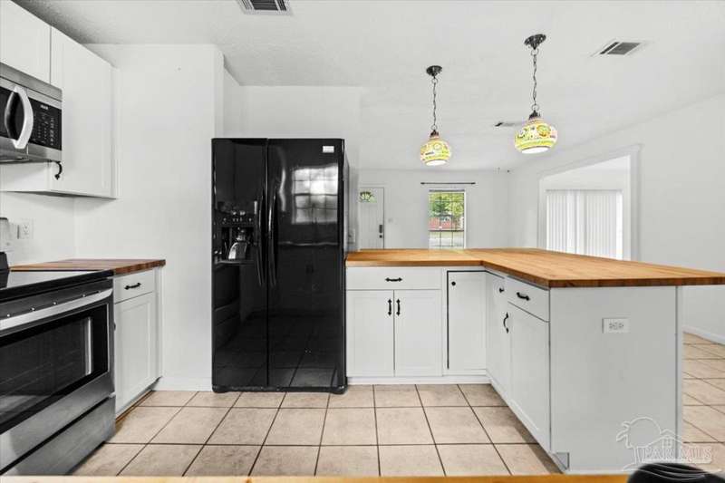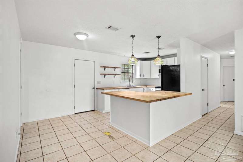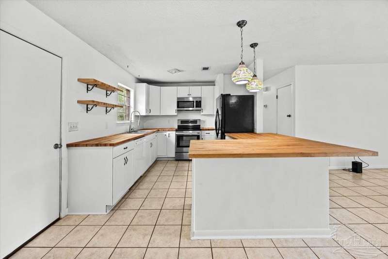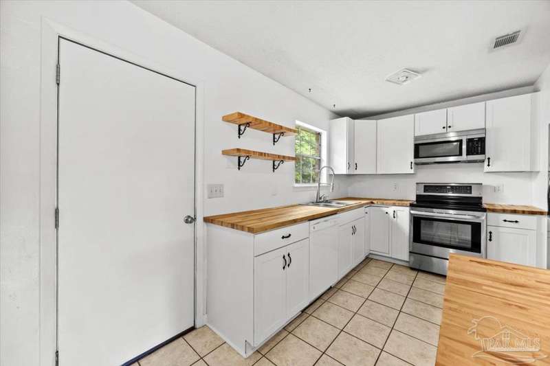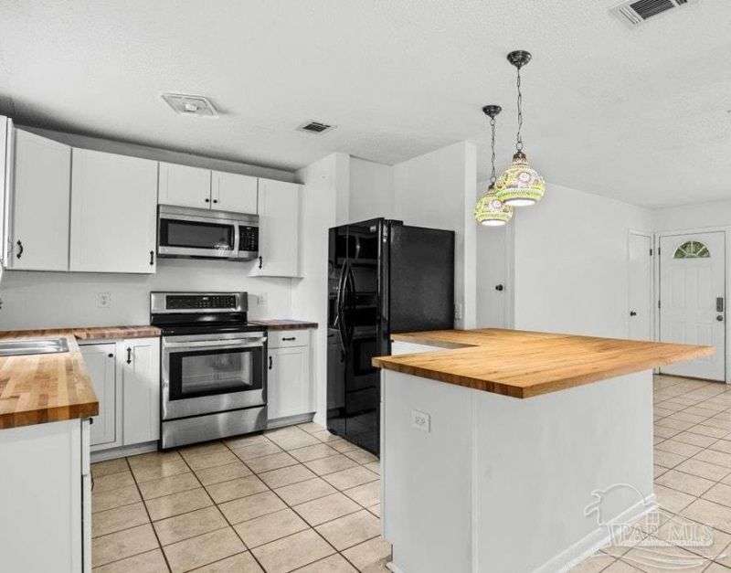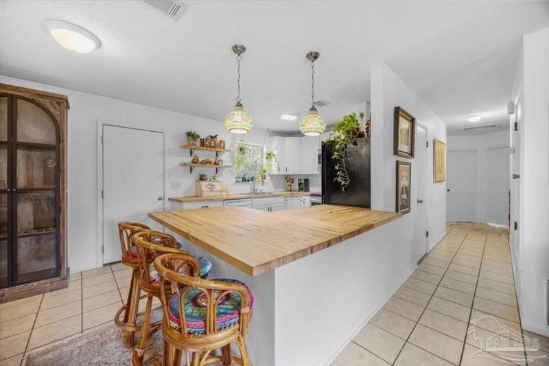Charming one-story brick ranch with a fully fenced backyard, offering both privacy and low-maintenance living. In 2022, the kitchen was beautifully remodeled with new shaker cabinets, open shelving, stainless steel appliances, and warm butcher block counters. The primary half bath has plenty of space to add a shower for a convenient full bath conversion. Perfect for first-time buyers or investors-both short-term and long-term rentals are allowed. No carpet in home, tile in the living areas and luxury vinyl plank in the bedrooms. Additional features include an oversized laundry room with pantry storage, a new roof (2022), new HVAC (2020), and a 2015 water heater. Located in the sought-after Gulf Breeze school district-Gulf Breeze Elementary, Middle, and High. Enjoy being close to shopping, hospitals, and just 7 miles from the emerald waters and sugar-white sands of Pensacola Beach. Flood insurance is not required. Please make an appointment to view today!