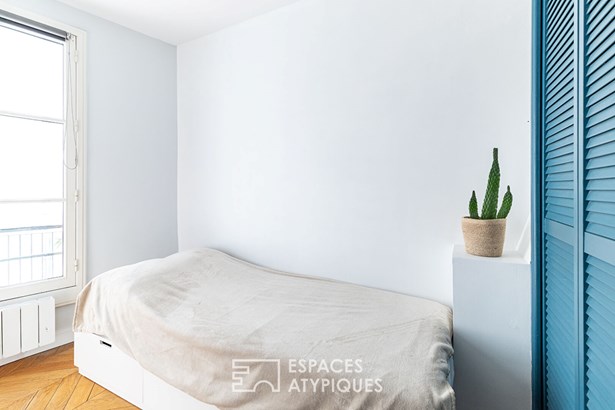 A bright, warm and resolutely Parisian place to live, in a building on a human scale, in the heart of a dynamic, well-served and booming neighborhood.