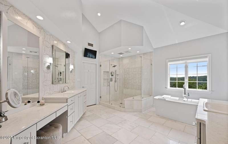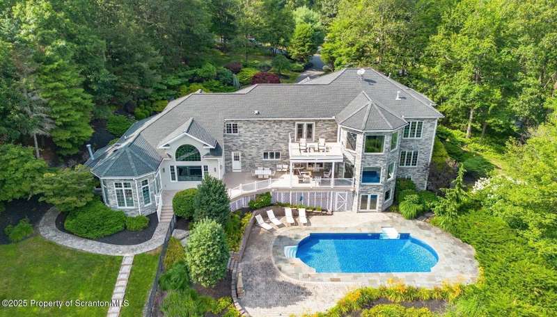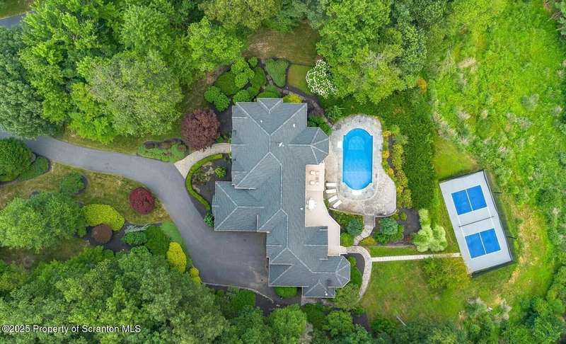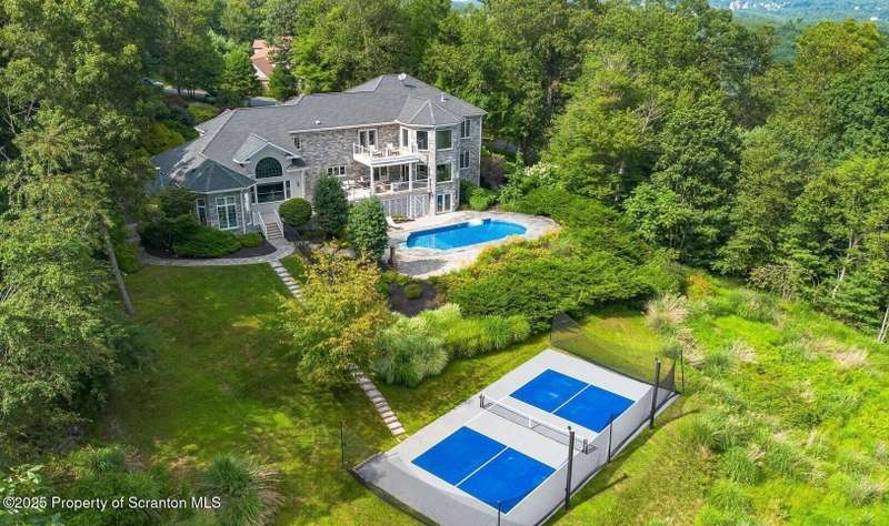 Perched above the hills of Northeastern, PA in Woodridge, this custom estate offers extraordinary year-round views and luxury amenities. 5BR/5BA, 5,700+ sq. ft. plus 1,700 sq. ft. finished walk-out lower level with second kitchen, family room, full gym, and bath. Guest suite, recreation room with bar, sunroom, stunning pool & decking, pickleball court. Privacy, elegance, and lifestyle in one