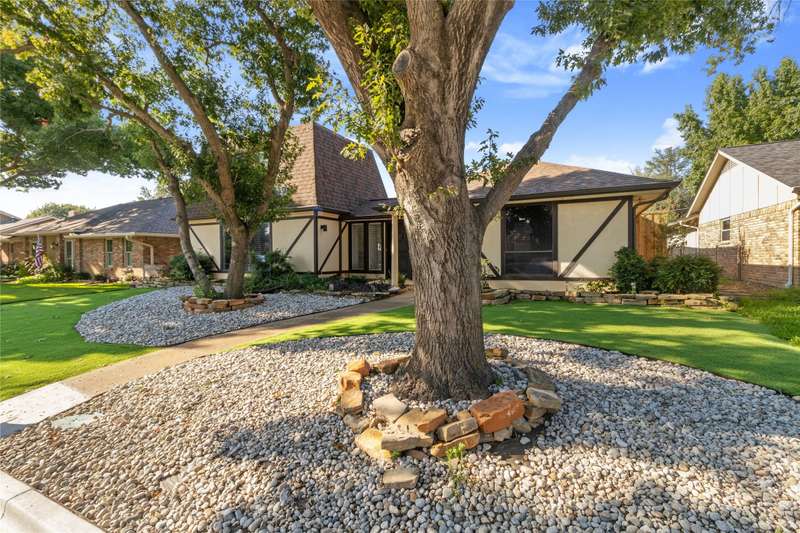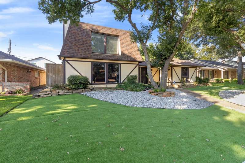 Turn tardy into PARTY with this fantastic three bedroom home with close proximity to Moss Haven elementary. Perfectly located near parks, schools, restaurants and transportation in Lake Highlands. You are greeted with a beautiful, low maintenance synthetic turf front yard. The home is crisp and clean in it's appearance with modern color palate and many windows allowing for great natural light. The swimming pool has been completely refurbished, making you the royalty of outdoor entertaining, or just happy folks relaxing by the water. The architectural style of this home is tudor - revival. The decorative dark wood trim set against light stucco panels on the front faade is a hallmark of Tudor Revival design. This home has been upgraded to improve home owner experience with fresh paint, new fence, low maintenance landscaping including turf and rock, seamless gutters, soaking tub in master and marble shower rooms, and improved and garage surfacing.