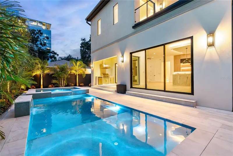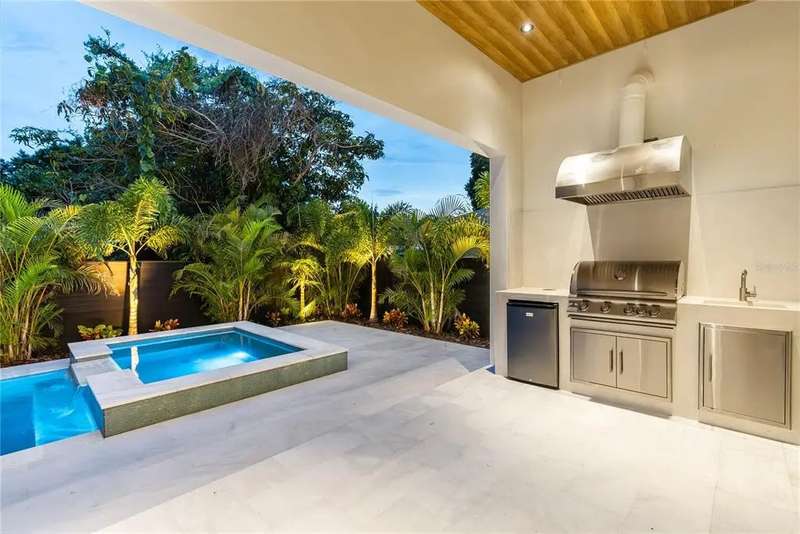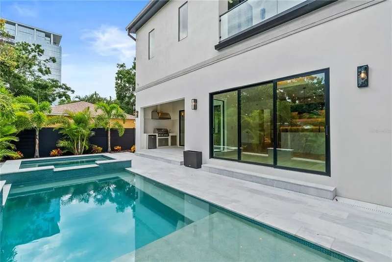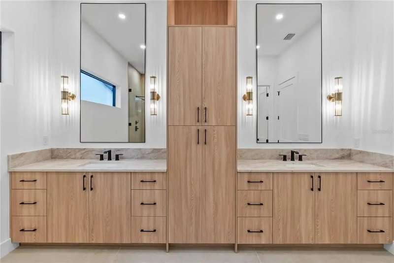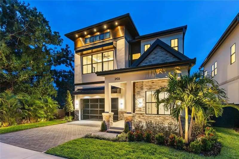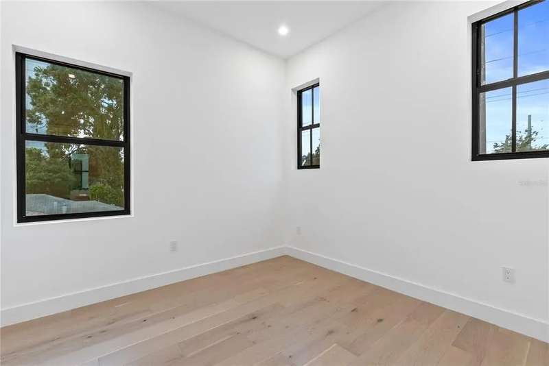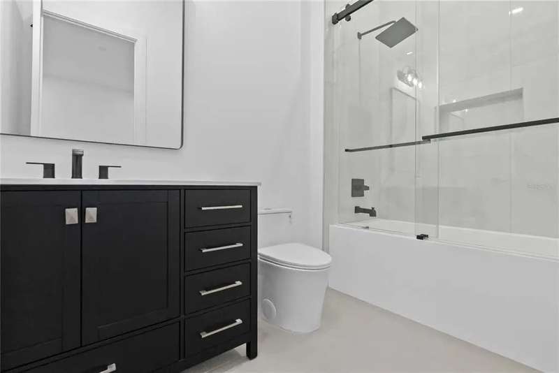 Welcome to this design-forward masterpiece where farmhouse charm meets sleek contemporary design in the heart of Midtown. This brand new 5-bedroom, 5.5-bath home spans 3,420 square feet of elevated living, expertly crafted with luxury finishes and thoughtful functionality throughout — and best of all, not located in a flood zone. Inside, smooth Level 4 walls and engineered oak hardwood floors create a refined, minimalist backdrop. The open-concept great room features a statement fireplace, flanked by designer sconces and bathed in natural light. The chef’s kitchen stuns with fluted black paneling on the island, custom white and black oak cabinetry, and striking pendant lighting — all seamlessly connected to the bar and pantry for effortless entertaining. Retreat upstairs to the second-floor primary suite, where spa-like serenity awaits with a freestanding tub, dual rain showerheads, a chandelier over the tub, and a white oak vanity layout accented by bold black plumbing fixtures.
