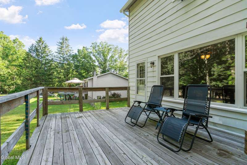 Now offered at a new lower price, this spacious family home is the perfect balance of updates already done and opportunities to make it your own. Major improvements-including a newer roof, windows, appliances, hot water heater, chimney insert, gutters, sump pump, ceiling fans, and updated electrical-provide peace of mind and long-term value. With the big-ticket items already taken care of, the reduced price leaves room in your budget to personalize cosmetic touches and updates to match your style. Located on a quiet dead-end street, the home features a cozy family room with a wood-burning fireplace, two closets in the primary bedroom, and plenty of storage throughout. Step out onto the back deck to enjoy the oversized yard with a stone wall and serene wooded backdrop. Don't miss this opportunity to own a home with both value and potential-schedule your showing today!