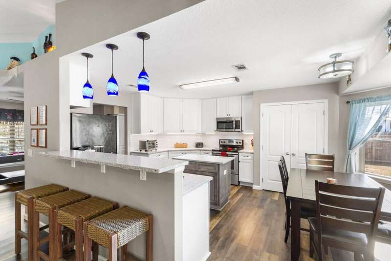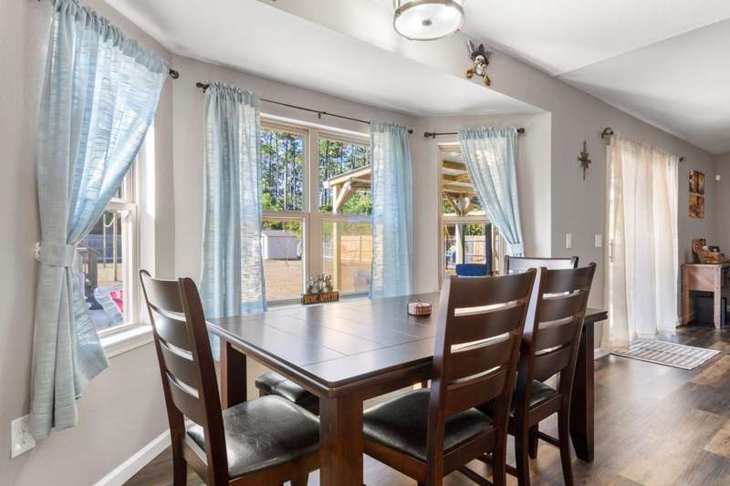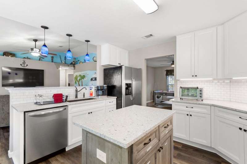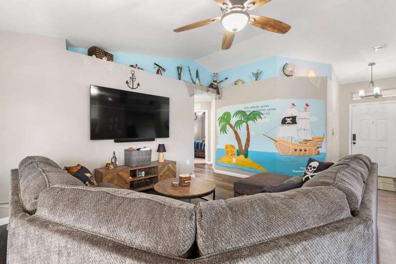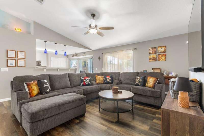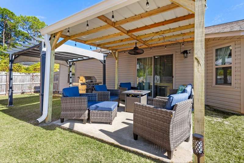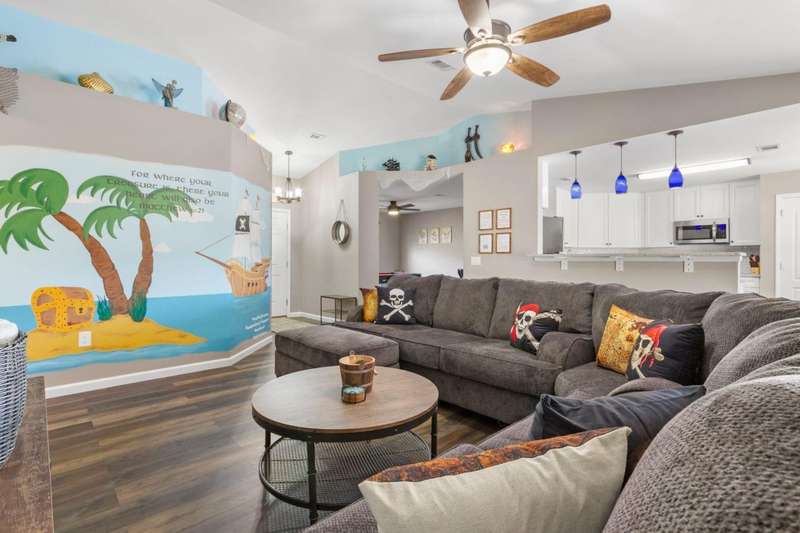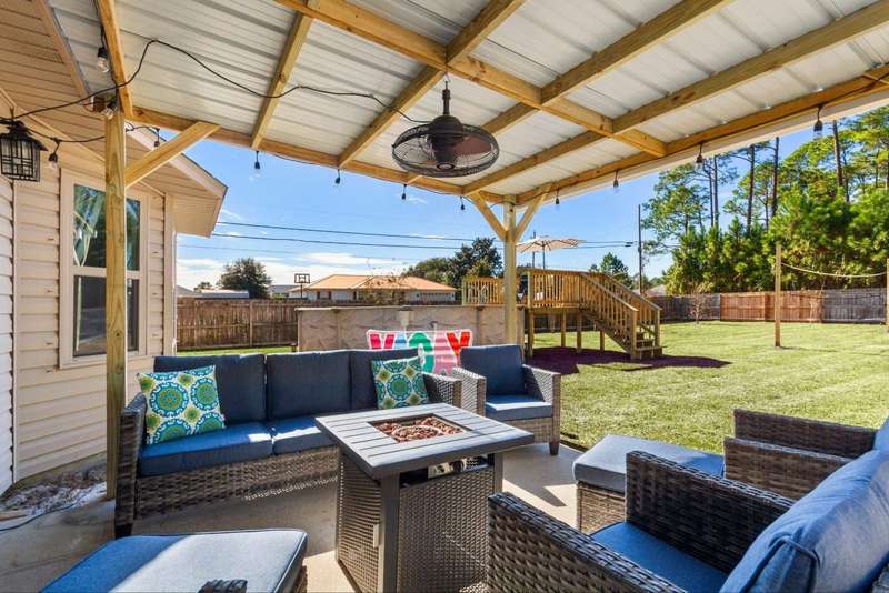 Beautifully maintained 4BR/2BA home in the heart of Navarre offering comfort, style, and convenience with NO HOA. The bright, airy kitchen showcases white cabinets, clean lines, and granite counters, opening to a cozy split floor plan with durable vinyl flooring and plush carpet in bedrooms. Currently a successful themed Airbnb, this property is ideal as a turnkey investment or move-in ready home. Outdoor living shines with nearly a half acre lot, an above-ground pool, swing set, patio and pavilion with a recently installed privacy fence. Perfectly located minutes from Navarre's beaches, I-10, shopping, dining, and Hurlburt Field, this immaculately maintained property presents an exceptional balance of convenience, potential, and location.