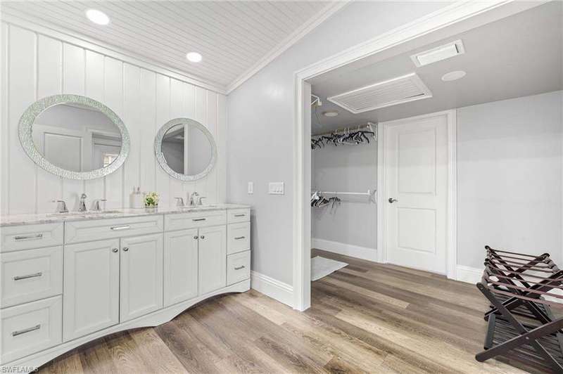 Discover your perfect oasis in this prime Marlin Drive location, just six lots from the beautiful Naples Bay. With a sun-drenched pool and highly coveted south-facing exposure, this property offers a luxurious and relaxing lifestyle. 15,000 on lift! Situated on a low-traffic street with easy access to Naples Bay, this home has been thoroughly updated in 2021 with a host of modern amenities. Upgrades include a new electrical panel, new AC unit, all new electric fixtures and switch plates, a fully renovated kitchen with stylish quartz countertops, induction flat surface stove top, new double oven and high-end appliances, including a large washer and dryer. Enjoy the convenience of new plumbing, a new hot water heater, fresh paint, crown molding, and custom wall woodwork including bead board ceilings. The property boasts a striking paver circular driveway and spacious outdoor living area with paver pool deck. The heated pool was resurfaced, with coping/edging and vibrant colored lighting. Boaters will love the quick, no-bridge access to the Gulf of Mexico, and the dock features new pilings, and new lift as of 2021. The interior of the property features modern design and decor throughout with beautiful white quartz countertops, modern white cabinetry, stainless appliances, and an open floor from the interior living to the outdoor living space Enjoy partial Bay views and marvel at sunsets or fireworks from Naples Pier during the Fourth of July. This is one of the last opportunities on Marlin Drive to own a south-facing lot with potential to build your dream home in the future. Ideally located just minutes from downtown 5th Avenue South and 3rd Street South's fine dining, world-class shopping, entertainment, and white sand beaches, this home offers the best of Naples living. Don't miss this chance to own a slice of paradise!