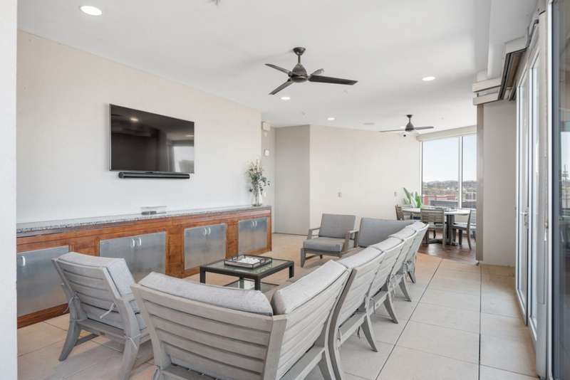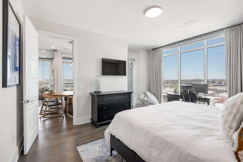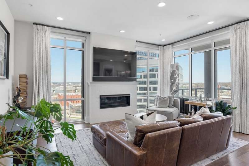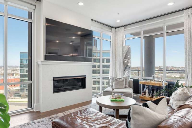 Luxury Amenities and unrivaled Convenience in the heart of downtown Nashville! Experience URBAN ELEGANCE at its finest in this exclusive boutique residence with only 71 units. Enjoy quiet sophistication with 24/7 monitored security, just steps from Broadway, Bridgestone Arena, Titan Stadium, and only 6.5 miles to the Airport. This stunning Corner Condo boasts Designer Finishes, Floor-to-Ceiling Windows, and a Private Balcony with breathtaking views of Music City and Ascend Amphitheater - offering a front-row seat to live performances. High-end features include a Sonos Sound System throughout, Wolf Appliances, Smart Lighting, Automatic Blinds, Gas Fireplace, Gated Parking (2 deeded spaces near elevator), and Climate Controlled Storage near owner's private entry. The office easily convert to a 4th bedroom. World-class amenities include 24/7 Concierge & Front Desk service, roof lop lounges with panoramic City & Cumberland River views, a pool, Dog Park, Fitness Center, Party Room with kitchen, fully equipped Guest Suite, and a Business Center with Conference Room. Furnishings optional.