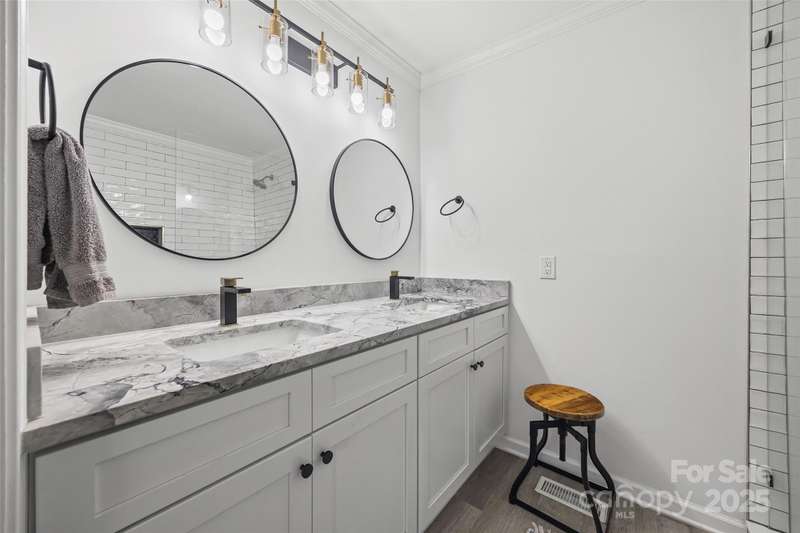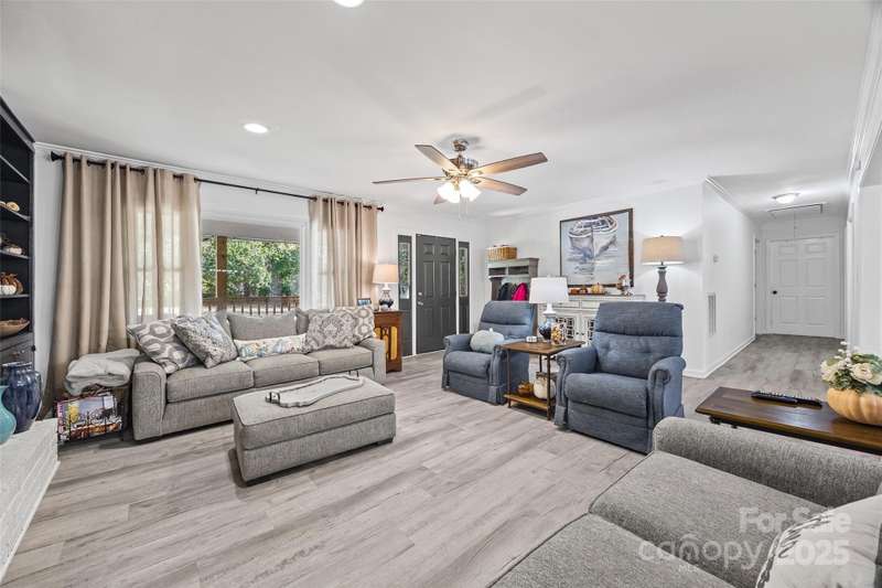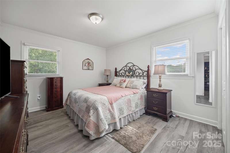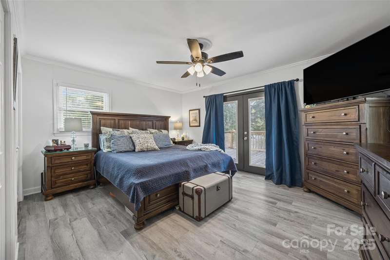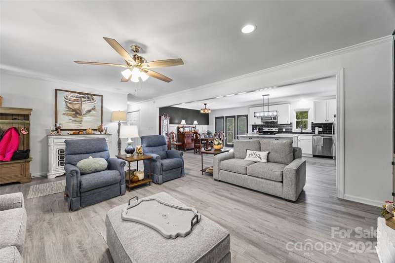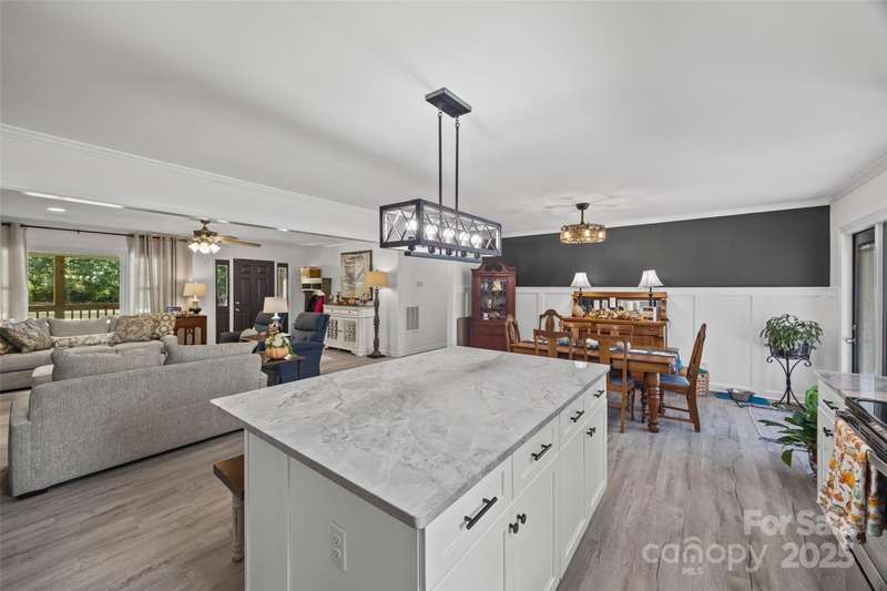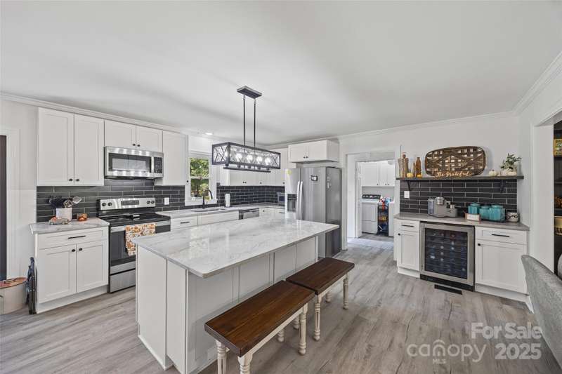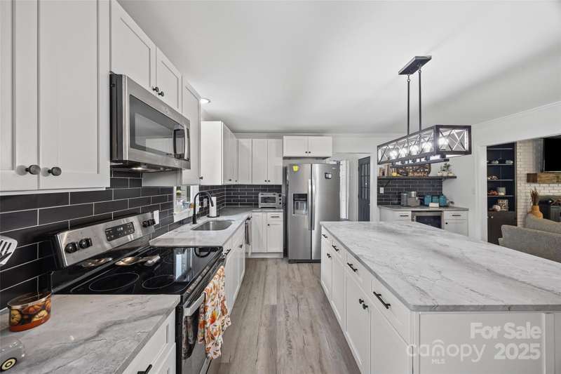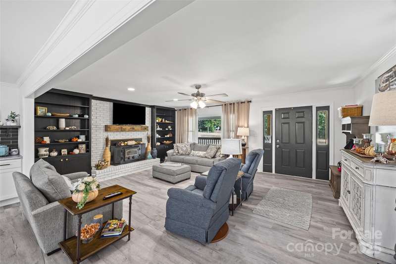 Beautifully painted brick home offering quiet water views & modern elegance! Fully remodeled with quartzite countertops, wine fridge, custom coffee bar, kitchen island. Appliances less than a year old. Spa inspired primary bath includes walk-in tiled shower; the guest bath features exquisite tiled tub. Recent upgrades include new flooring, vanities, lighting, gutters,12x40 deck and poured concrete front porch. HVAC 2023. Expansive deck perfect for entertaining, relaxing, or overlooking the lake! Modern touches everywhere! Beautiful landscape,1 car oversized garage & extra storage. A fully updated home sitting on 1.3 acres is Rare to find! No HOA, community well & County Taxes! Fireplace and wood stove convey as is.