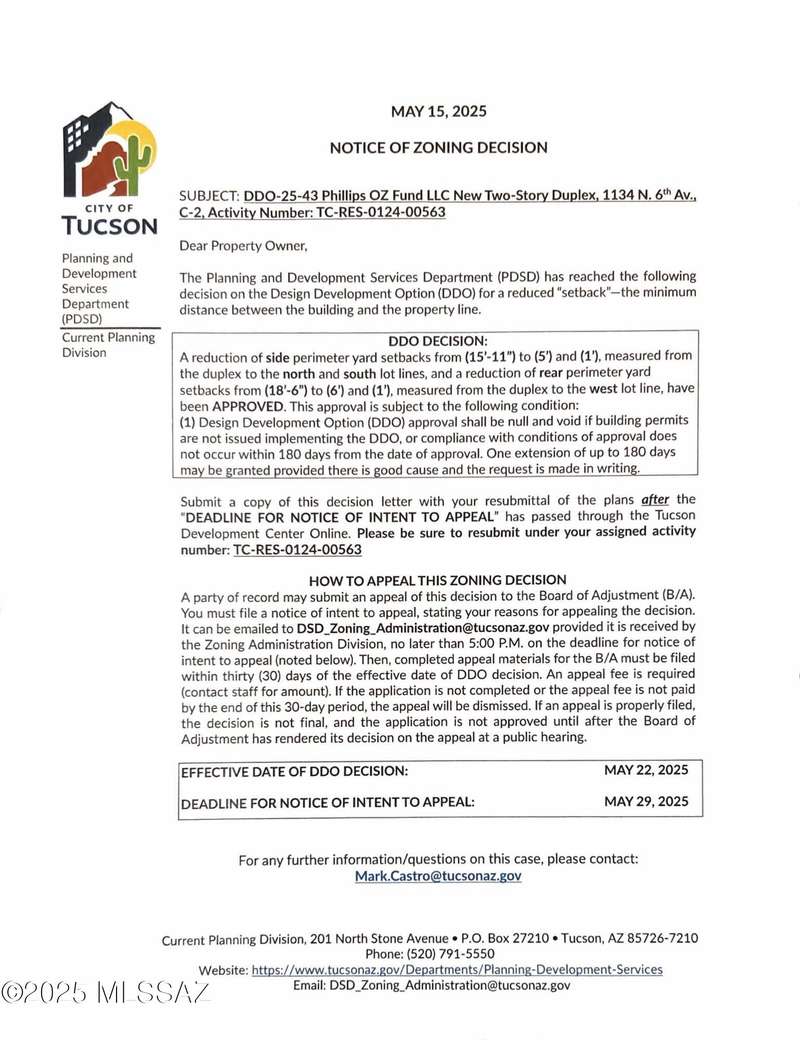 Rare C-2 zoned lot right behind the Starbucks on 6th/Speedway. Right next to Pima Community College and close to Downtown/U of A. Perfect to build a Duplex. See 6 bedroom duplex Floorplan/Elevation in Additional Docs.