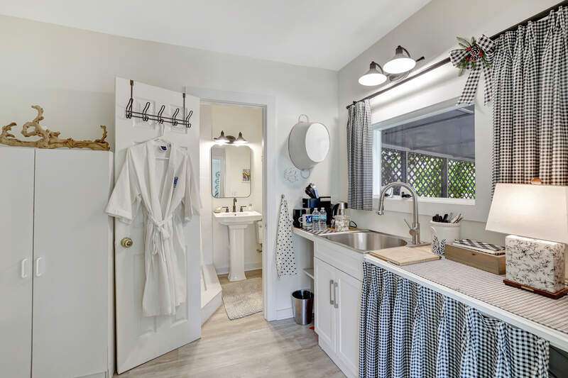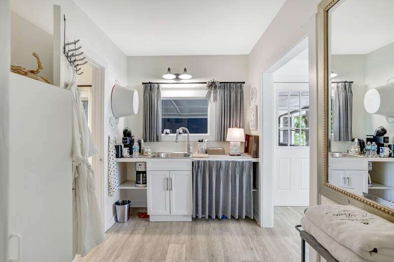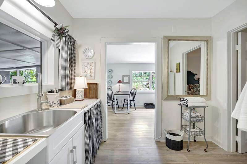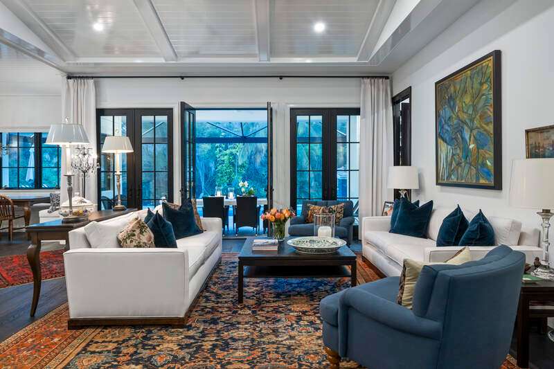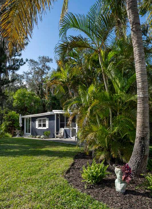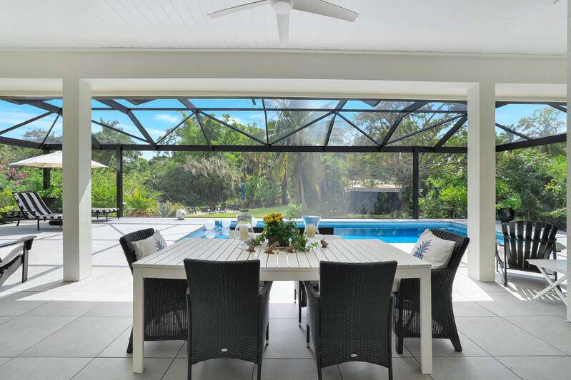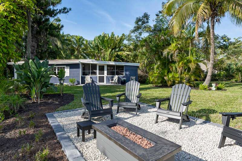 Tucked away in a serene, storybook setting along the Imperial River, this rare property offers a captivating blend of timeless Old Florida charm and elegant modern living. Built in 2023 by renowned Cotter Construction of Naples, the main residence sits on .51 acres and meets current building codes and flood elevation requirements. Also sharing the grounds is a delightful riverside bungalow, perfect as a guest house, studio, or private retreat. This one-of-a-kind location offers front-row views of manatees, dolphins, sea otters, and soft-shell turtles from the new Hardie Plank dock, and it's just a short stroll to the heart of Bonita Springs-where you'll find inviting restaurants and the laid-back ambiance of historic Florida. Featured in Gulfshore Life Magazine (November 2024), the main home showcases exceptional craftsmanship, high ceilings, and beautifully finished architectural details. A series of 9-foot French doors seamlessly connect expansive indoor living and dining spaces to a stunning "picture window" screened pool area-framing views of the lush landscape and the tranquil river beyond. At the heart of the home, a sophisticated chef's kitchen is equipped for entertaining, designed to complement the open-concept layout while offering both functionality and style. The private primary suite includes a spacious bedroom, luxurious bath, walk-in closet, and a charming window seat overlooking native flora and fauna. Separated for privacy one will find an inviting guest bedroom with ensuite bath, cozy den and lovely powder room. A large additional space is currently used as an art studio with a half bath-could easily be converted into another guest suite with full bath. The attached two-car garage includes generous storage to meet every need. Nestled closer to the water's edge under a canopy of trees draped in Spanish moss, the original cottage offers a quiet escape, with a living/dining area, bedroom, and full bath. This property is more than a home-it's an experience. Offering the peaceful beauty of riverfront living with the quality and comfort of modern construction, all just moments from the charm of downtown Bonita Springs. This is truly a place to slow down, unwind, and connect with nature in style.