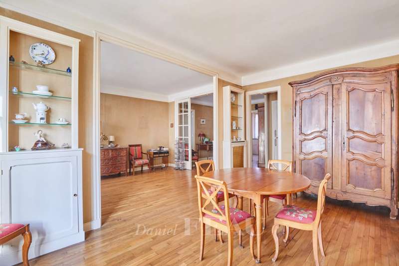 This dual-aspect apartment is on the 5th floor of a luxurious 1930s building with a caretaker located in the immediate vicinity of Porte de Saint-Cloud. Featuring high ceilings, it includes an entry with a cloakroom and study area, a bright double living/reception room, a separate kitchen, two bedrooms, a bathroom, a utility room and a guest wc. With a basement cellar. Renovation is required to exploit the full potential. An 8th floor studio apartment and a basement parking space may be acquired for 126000 and 42000€ respectively.