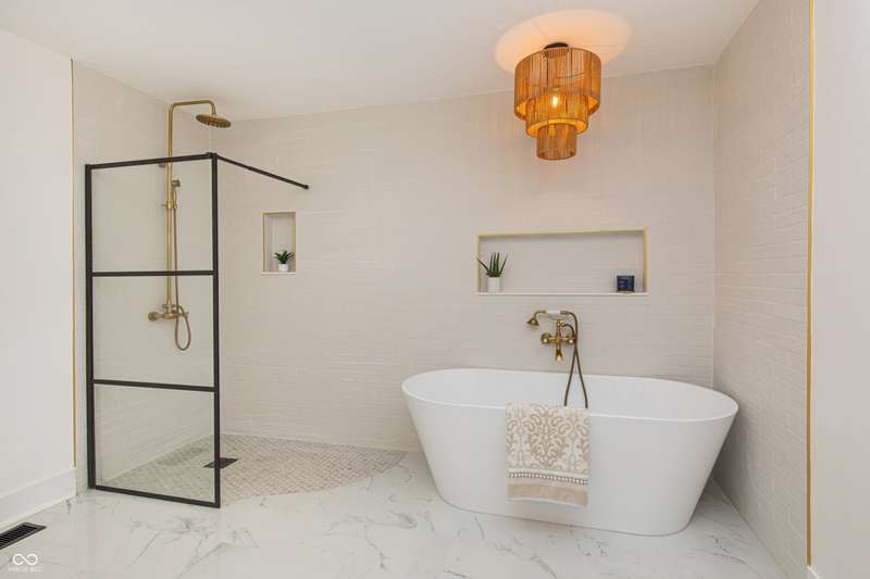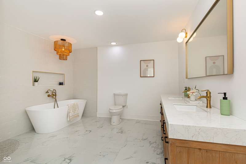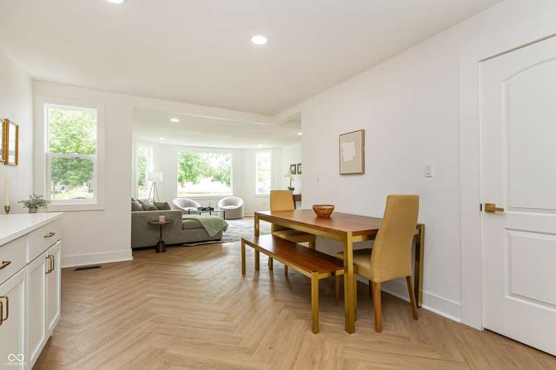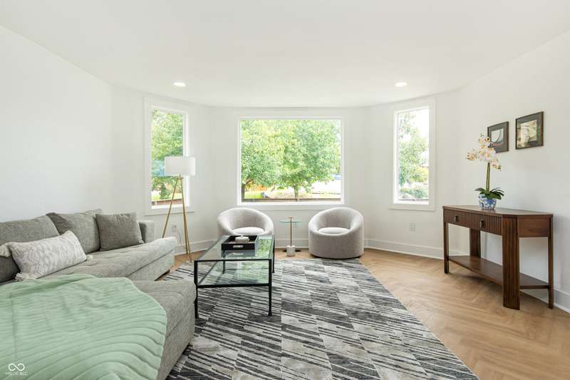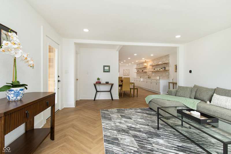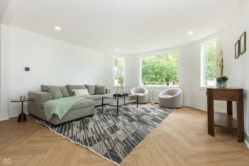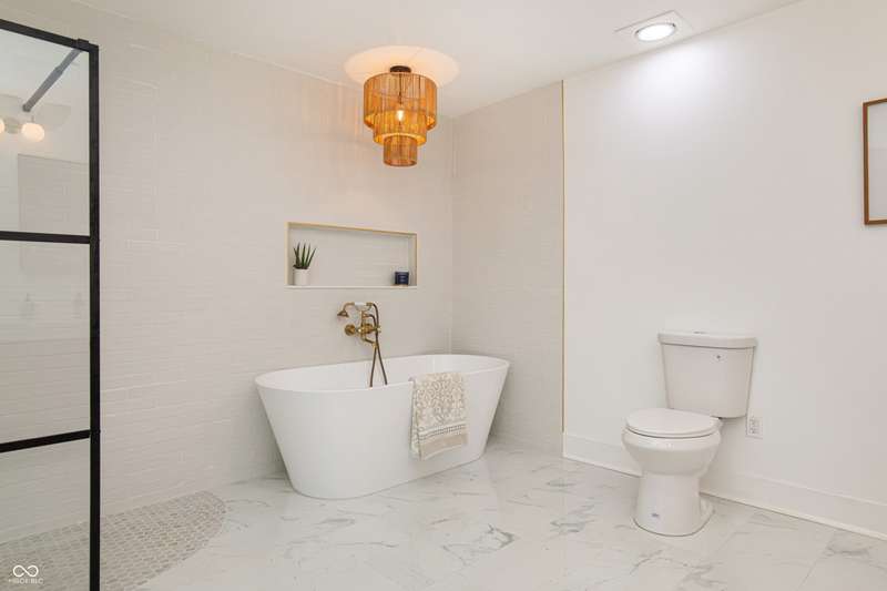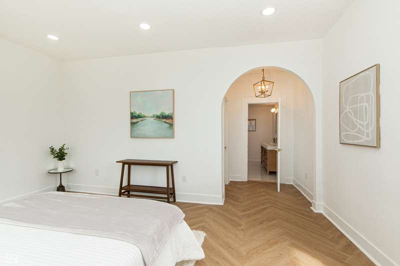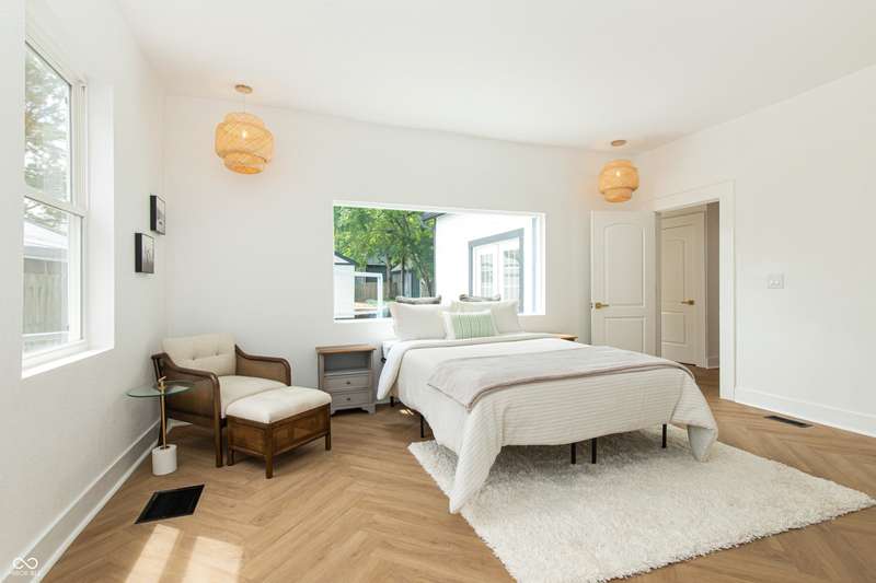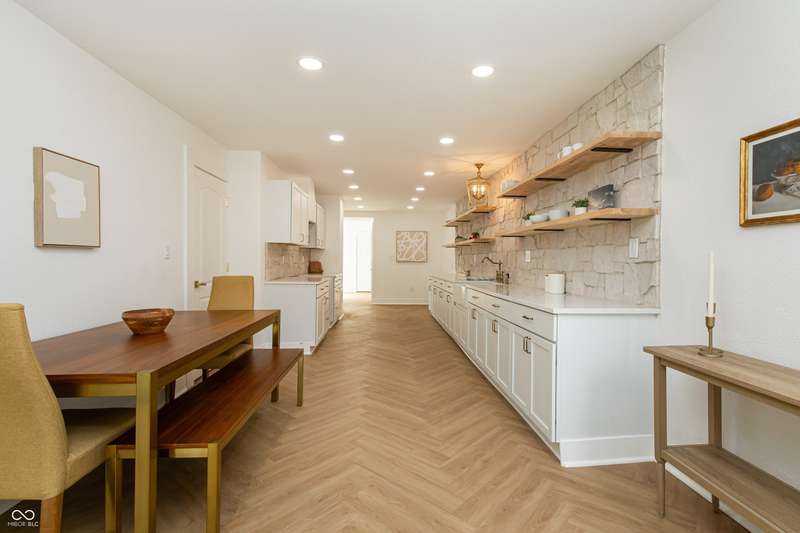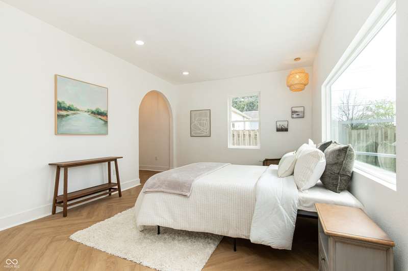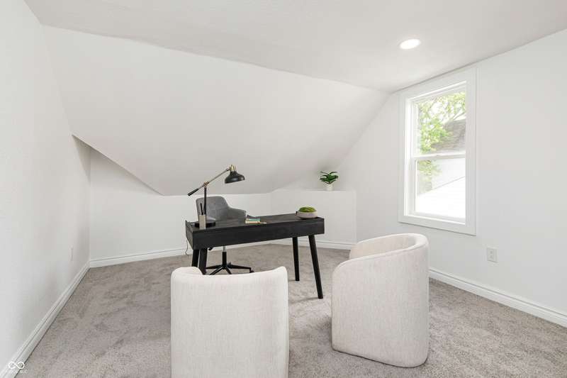 Welcome to 1026 This light-filled home blends modern updates with functional design. The open main level features a spacious living room with a new picture window, a dining area, and a kitchen with custom cabinetry, walk-in pantry, open shelving, stone backsplash, and pot filler. The main floor primary suite offers a walk-in closet and spa-style bath with soaking tub, rain shower, and dual vanity. A guest bath and laundry room complete the first floor. Upstairs, you'll find two bedrooms with loft spaces, a third full bathroom, and extra storage. Outside, enjoy a fenced front yard, one-car garage, and off-street parking. Located in a vibrant urban neighborhood just minutes from downtown Indianapolis.