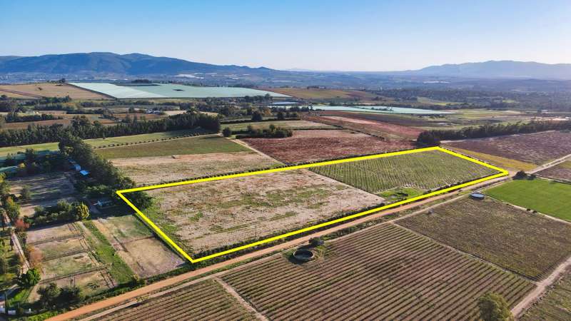Hidden gem with good location in a breathtaking valley A rare find in the Boland: vacant land in a sought after area, located in the very popular Wellington, with the most amazing views over the Hawequa mountains and valleys. Zoned as Agricultural Land, you will be allowed to build your dream house (maximum 500 sq) plus a manager's house of similar size and outdoor storage/workshop facility and a worker's cottage to enjoy a perfect country life style in the Cape Wine Lands. Press your own olive oil and make your own wine of origin on a small scale. It is also perfect for horses as there are many horse breeders in the Wellington area. • Size: 5,99 ha • Plante with olive trees and a selection of vines