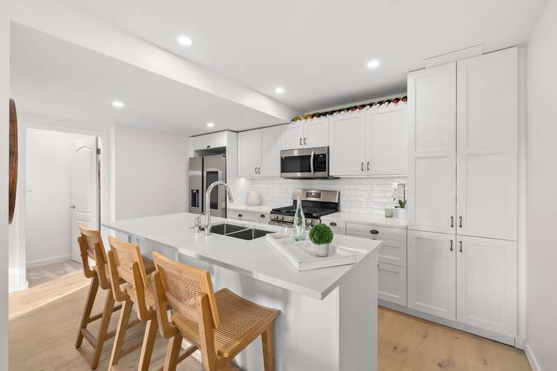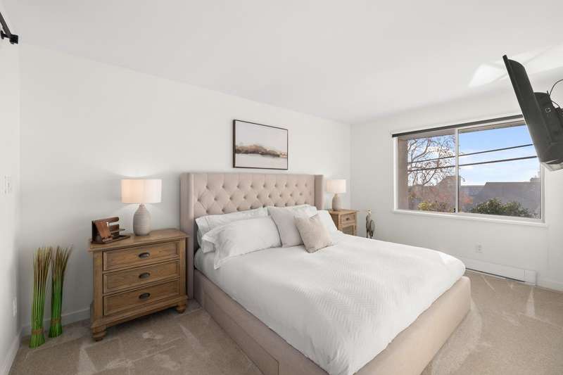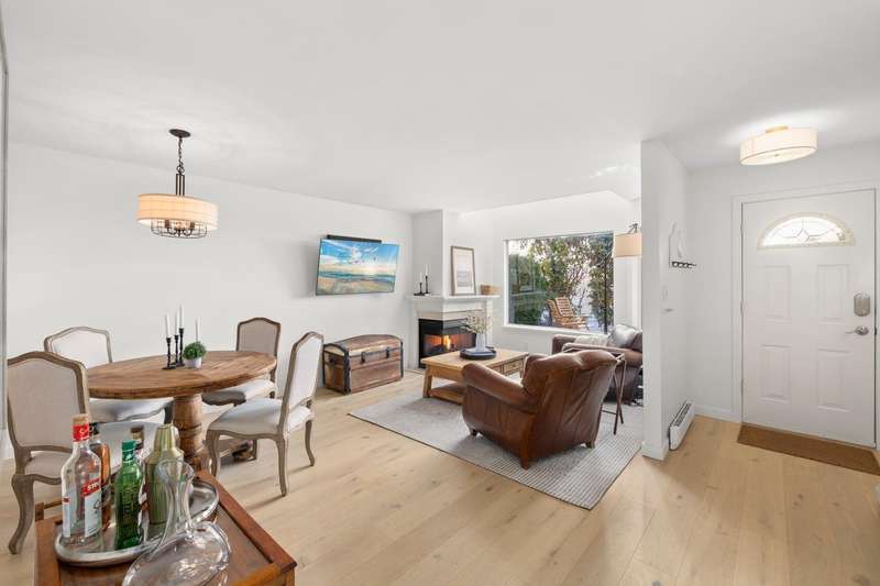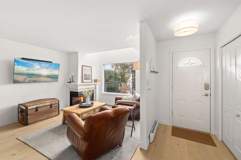 Located in the central White Rock, this 3 bedroom, 3 bathroom home has been completely renovated. Main floor features private entrance with south facing patio, bright new kitchen, new stainless appliances, quartz counters and a large island, wide plank hardwood flooring and cozy gas fireplace, perfect for entertaining. Both primary and 2nd bedrooms are on the upper floor with beautiful ocean views. Fully finished basement with third room, bathroom with walk-in shower and in-suite laundry. Basement door leads to secured underground parking. Pet friendly. Walk to restaurants, library and shopping, just blocks to the beach.