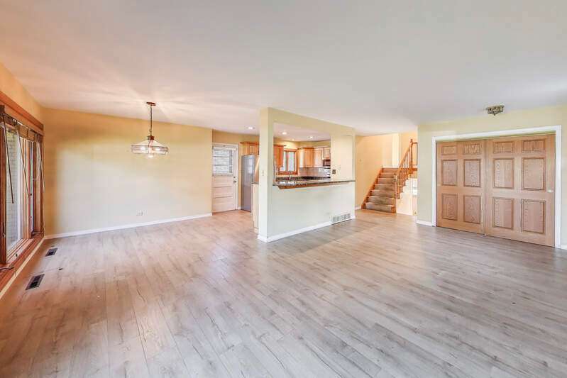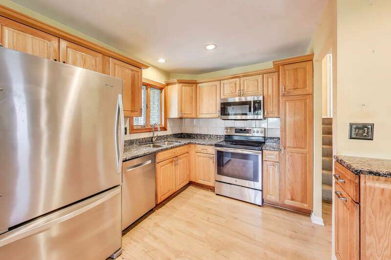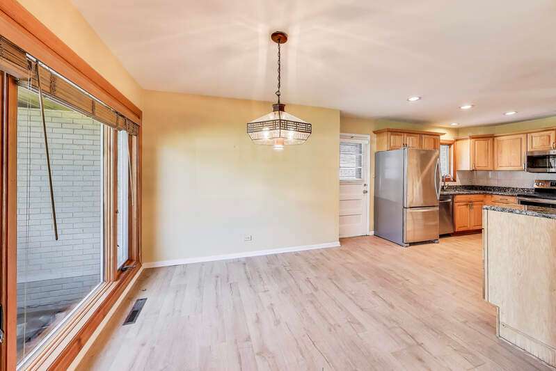 You'll love the open and bright feel of this split-level home steps to Maine West High School and Lake Opeka. The main living area offers an open-concept layout with large windows that fill the space with natural light. The kitchen features stainless steel appliances and flows seamlessly into the dining and living spaces, making it ideal for both everyday living and entertaining. Upstairs, you'll find three comfortable bedrooms and a full bath conveniently located on the same level. The lower level includes a spacious family room with gas fireplace, along with a second full bath and plenty of space for a 4th bedroom. An additional unfinished subbasement provides plenty of storage and flexibility for your needs. Step outside to a lovely fenced-in backyard with a side patio that's perfect for outdoor entertaining. A two-car garage completes the property, adding both convenience and functionality. This home has been well maintained and is ready for your design ideas -giving you the opportunity to make it truly your own.