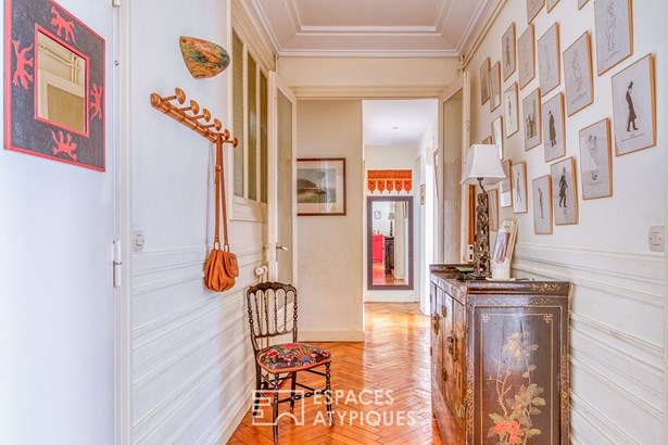 Nestled in the heart of a popular area of the city center on a pedestrian street, not overlooked, just a few steps from the train station, this charming apartment covers 110 sqm and is located in an authentic building of character dating from 1930. this property exceptional is experienced like a house and constitutes a perfect balance between calm and proximity to all amenities. From the front door, the vocabulary of 19th century bourgeois housing can be admired. High ceilings, moldings, and solid parquet floors set the tone.