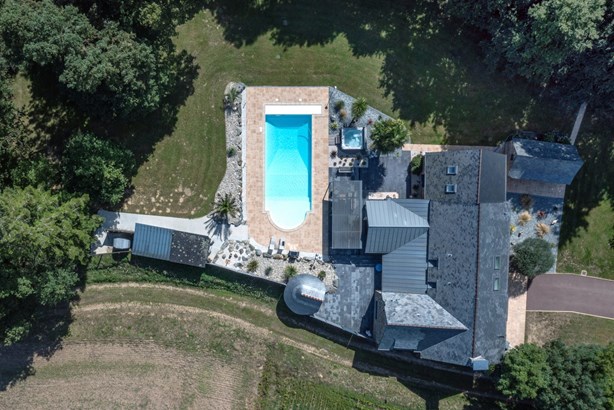 Outside, the enclosed and wooded garden, the terraces and the heated swimming pool with its particularly well-kept surroundings, offer a pleasant and intimate living environment, allowing you to fully enjoy the place without having to worry about prying eyes, a true haven of peace. Other ancillary and technical elements: Double motorized annex garage, professional heat pump, jacuzzi, home automation, laundry room, pool house, kennel. Private and public schools accessible five minutes away*, Janze TER station and Rennes-Angers 4-lane motorway 10 minutes away* (*By car).