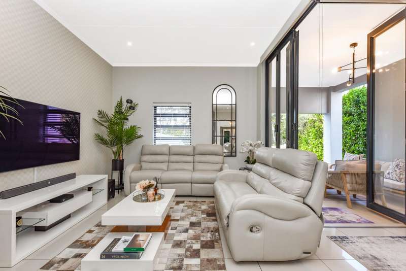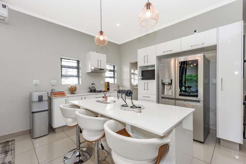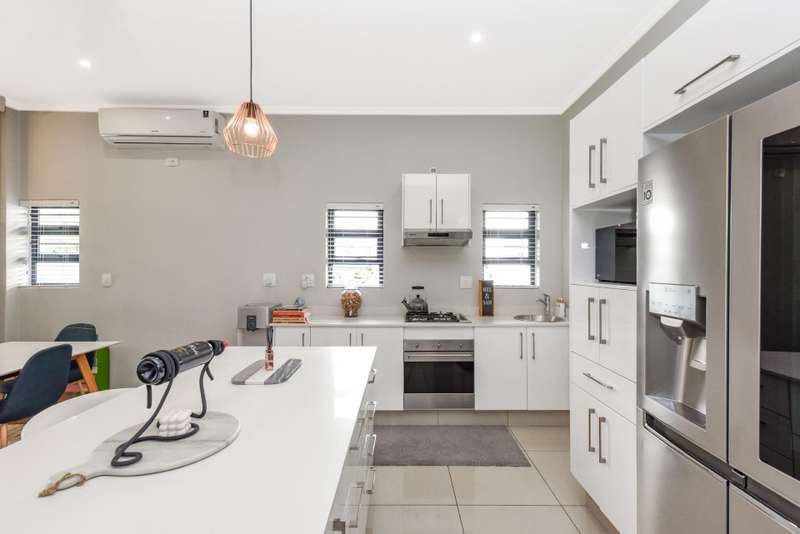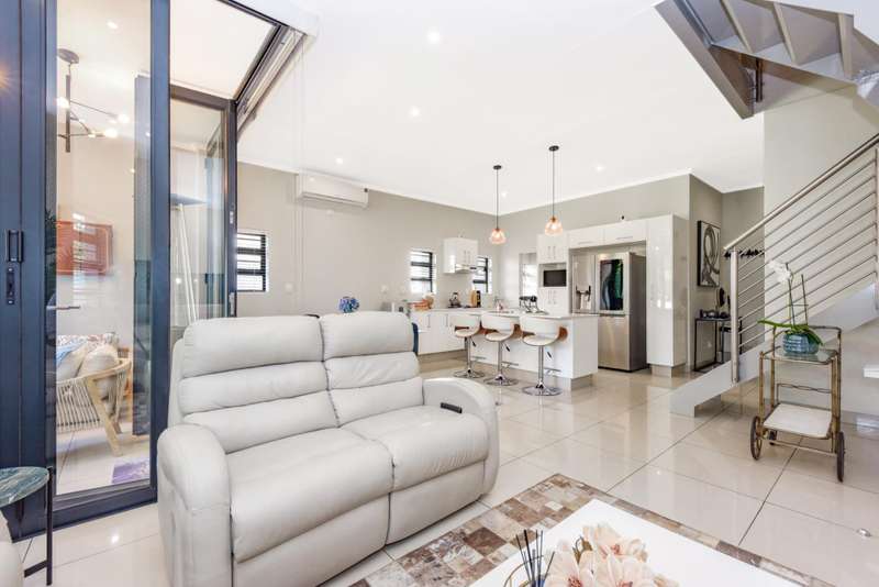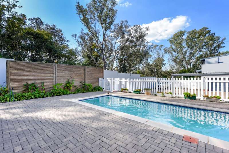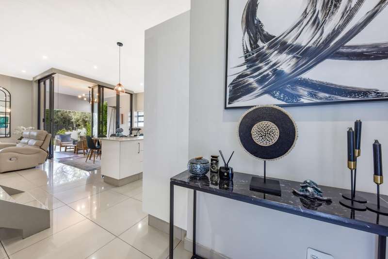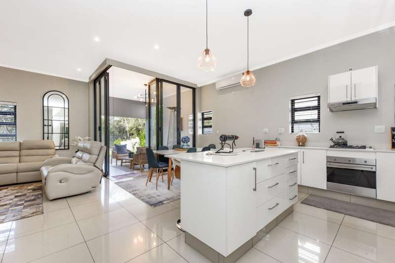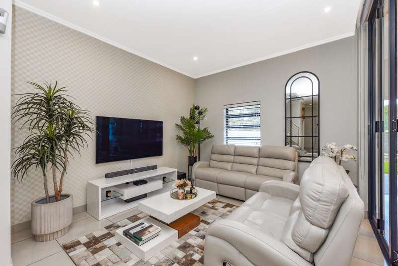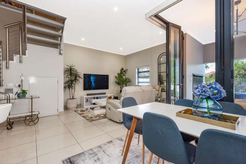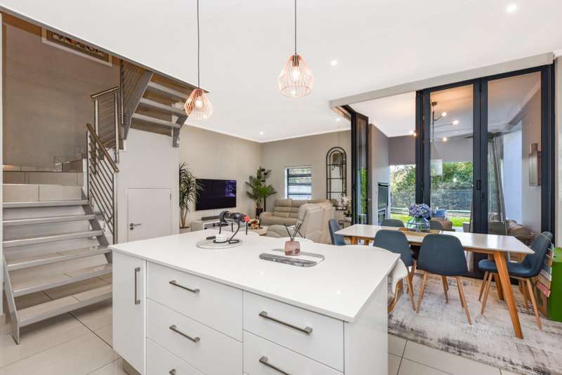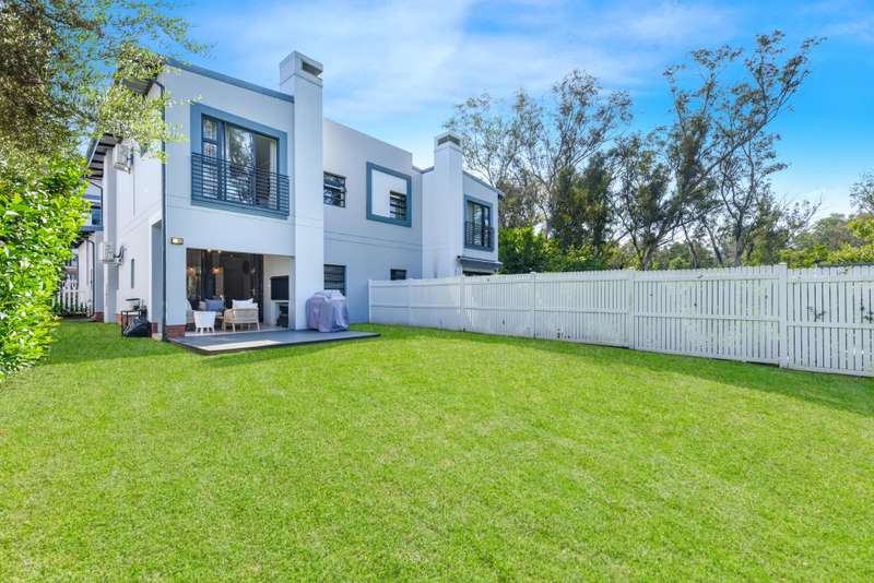 Luxury 3 Bedroom Townhouse with River Views in Bryanston East Enjoy serene riverfront living in this elegant 3 bedroom, 2.5 bathroom townhouse located in a quiet, secure and exclusive part of Bryanston East. Designed with top-end finishes and sophisticated style, the open-plan living and dining areas flow seamlessly to a covered patio with a built-in braai, perfect for entertaining while overlooking the expansive, pet-friendly garden and tranquil river views. The designer kitchen features stone countertops, a breakfast counter for four, gas hob, electric oven, large pantry, separate scullery, and space for three appliances, offering both beauty and practicality. Additional features include a 5kW inverter with battery backup, borehole-fed garden irrigation, a double garage, and access to a sparkling complex pool. Set in a secure estate with 24-hour guarded access and a small monthly contribution toward maintaining the riverfront, this home offers luxury, lifestyle, and location in perfect harmony. Viewings by appointment only. Secure your private tour of this exclusive riverfront residence today before it?ÇÖs gone.